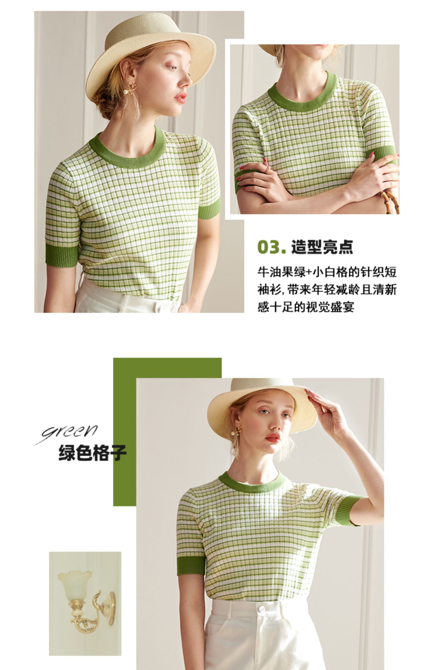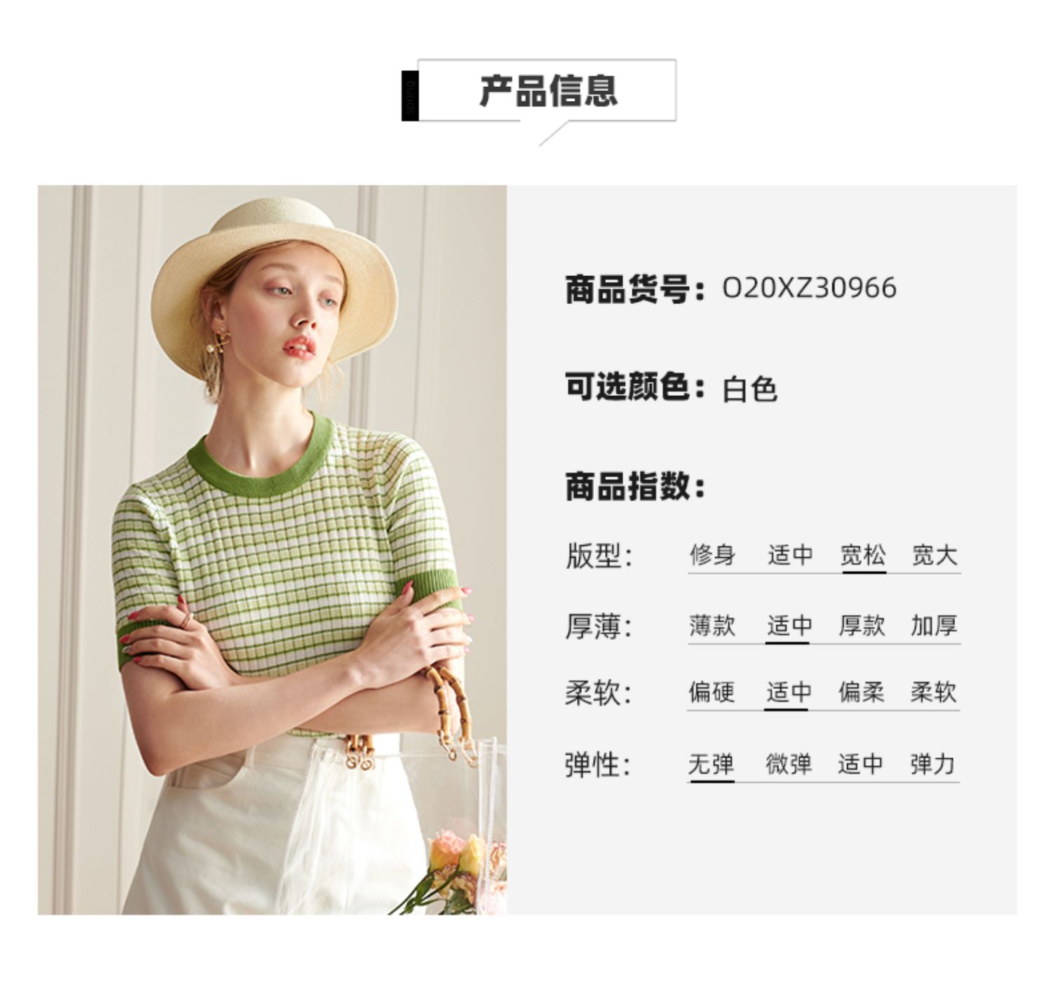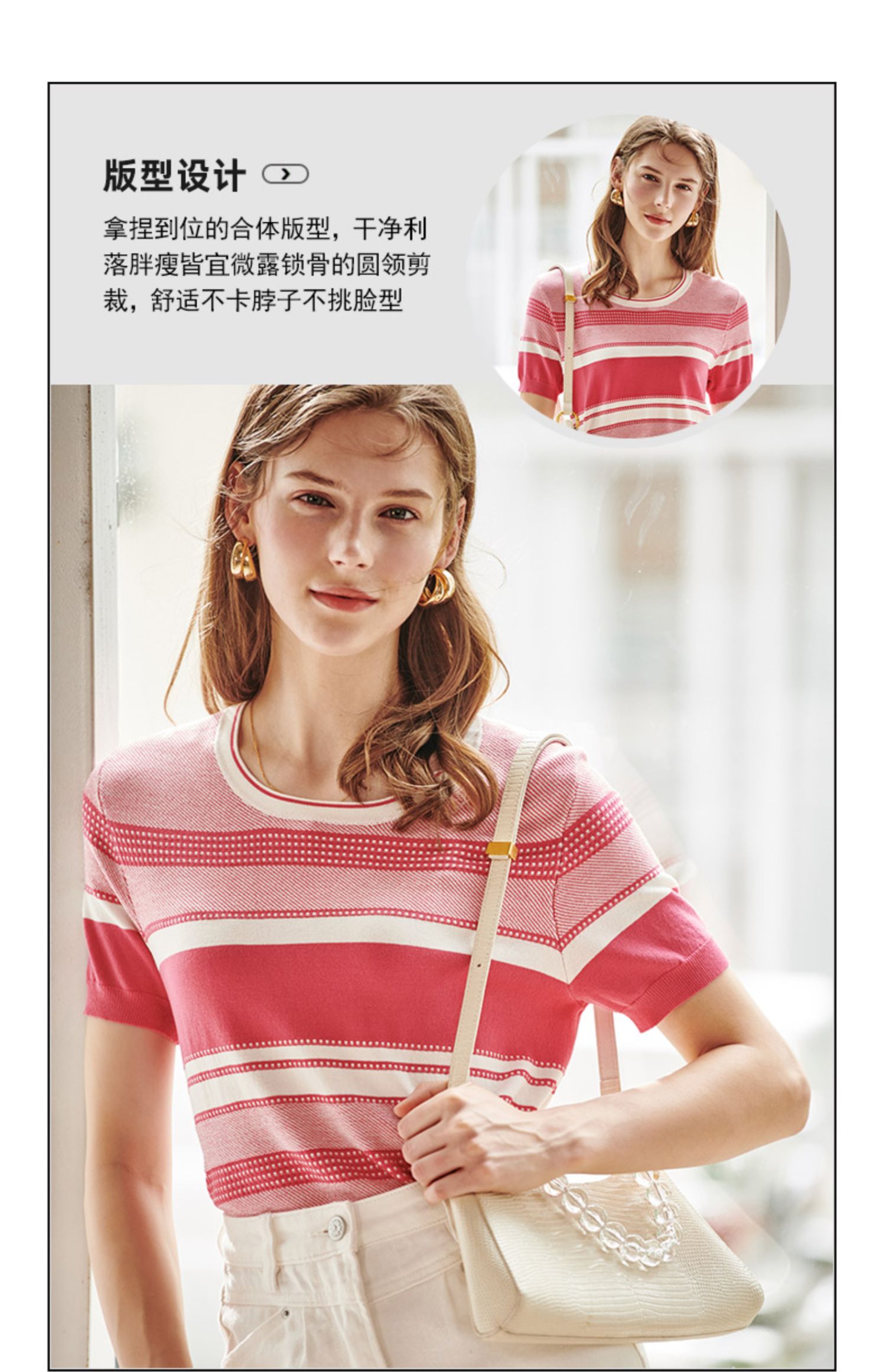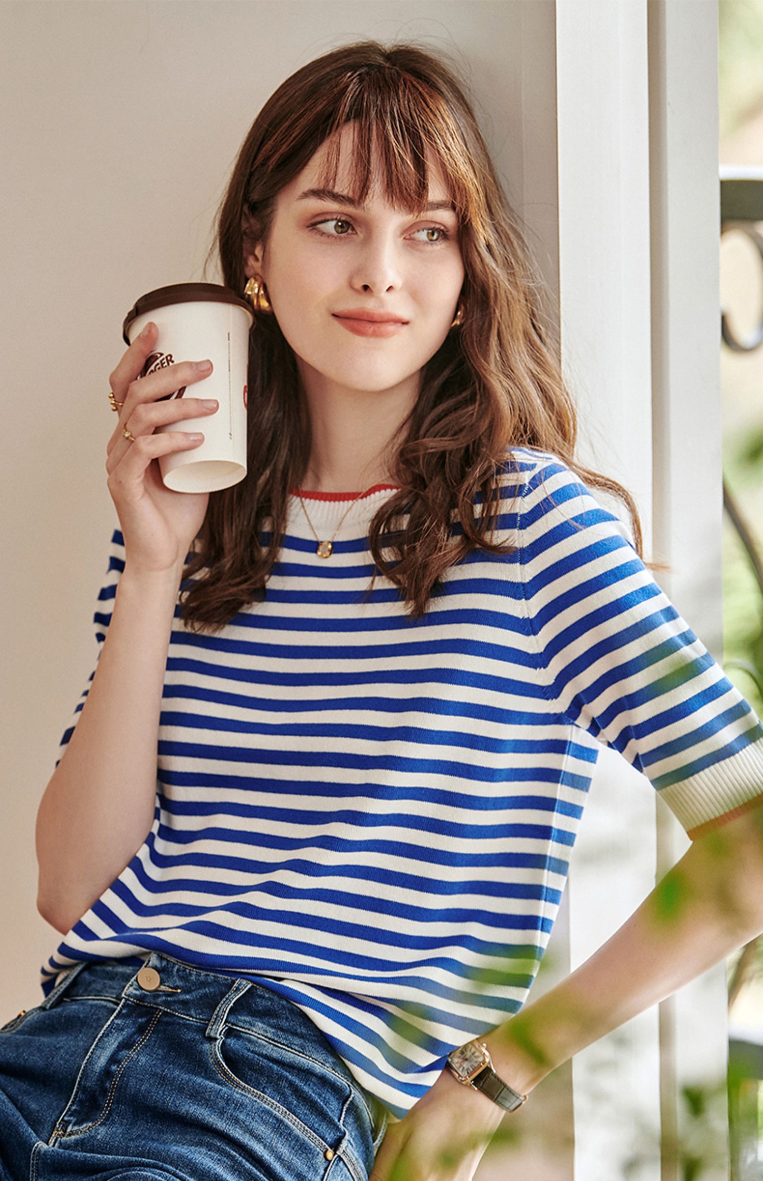 欧芮儿短袖针织t恤女冰丝薄款条纹夏季新款2025圆领休闲套头上衣