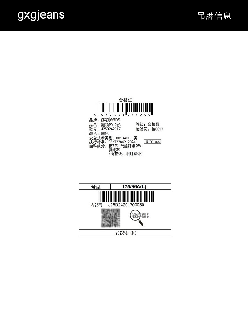 gxg.jeans男装 黑色肩部绣花商务翻领短袖polo衫男 25年夏热卖