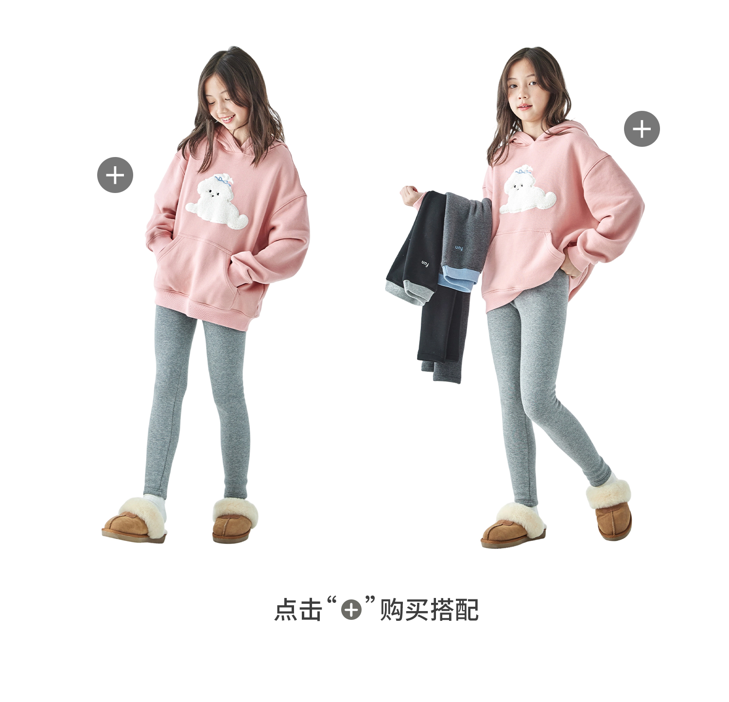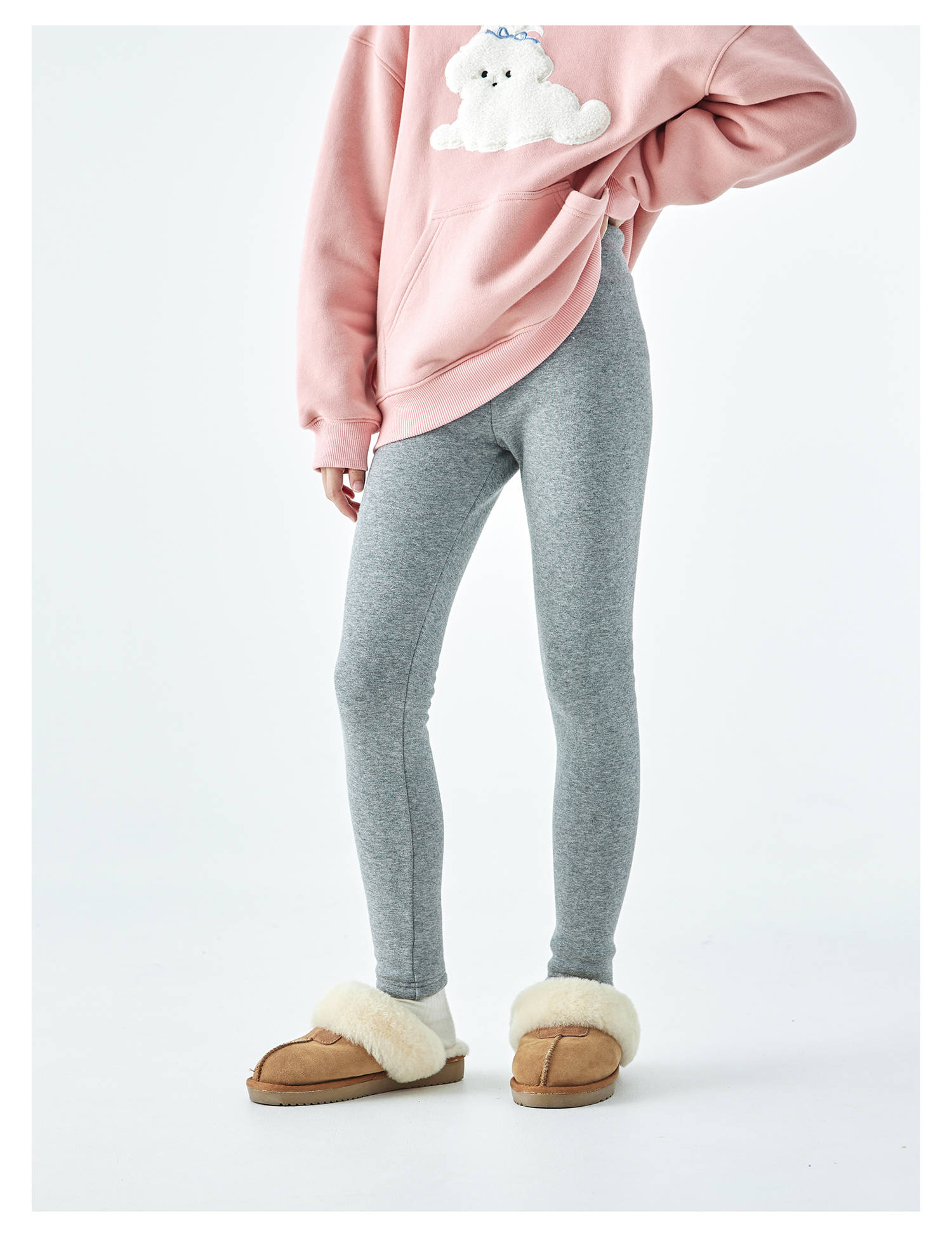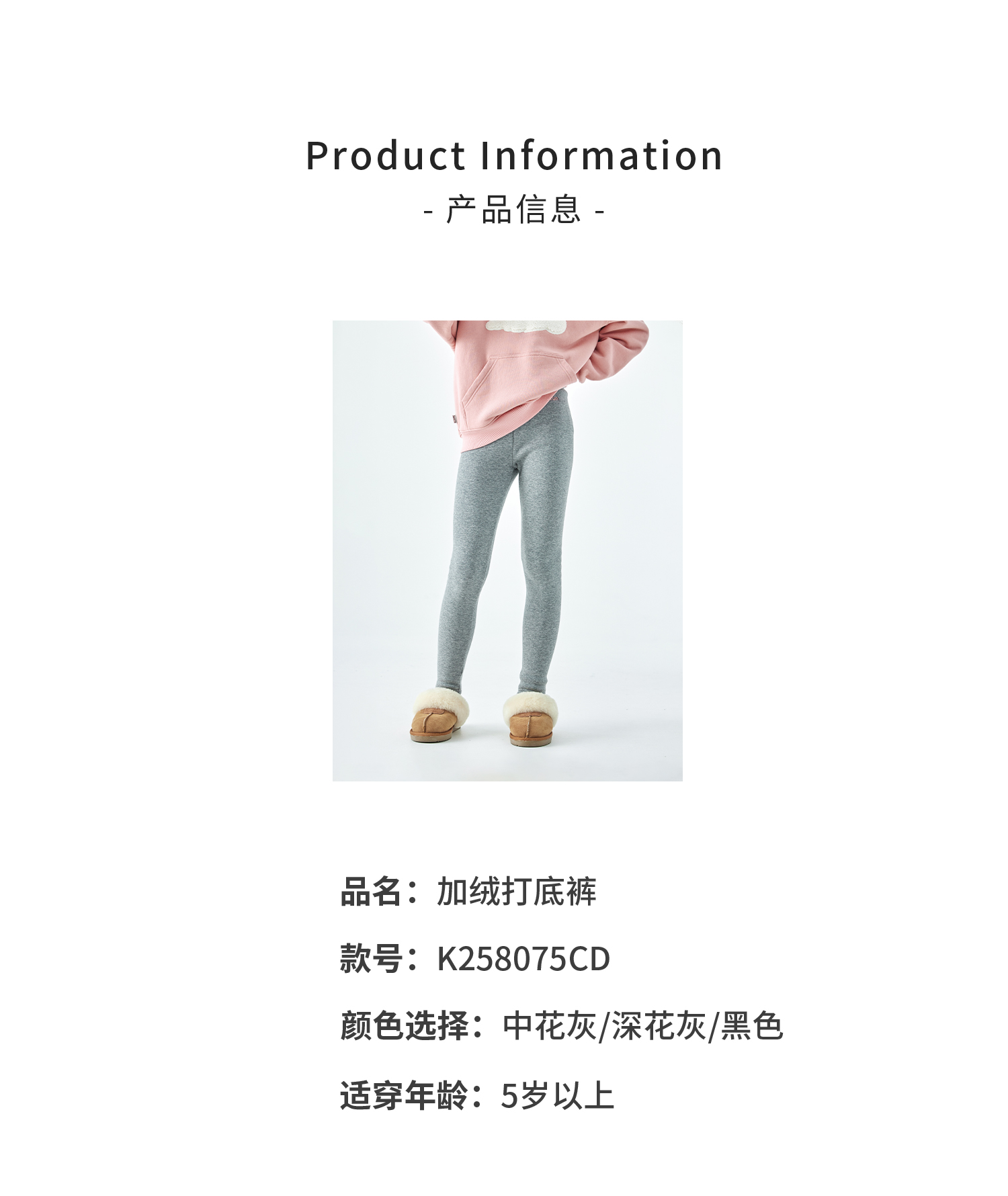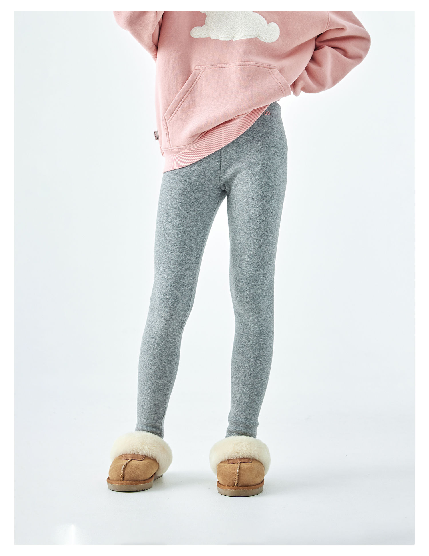 棵初2025年秋冬季新款亲子中大女童弹力加绒打底裤经典基础针织裤
