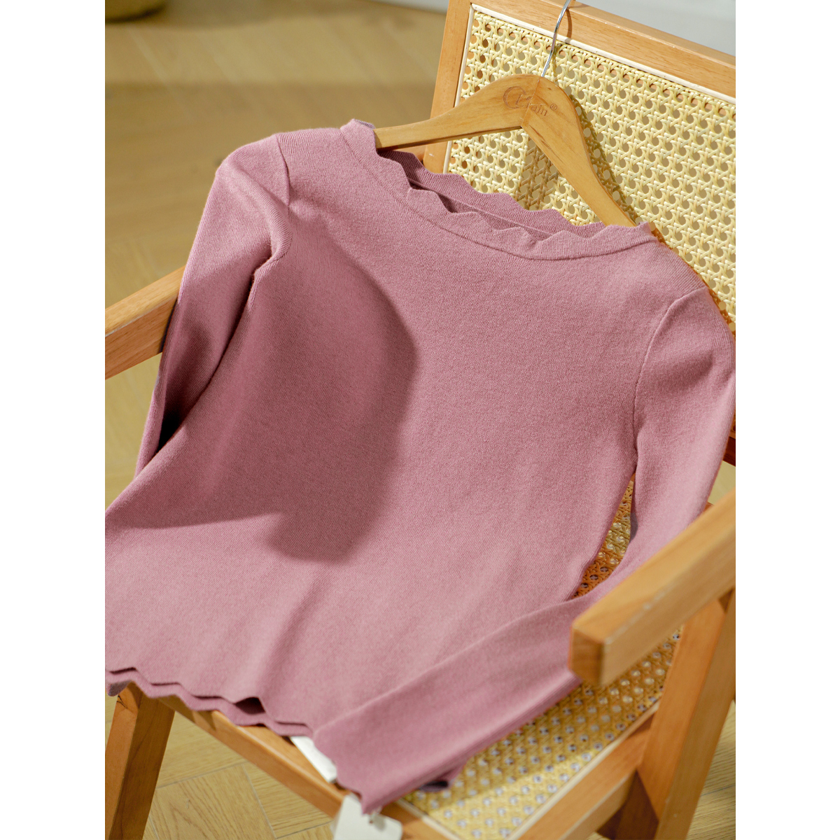 欧芮儿一字领针织衫女套头薄款修身百搭长袖打底衫春