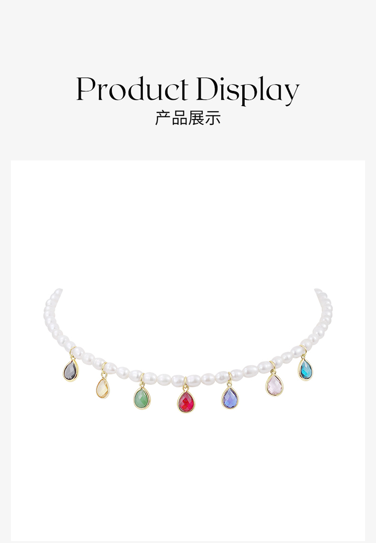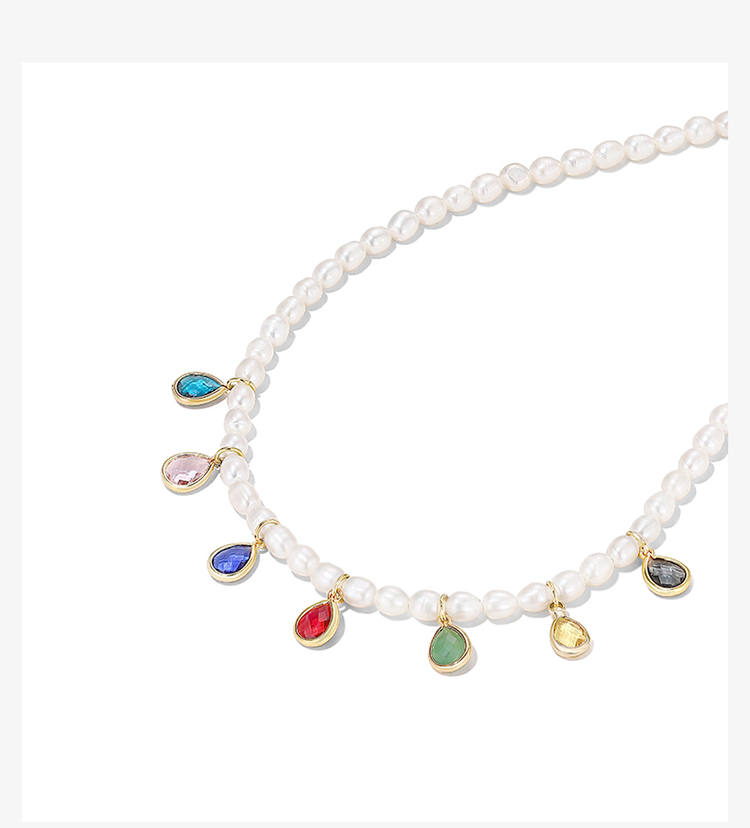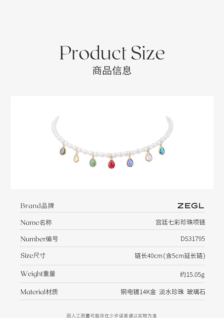 ZEGL淡水珍珠七彩项链女夏轻奢小众彩色巴洛克复古小米珠锁骨颈链