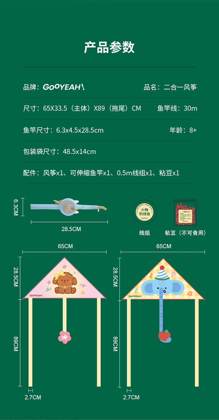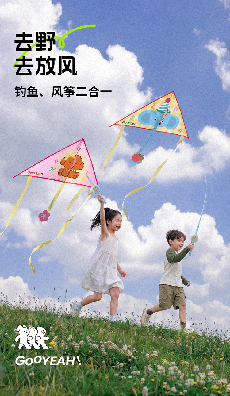 TOI图益风筝儿童微风易飞风筝2026新款儿童手持风筝钓鱼二合一【春日活力运动专场】