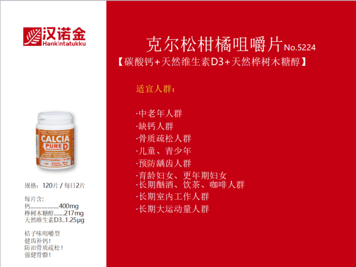 汉诺金·克尔松柑橘咀嚼片No.5224