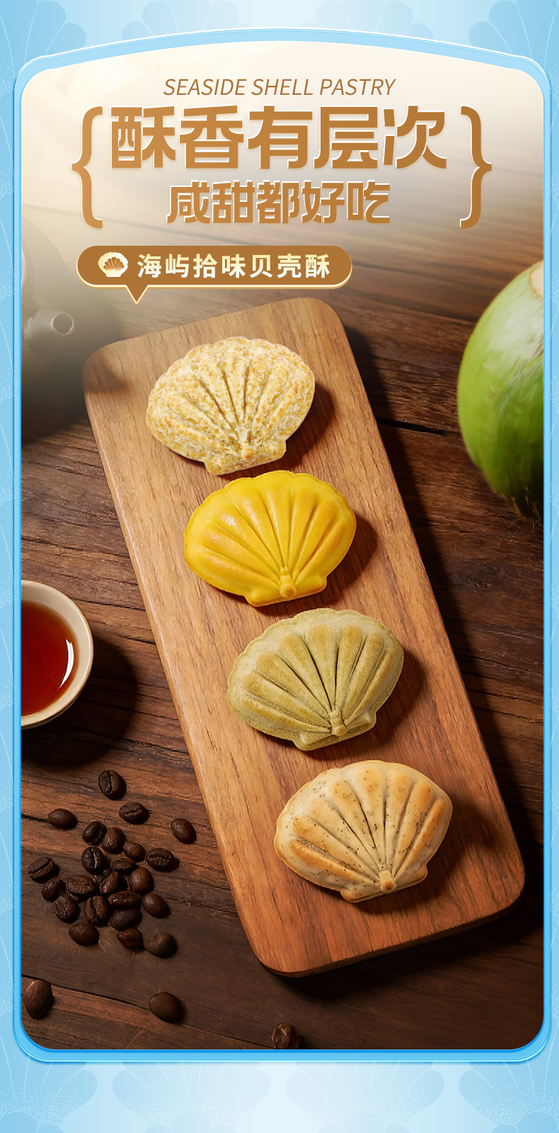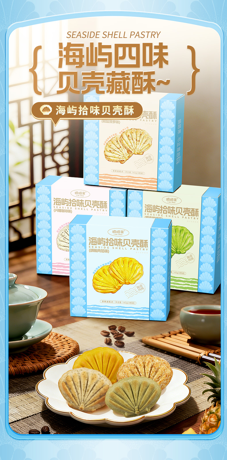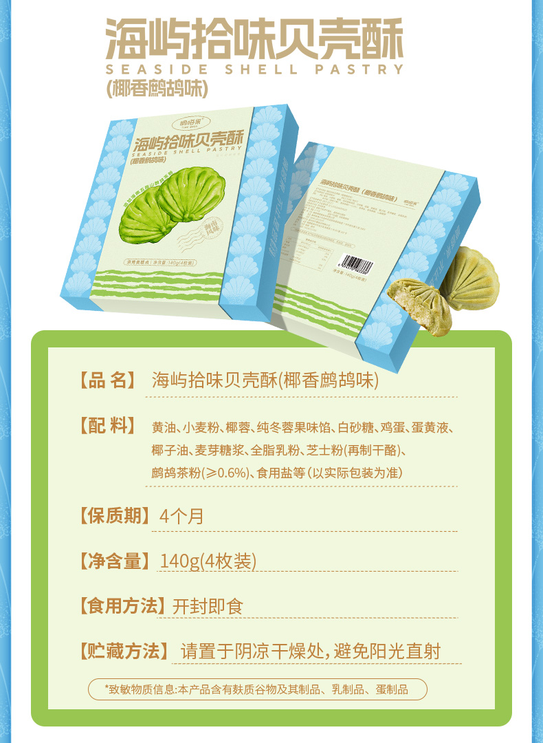 嘀嗒果海屿拾味贝壳酥鹧鸪椰香曲奇饼干零食礼盒下午茶酥零食140g