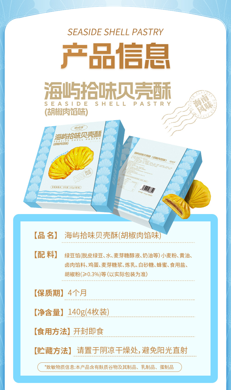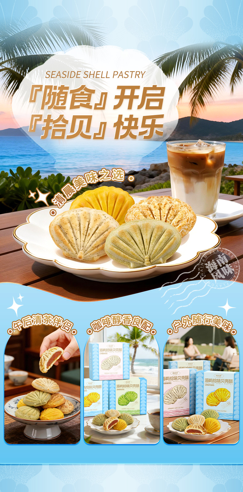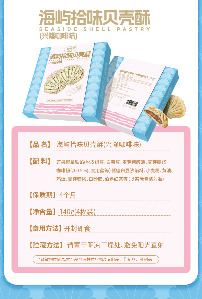 嘀嗒果海屿拾味贝壳酥鹧鸪椰香曲奇饼干零食礼盒下午茶酥零食140g
