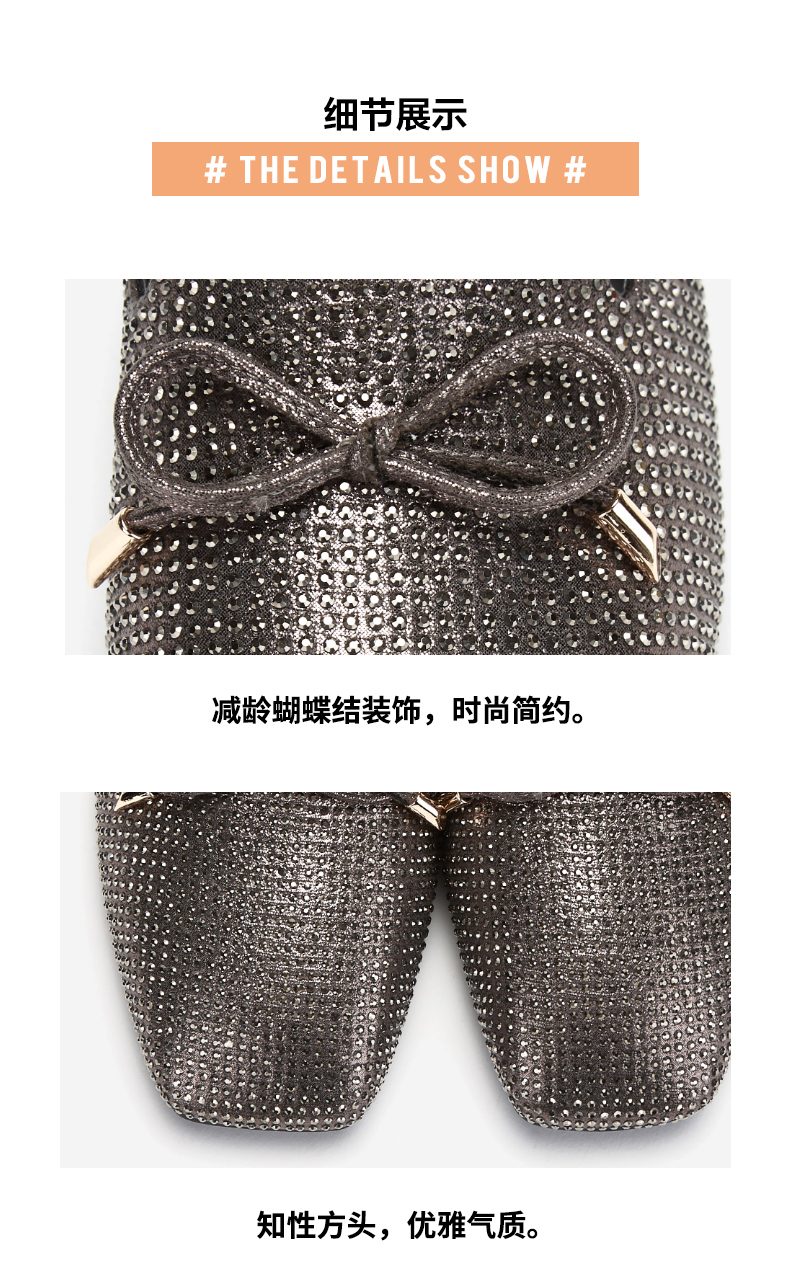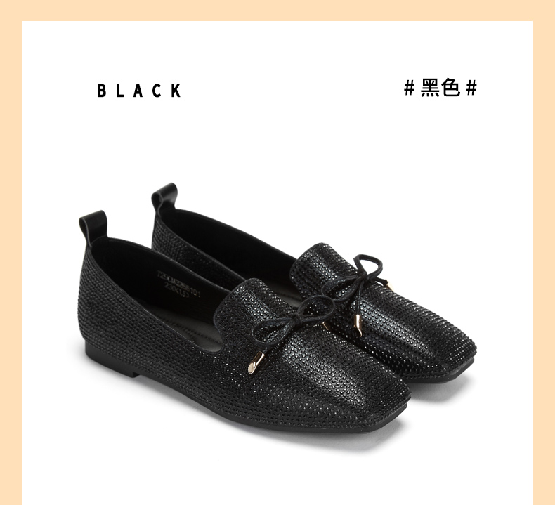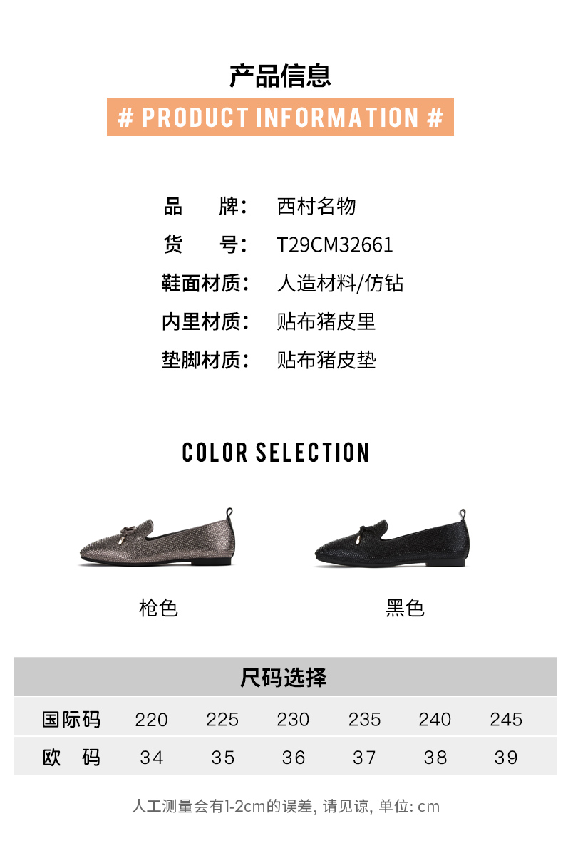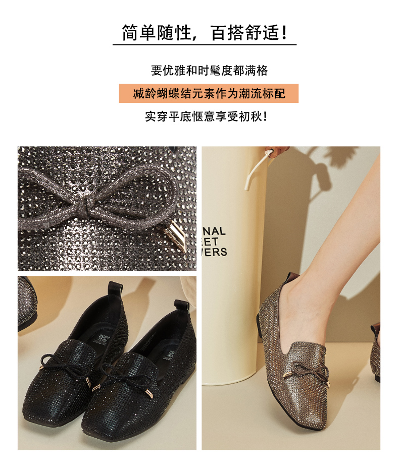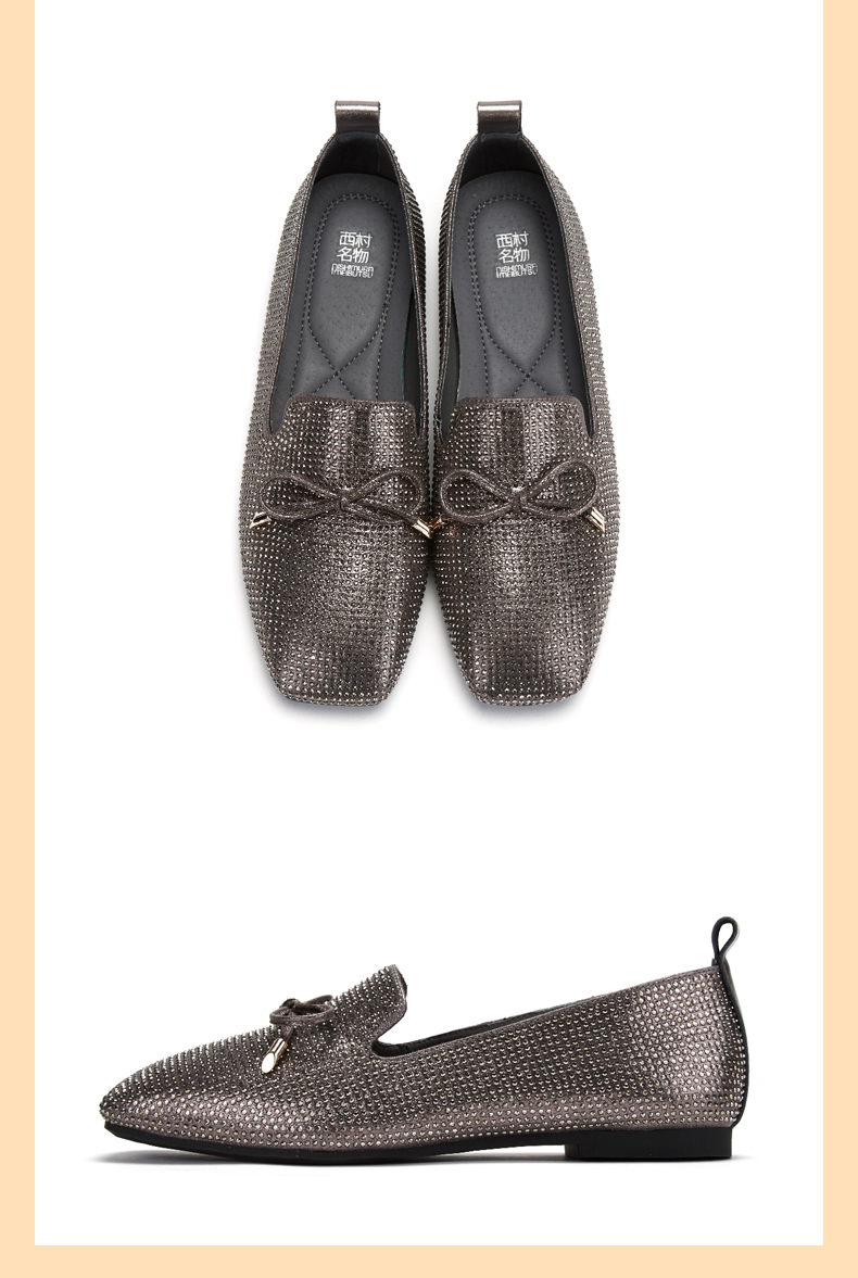 西村名物休闲低跟乐福鞋女一脚蹬秋季新款时尚水钻蝴蝶结T29CM32661