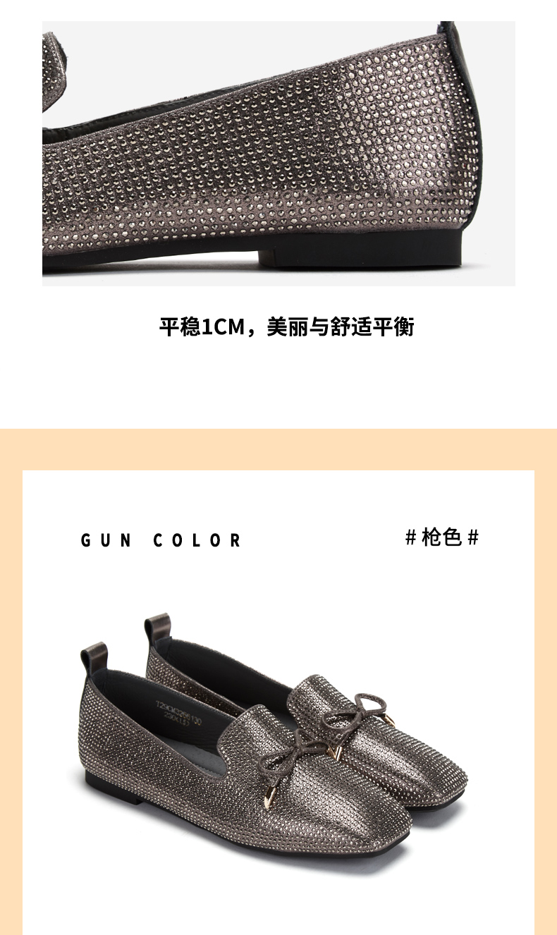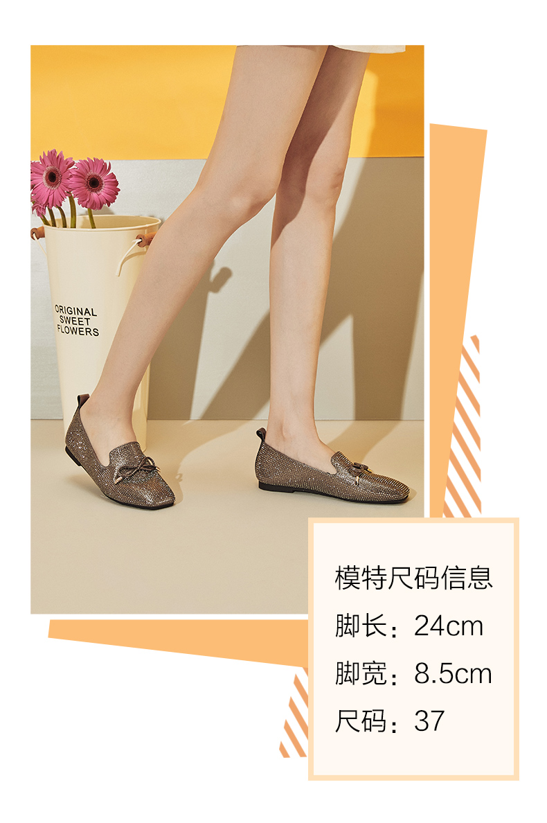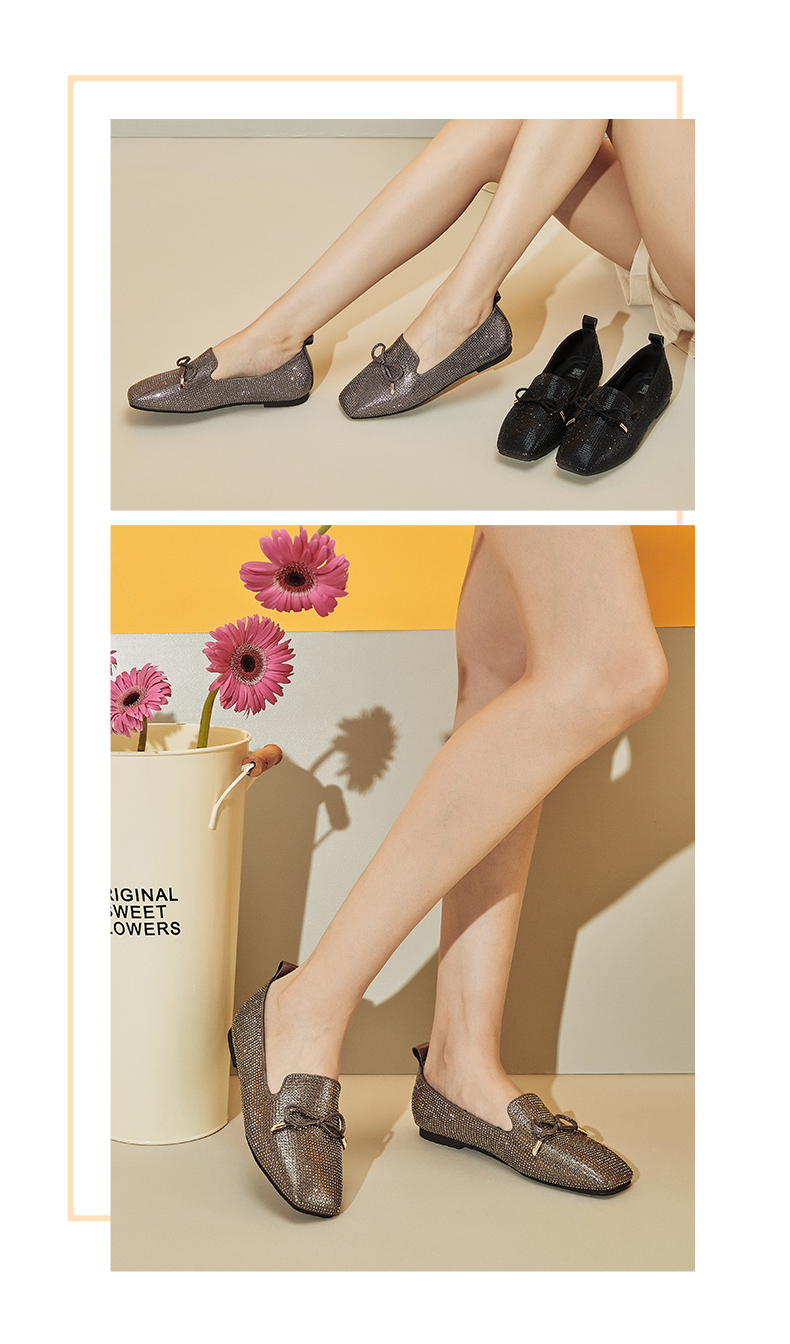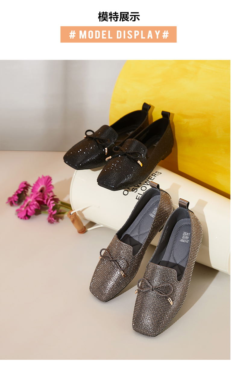 西村名物休闲低跟乐福鞋女一脚蹬秋季新款时尚水钻蝴蝶结T29CM32661