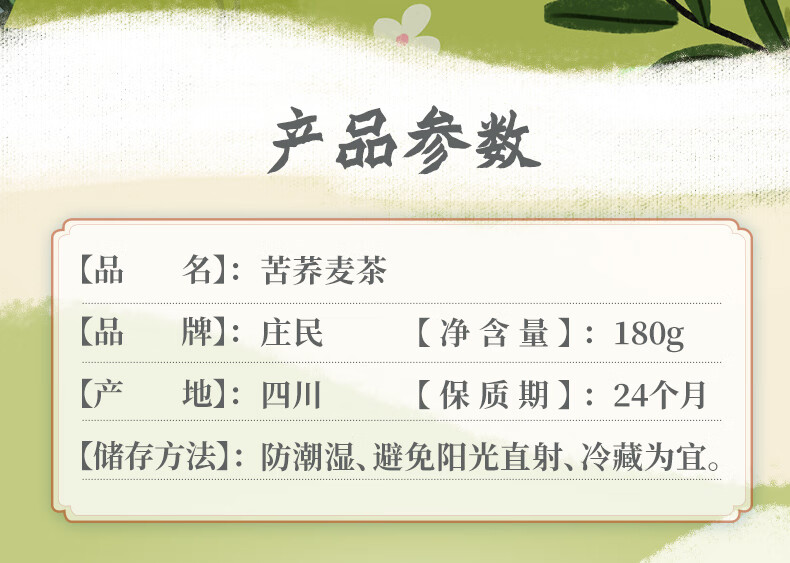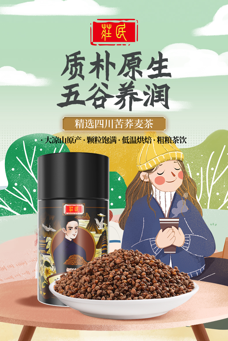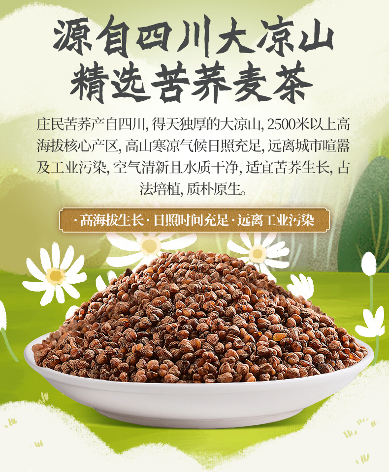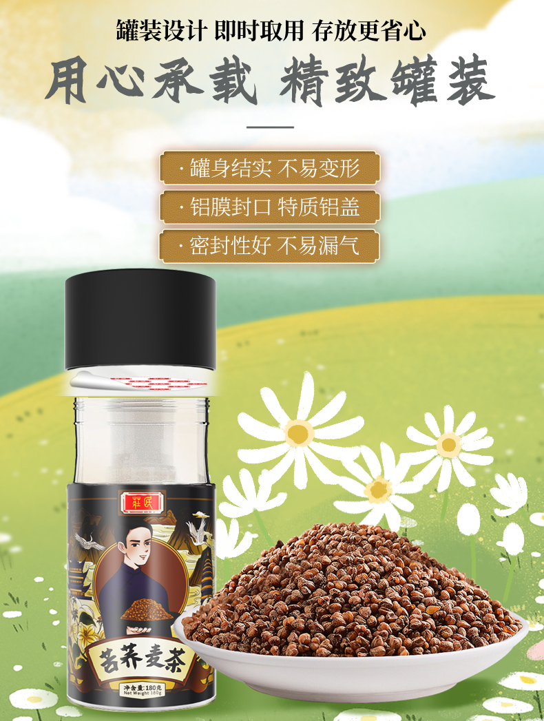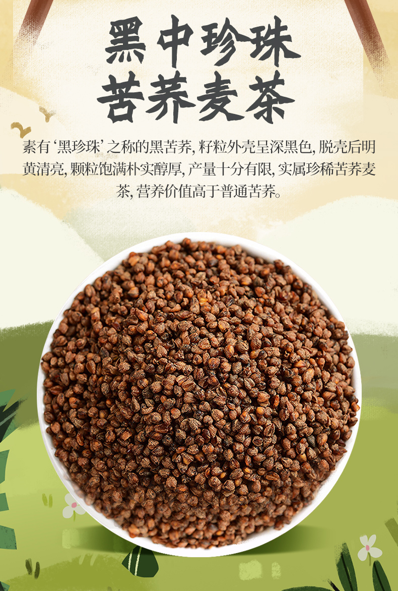庄民 黑苦荞茶 全胚芽大颗粒 精选花草茶叶泡水180g/罐