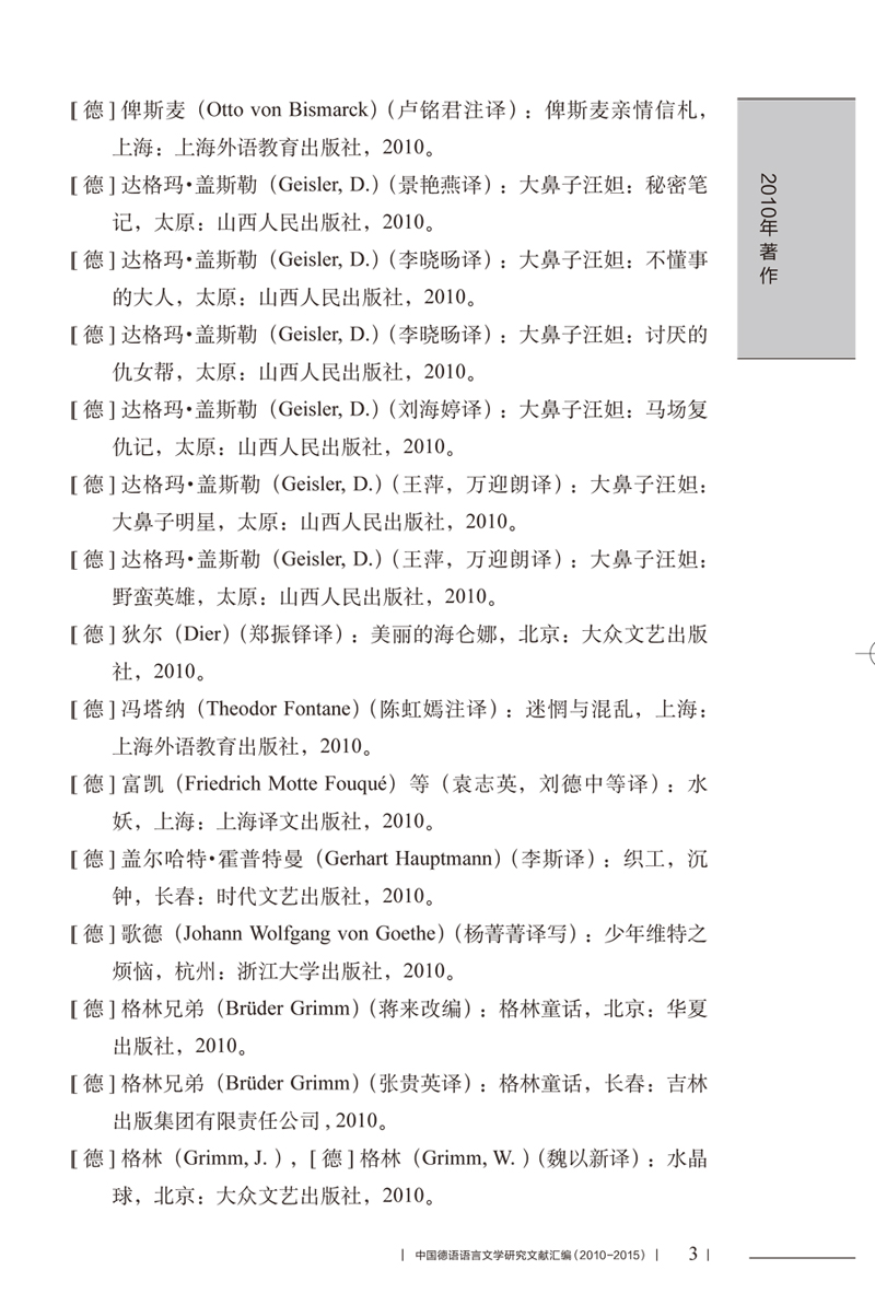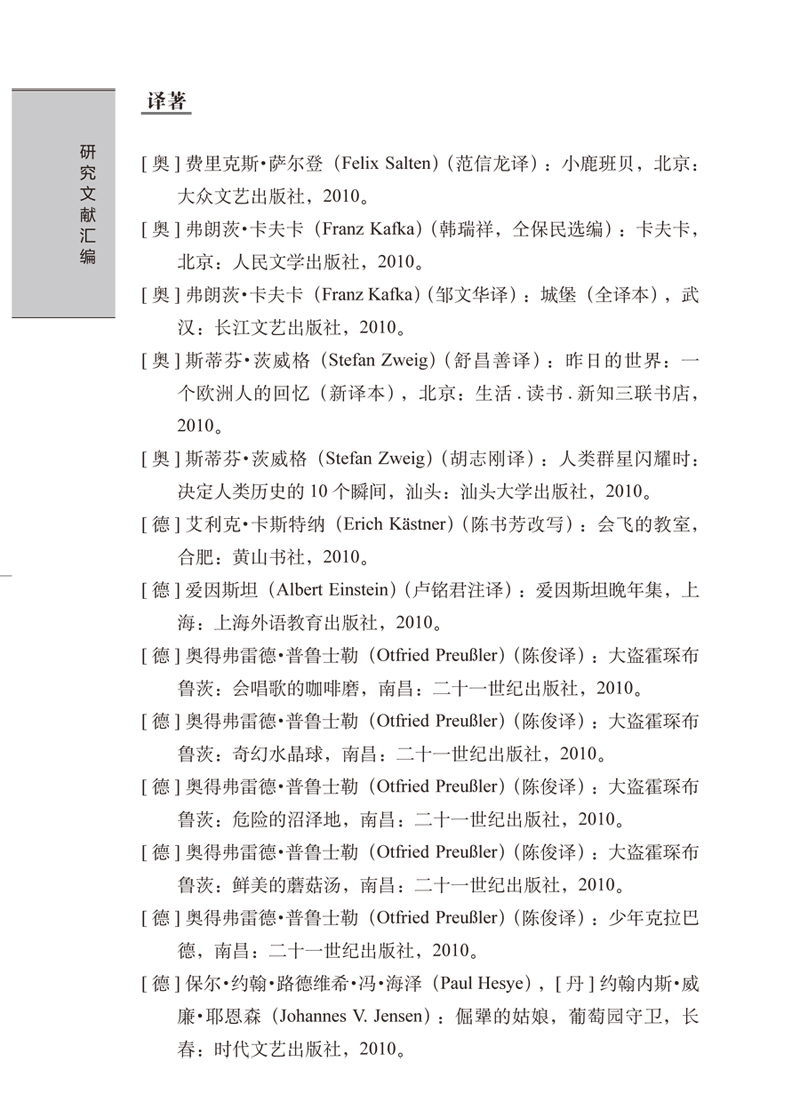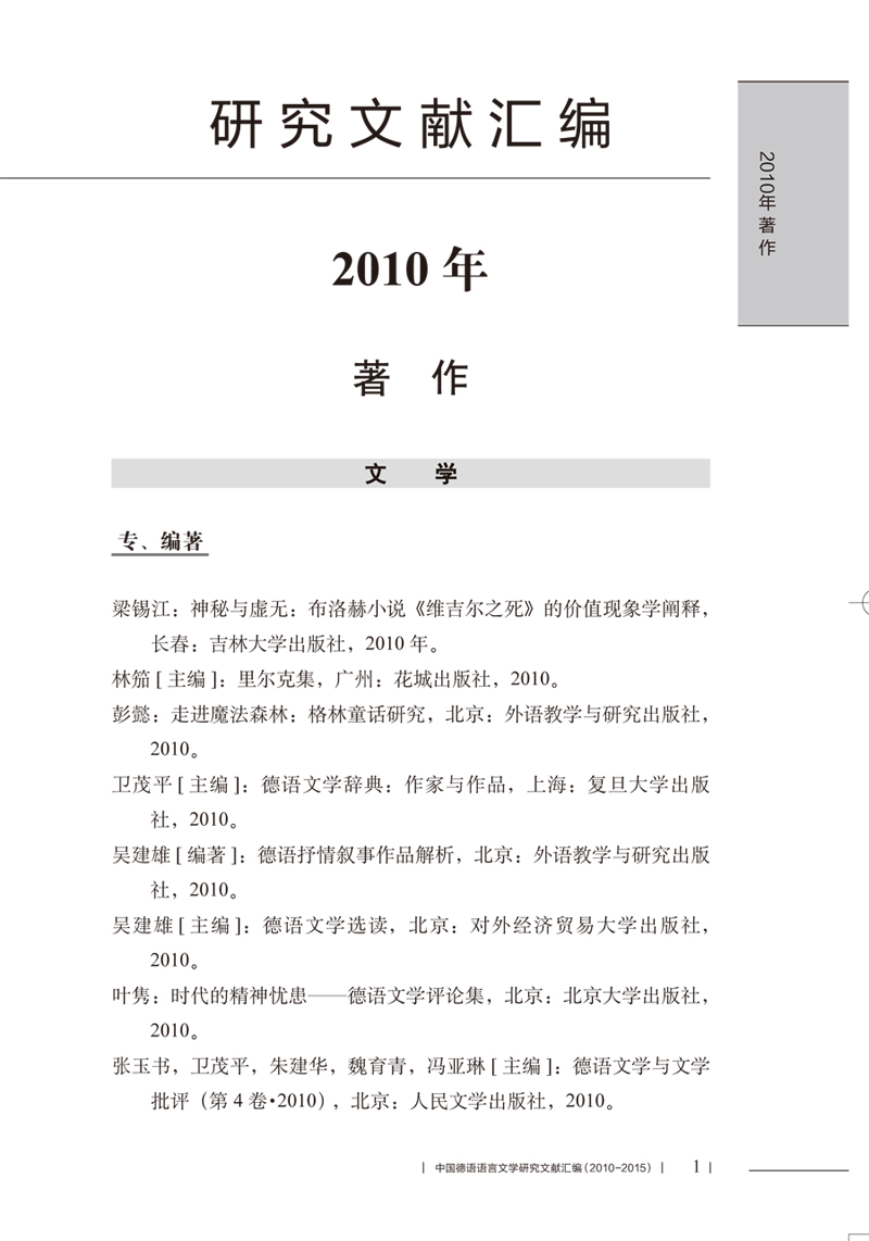 《中国德语语言文学研究文献汇编(2010-2015)囊括了2010年至2015年期间国内德语语言文学这一学科各个方向的研究成果,例如文学、教材教参、工具书、德国经济、文化艺术及历史方面的研究等,并分为著作和论文两大类别。另外,此书还收录了权威核心期刊上涉及文学、语言学、翻译及教学法研究方向的论文摘要。