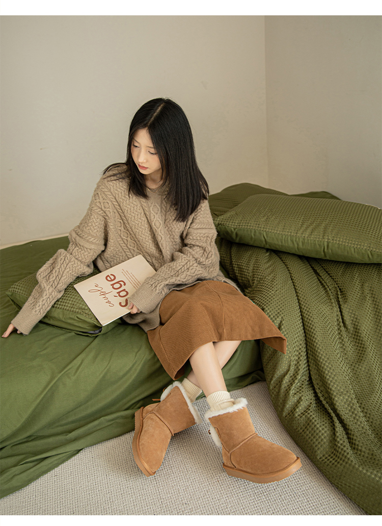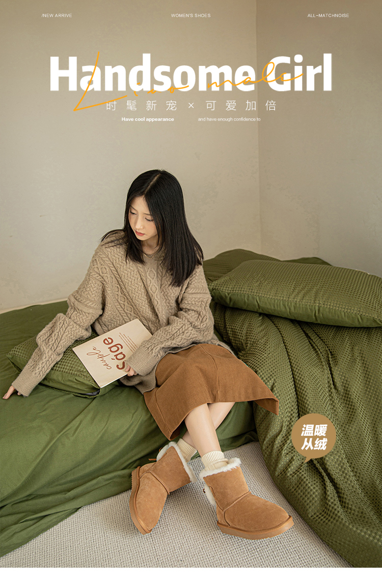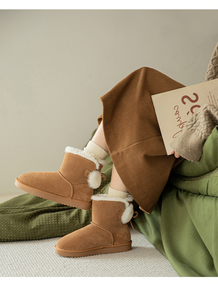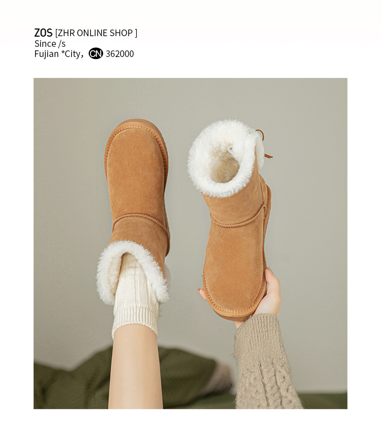 ZHR可爱蝴蝶结系带雪地靴女靴2023冬季新款长绒保暖舒适女靴