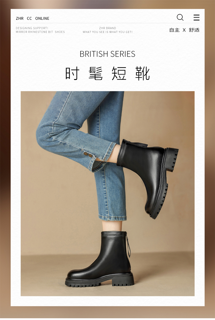 ZHR马丁靴女2023秋冬新款英伦风时髦短靴圆头厚底女短靴休闲百搭