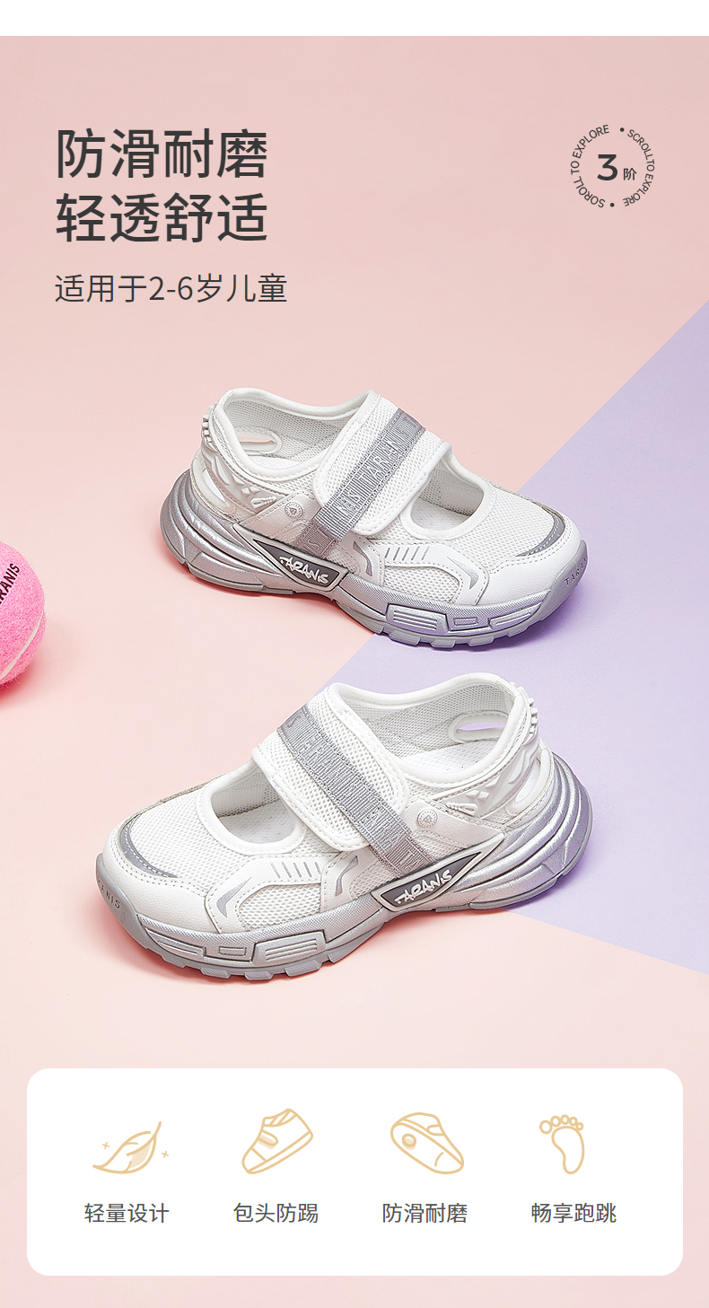 泰兰尼斯儿童运动凉鞋夏季新款时尚老爹鞋儿童轻量舒适休闲运动鞋 T01X5A6061