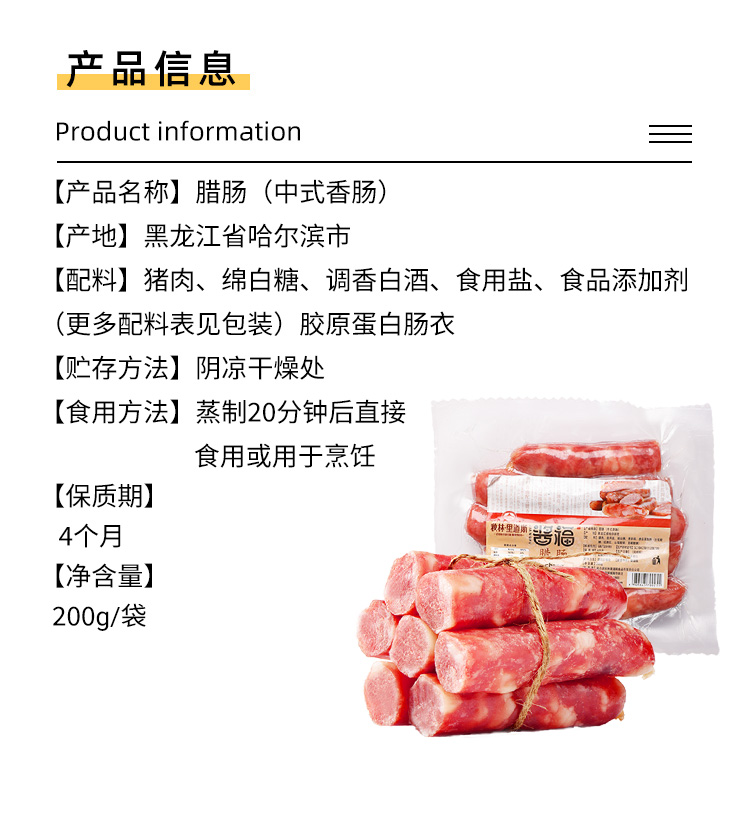 秋林里道斯食品 哈尔滨红肠110g/支*10 中华老字号