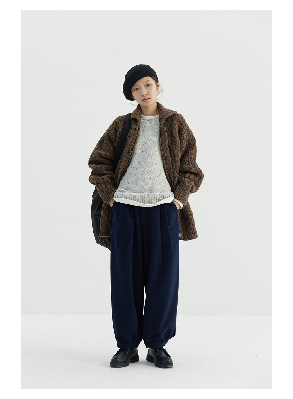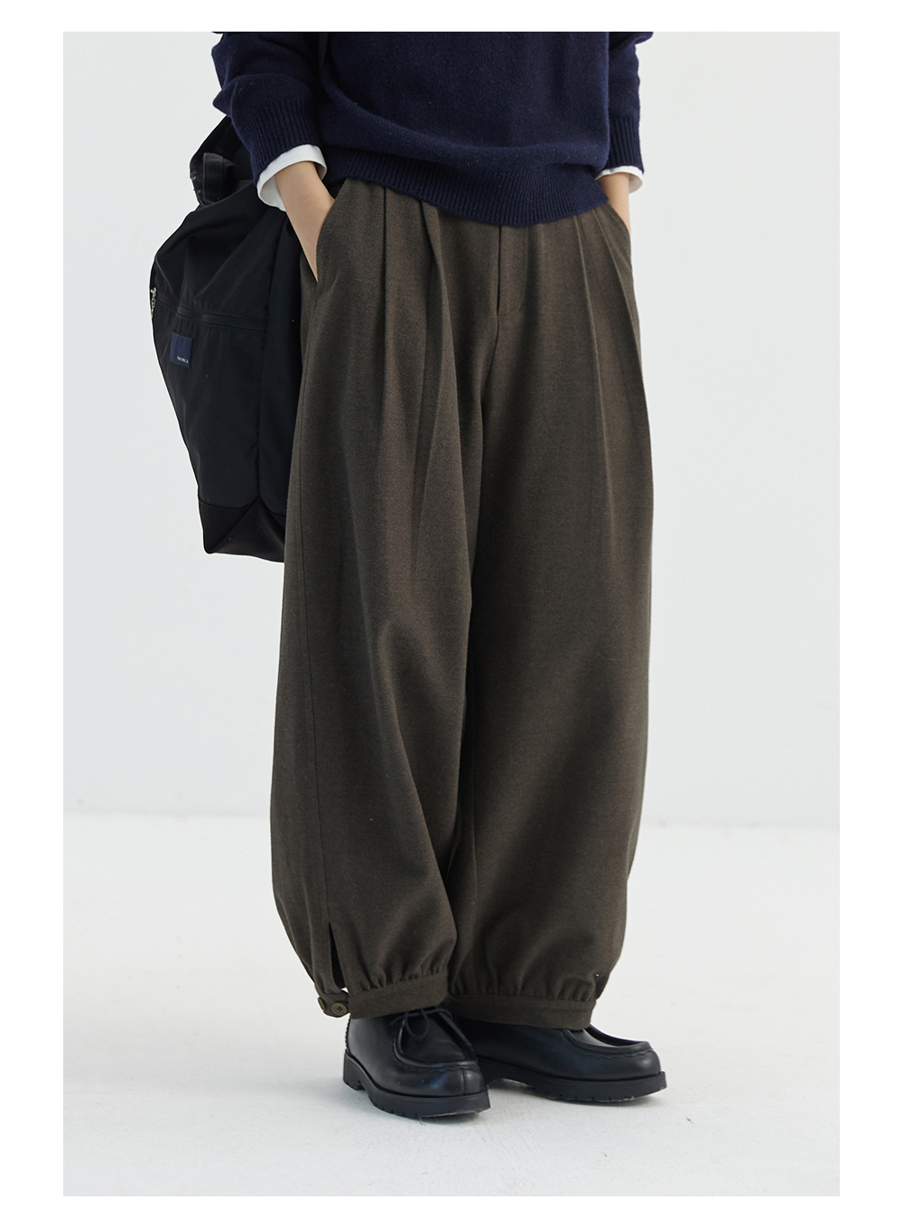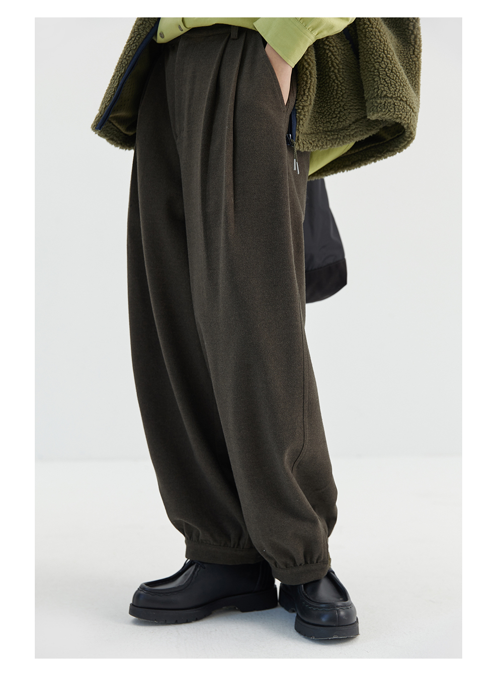 步履不停/2D43030C/打褶收口毛呢灯笼裤