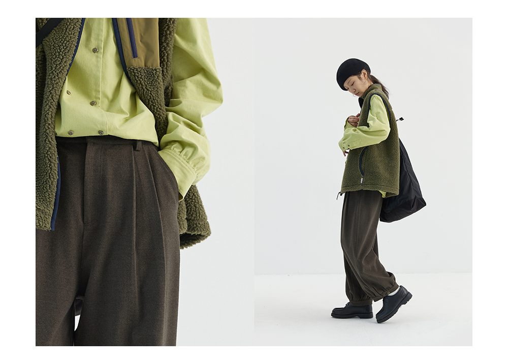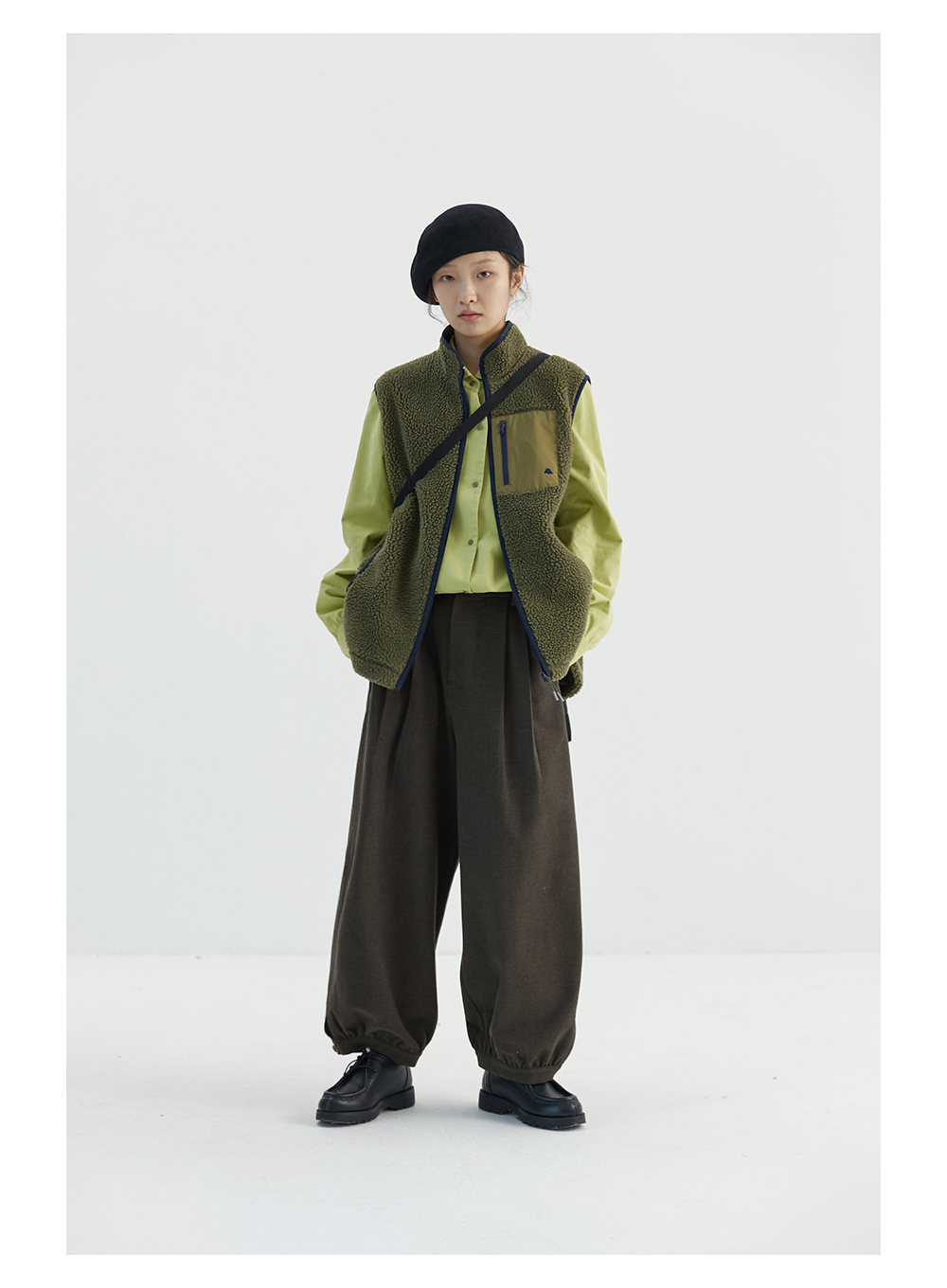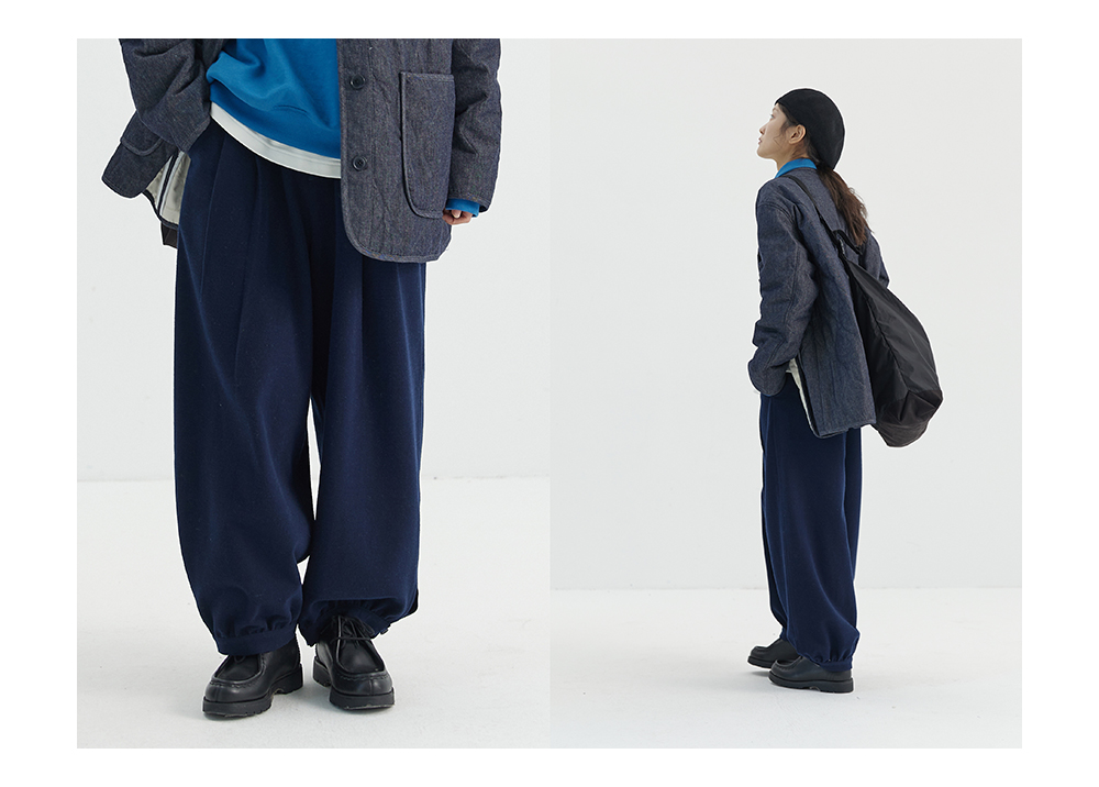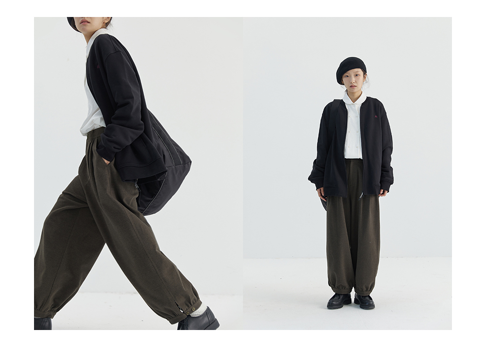 步履不停/2D43030C/打褶收口毛呢灯笼裤