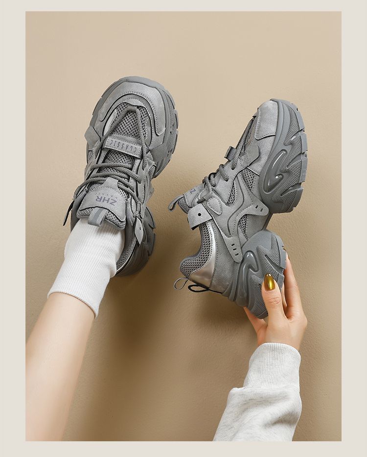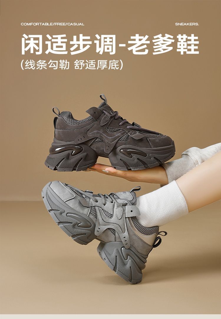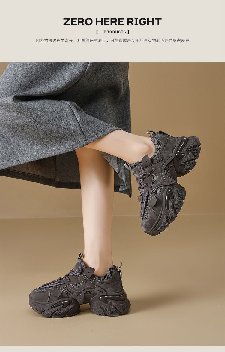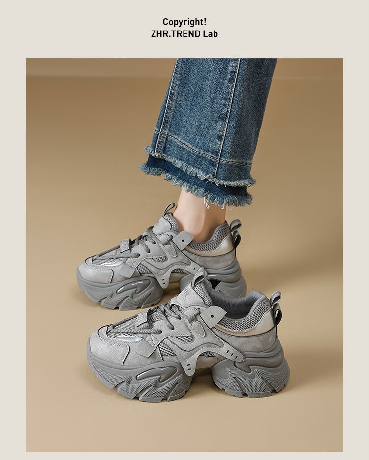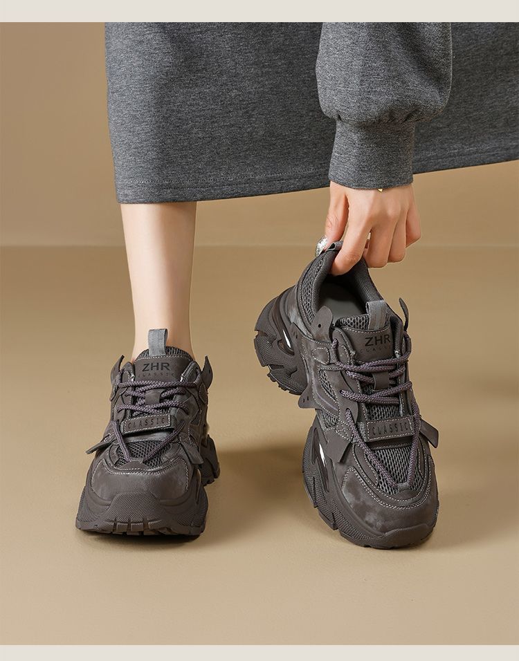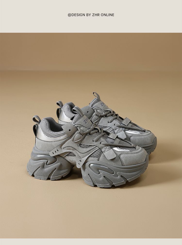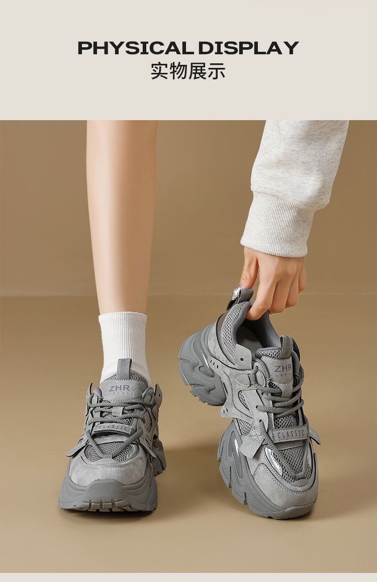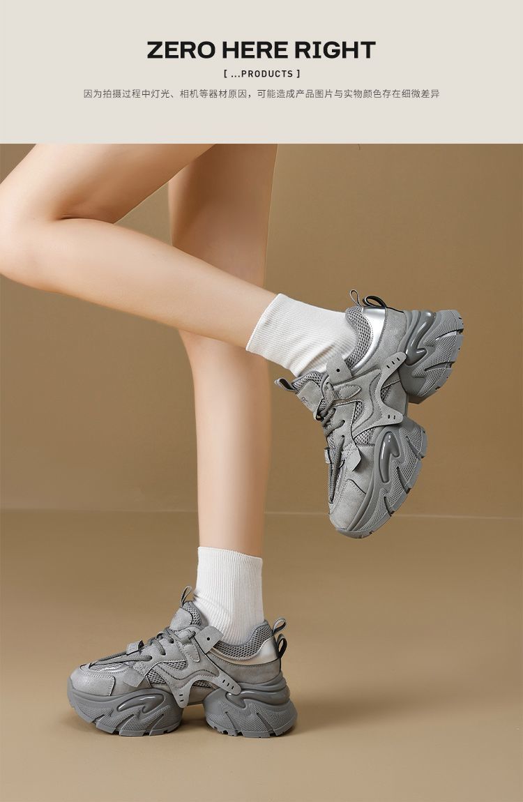 ZHR则则厚底老爹鞋女2025秋冬新款灰色增高运动鞋透气网面休闲鞋