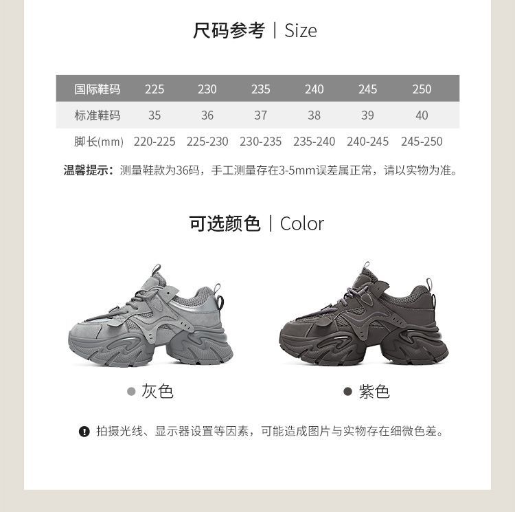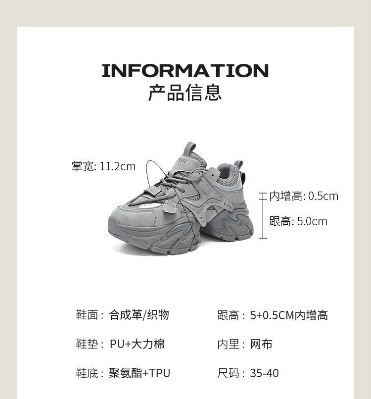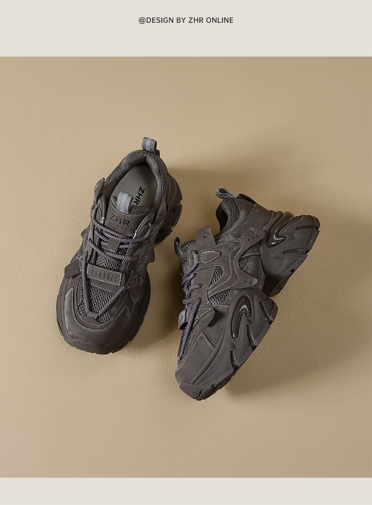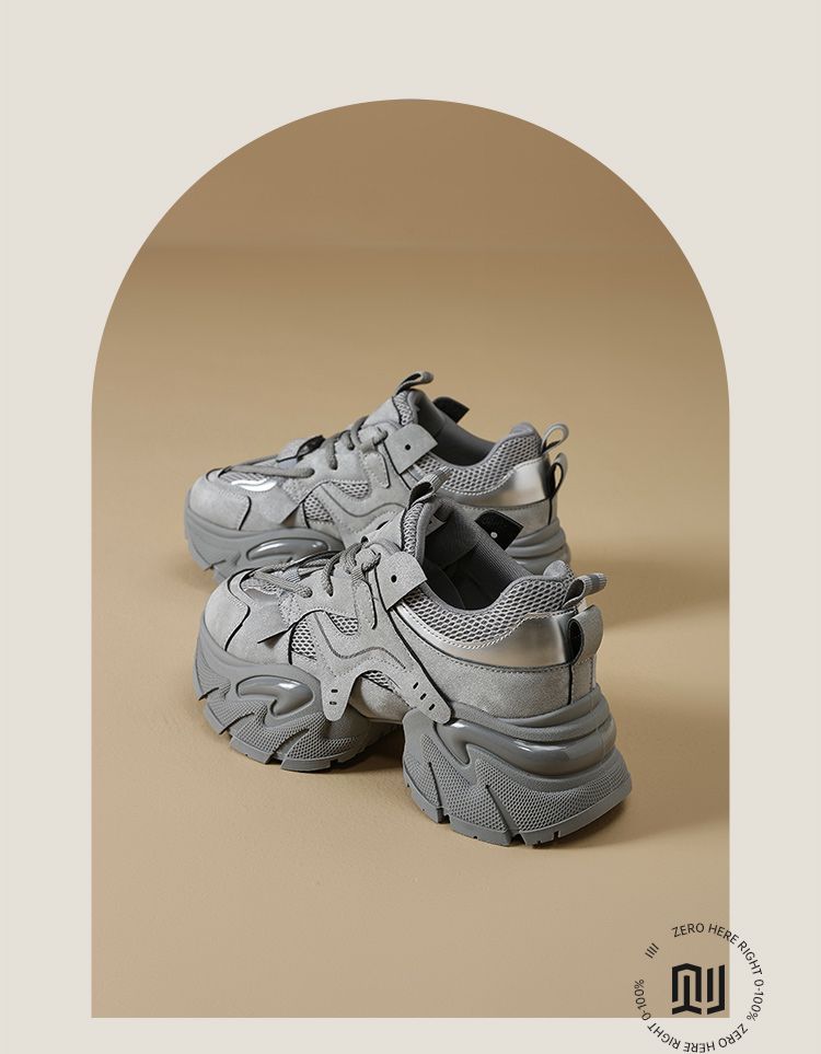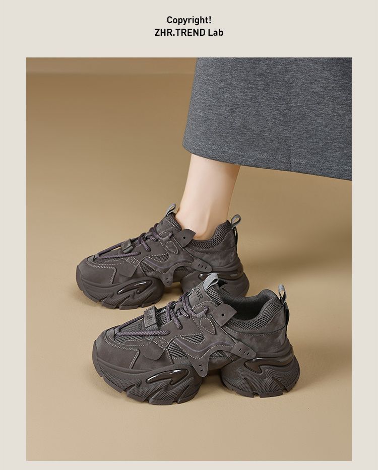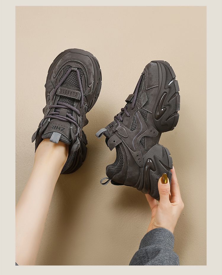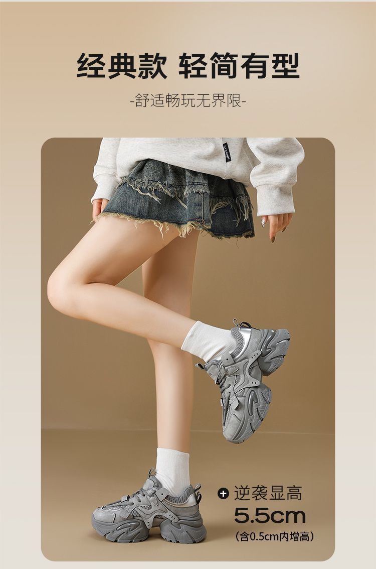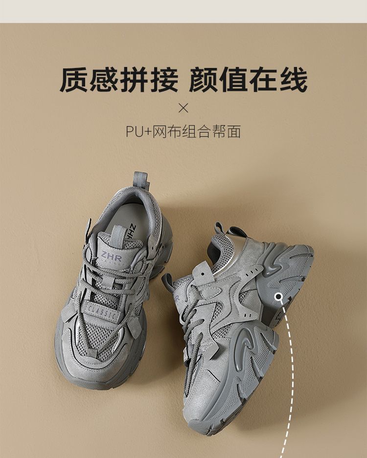 ZHR则则厚底老爹鞋女2025秋冬新款灰色增高运动鞋透气网面休闲鞋