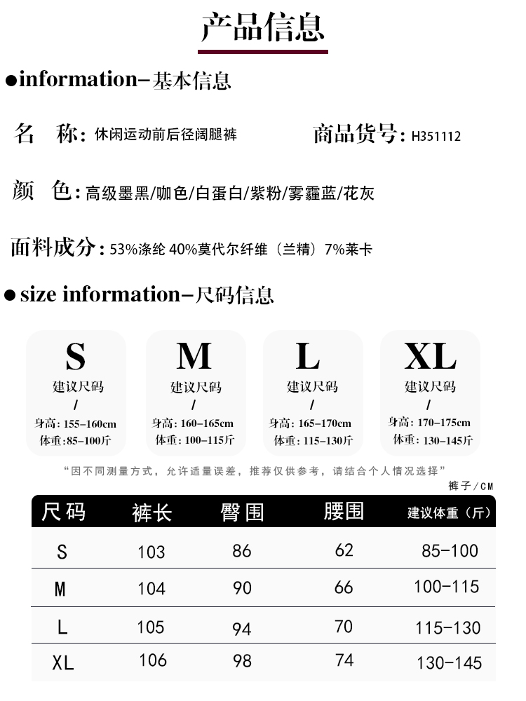 哈瓦塔直筒休闲运动前后精裤H351112