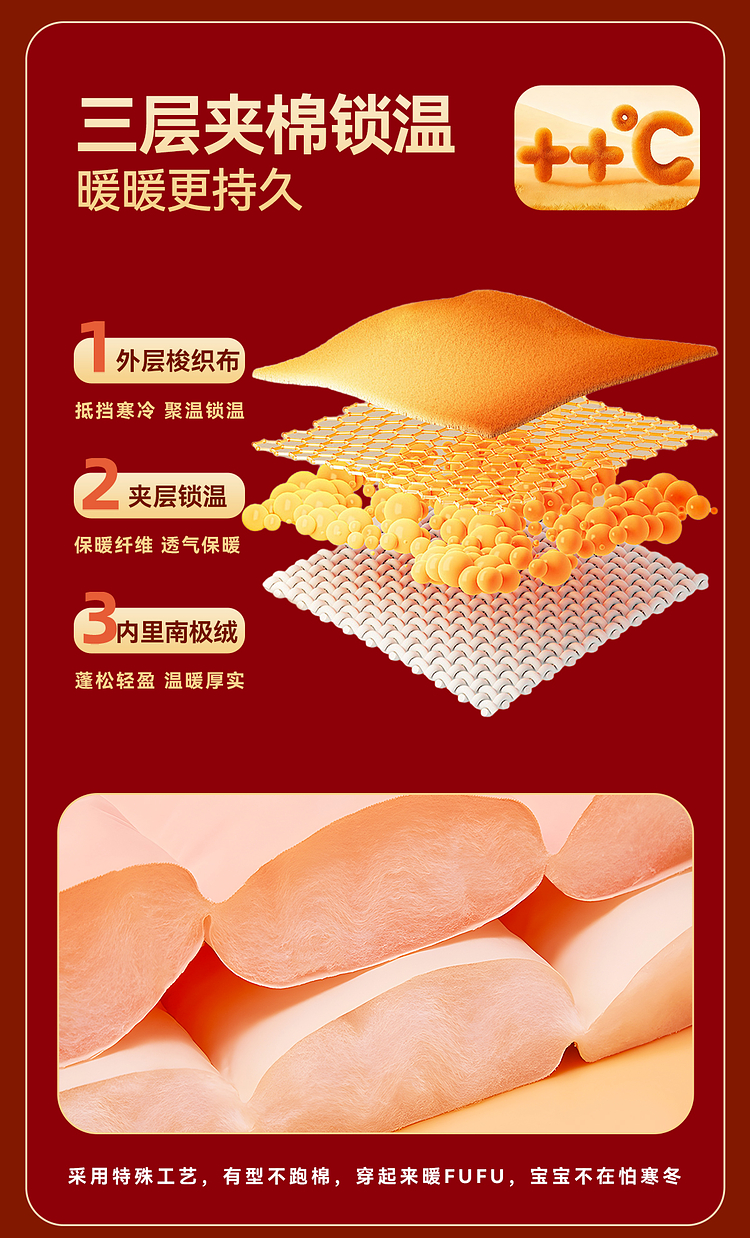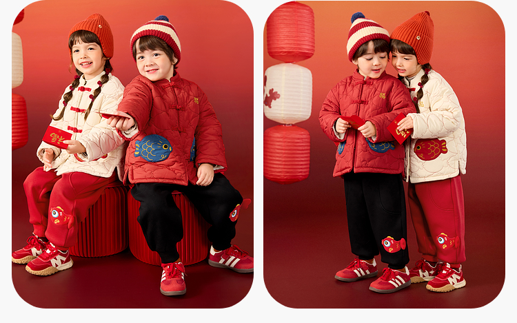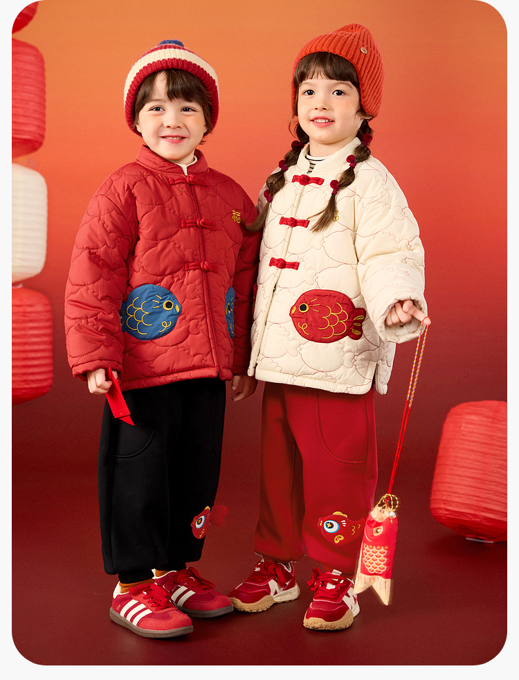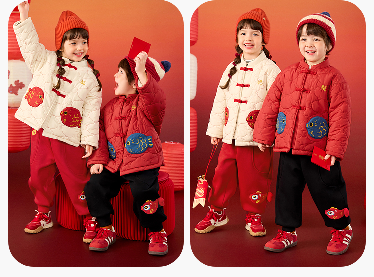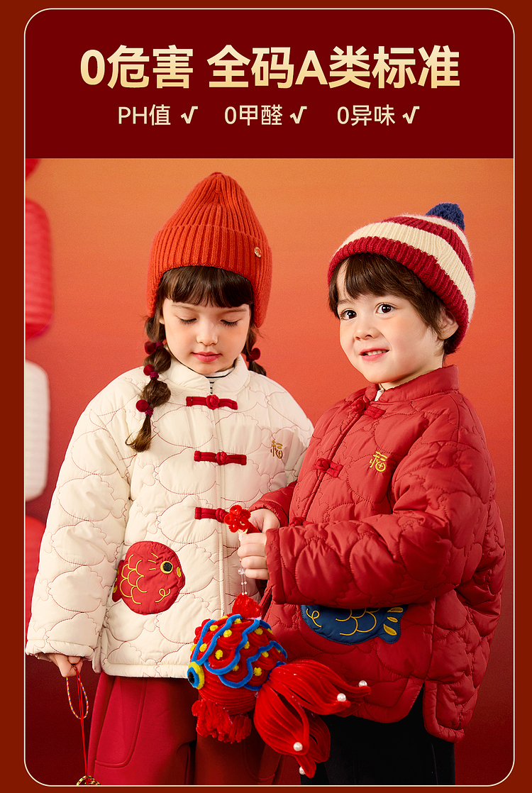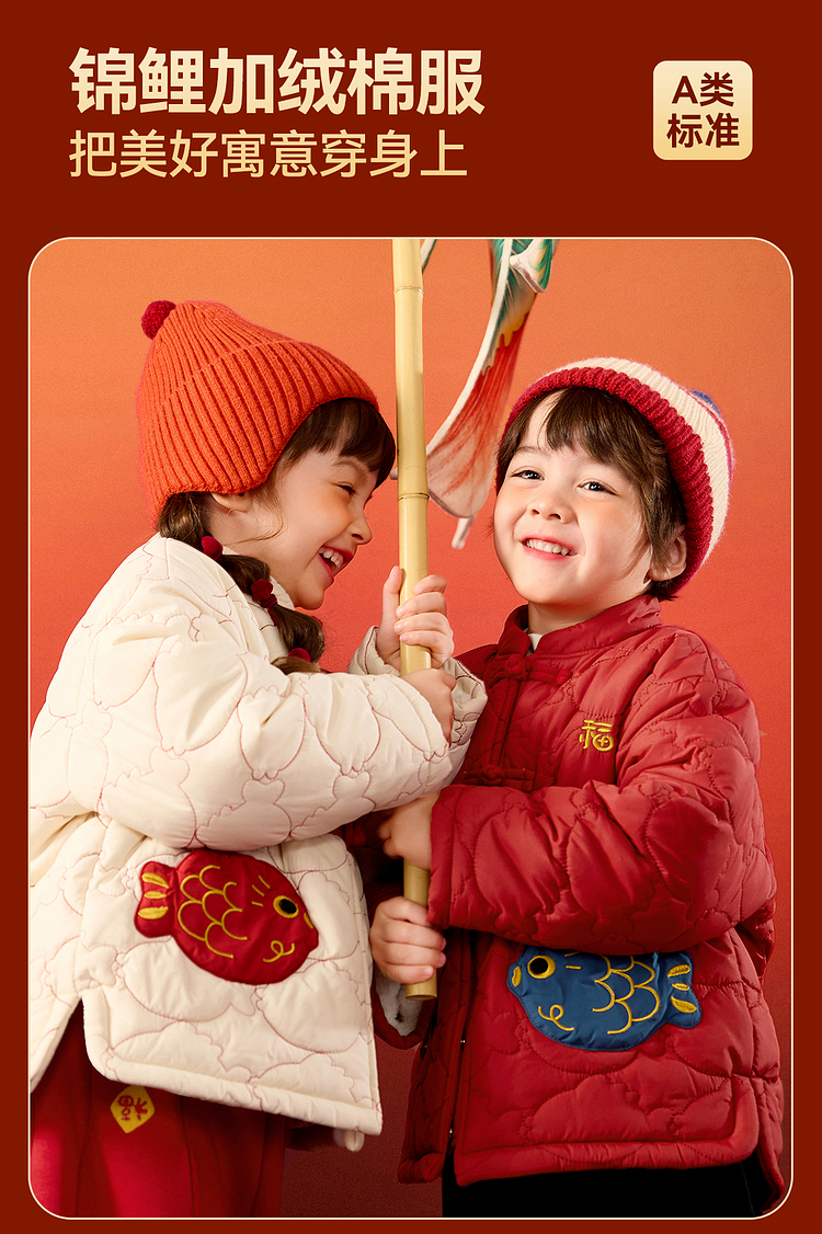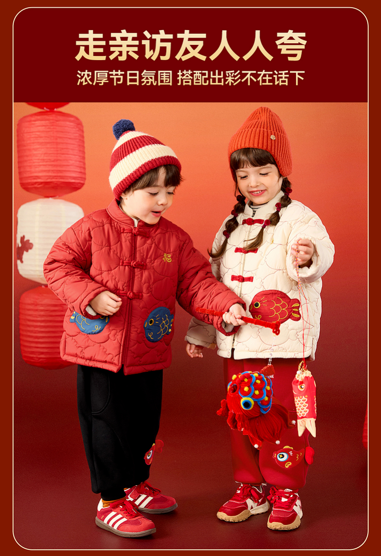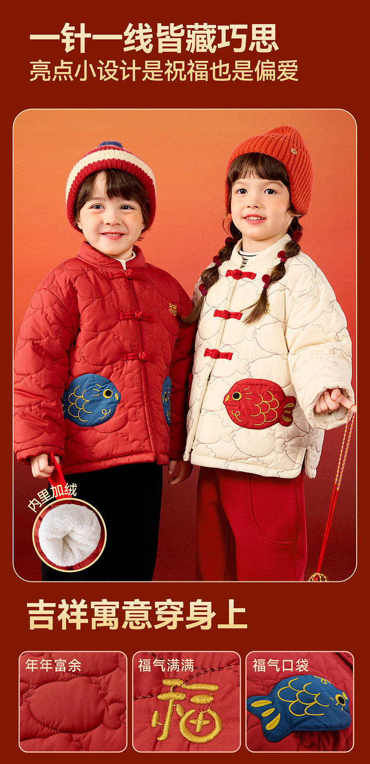 嘟嘟家儿童加绒棉服冬季男童加厚棉衣冬装女童过年外套喜庆潮★