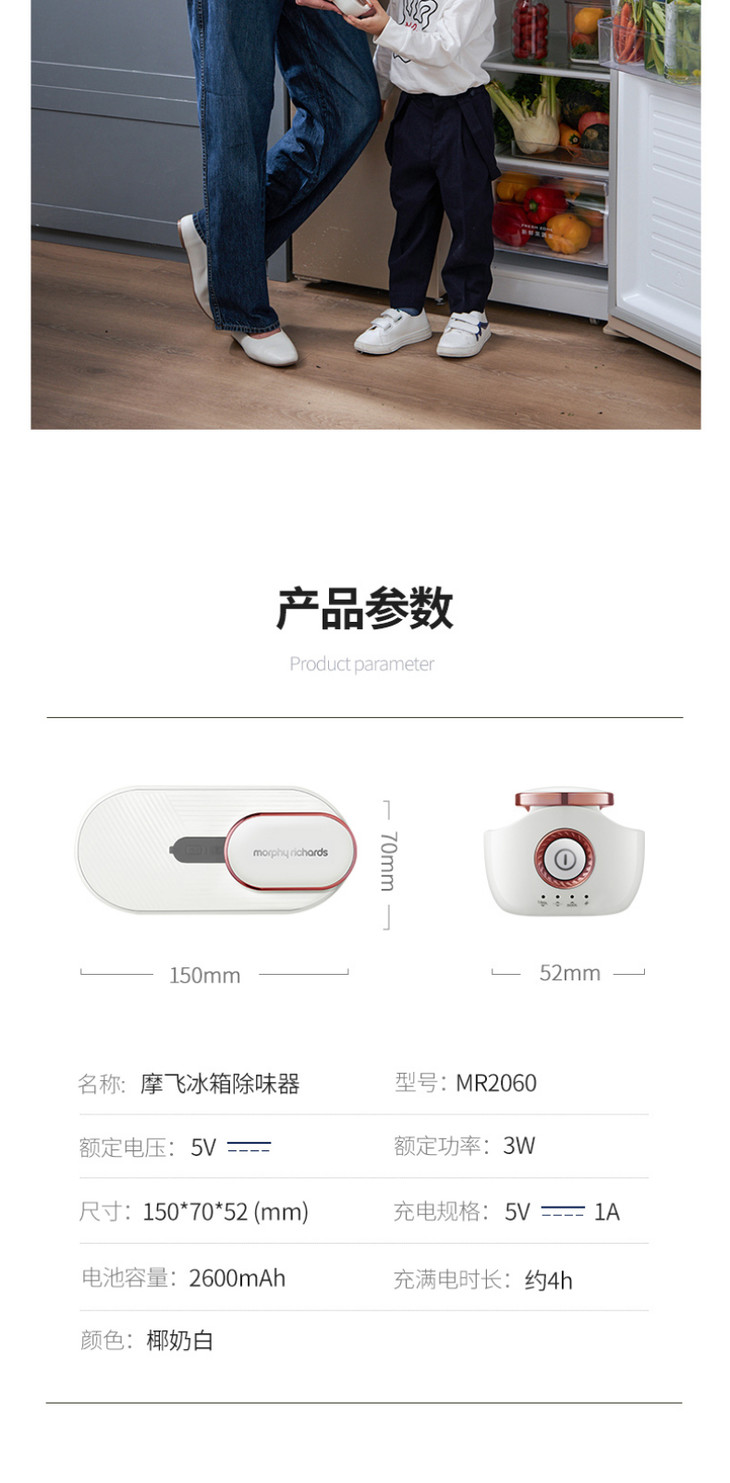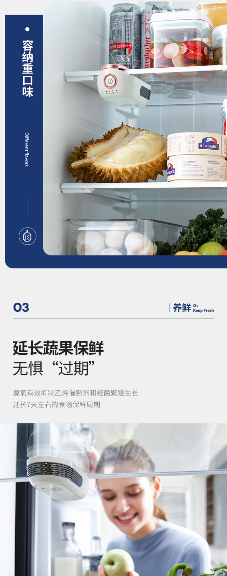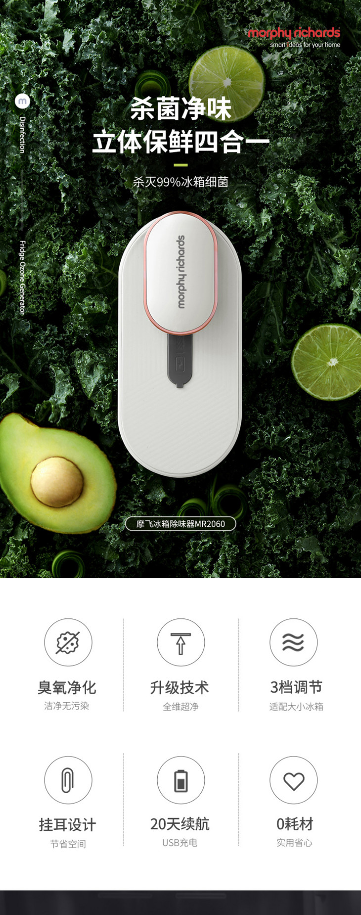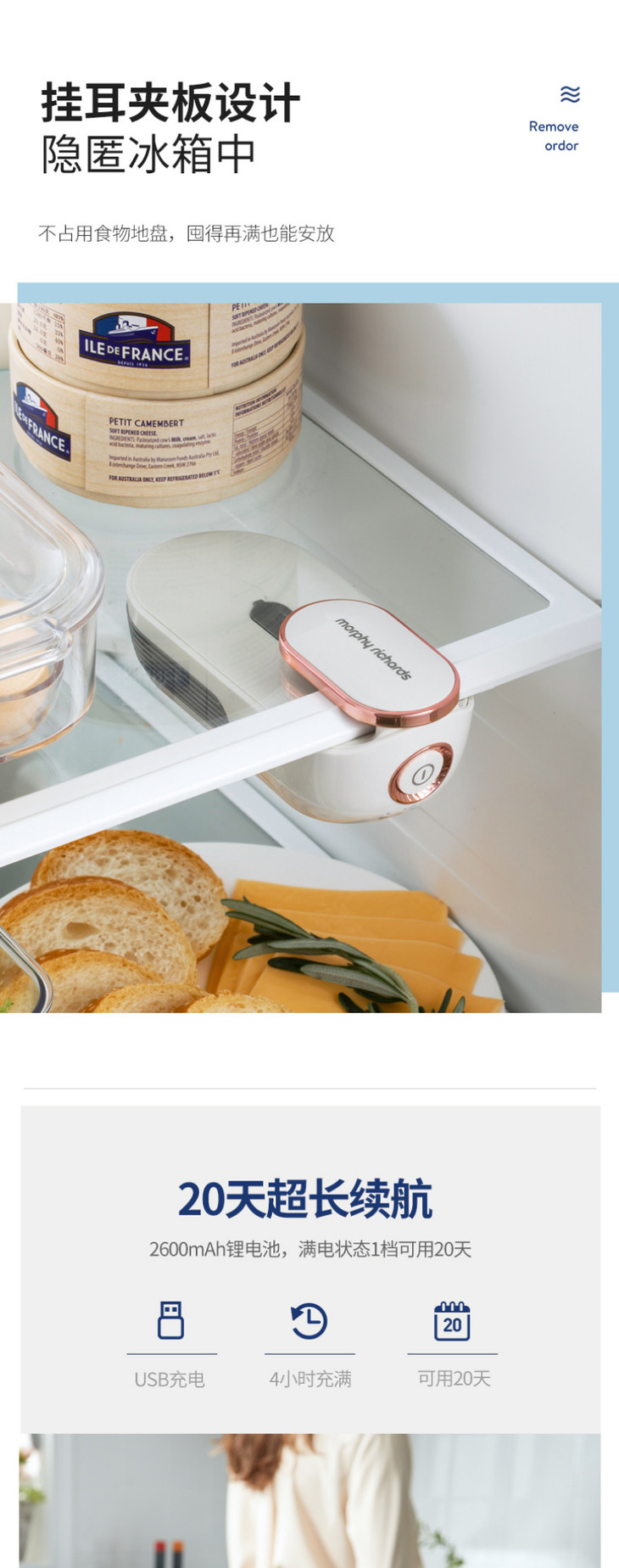 摩飞MR2060冰箱除味器空气净化抑毒除臭去味活X氧除味剂【摩飞系列】