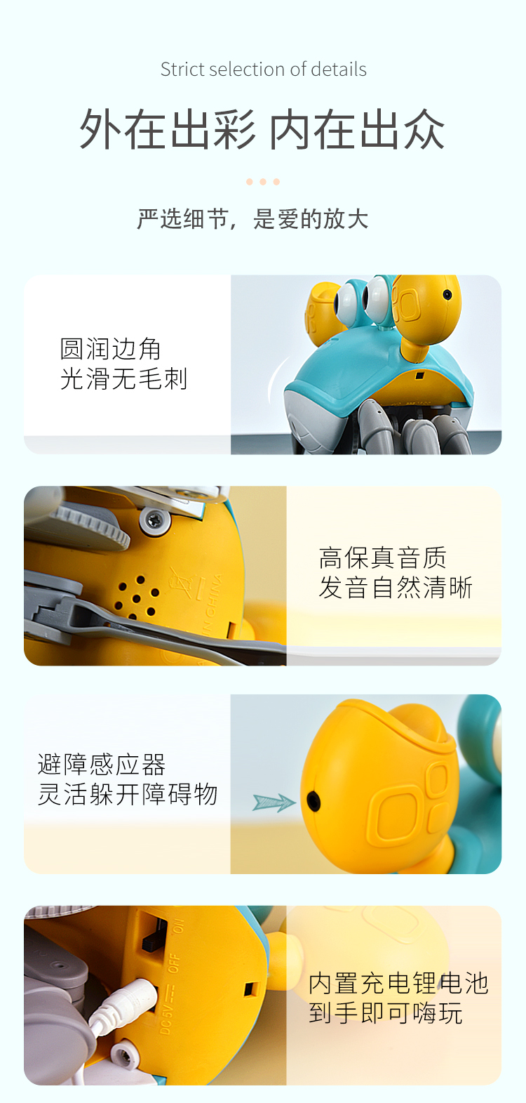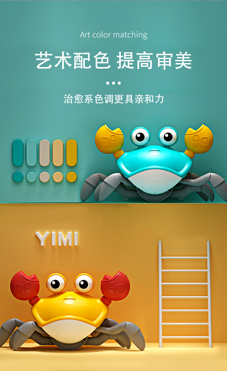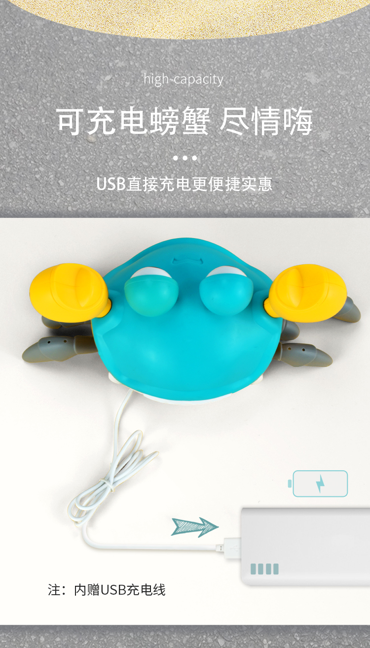 【玩具】“抓不住”爬走螃蟹电动玩具,智能防撞,动感音乐,柔和灯光