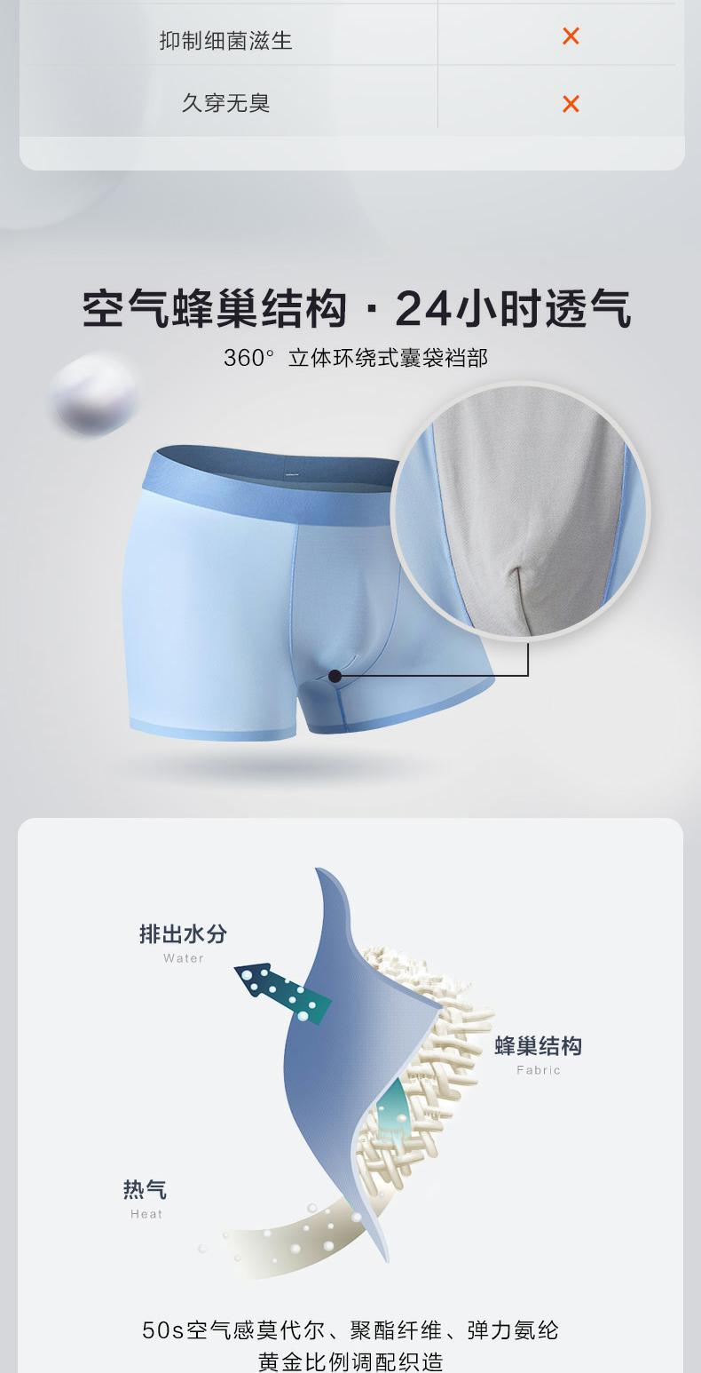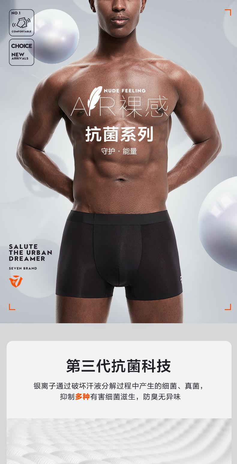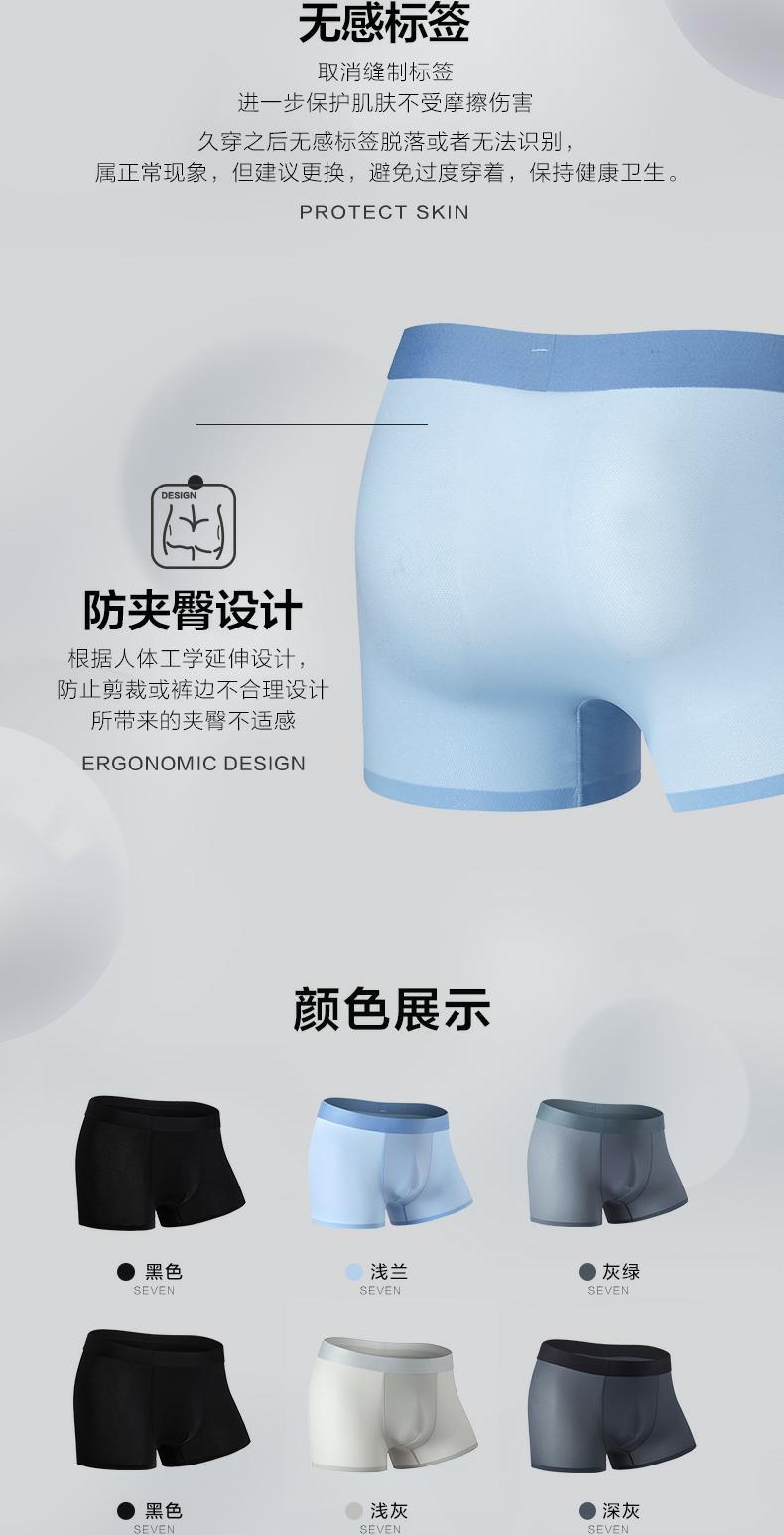 【礼盒3条装】柒牌男士内裤冰丝无痕四角裤夏季薄款网眼透气抗菌男生裤衩平角裤 118F70260