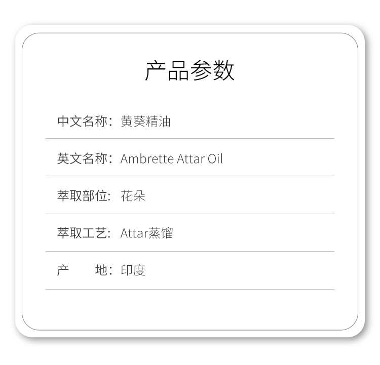 黄葵精油印度attar油芳疗护理香氛调香居家空间香薰大篷车精油