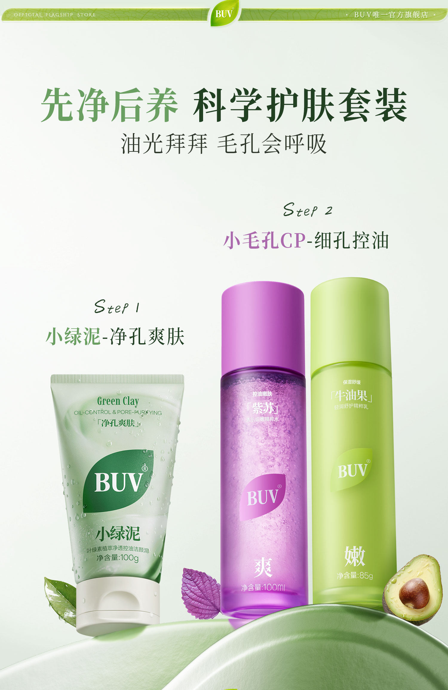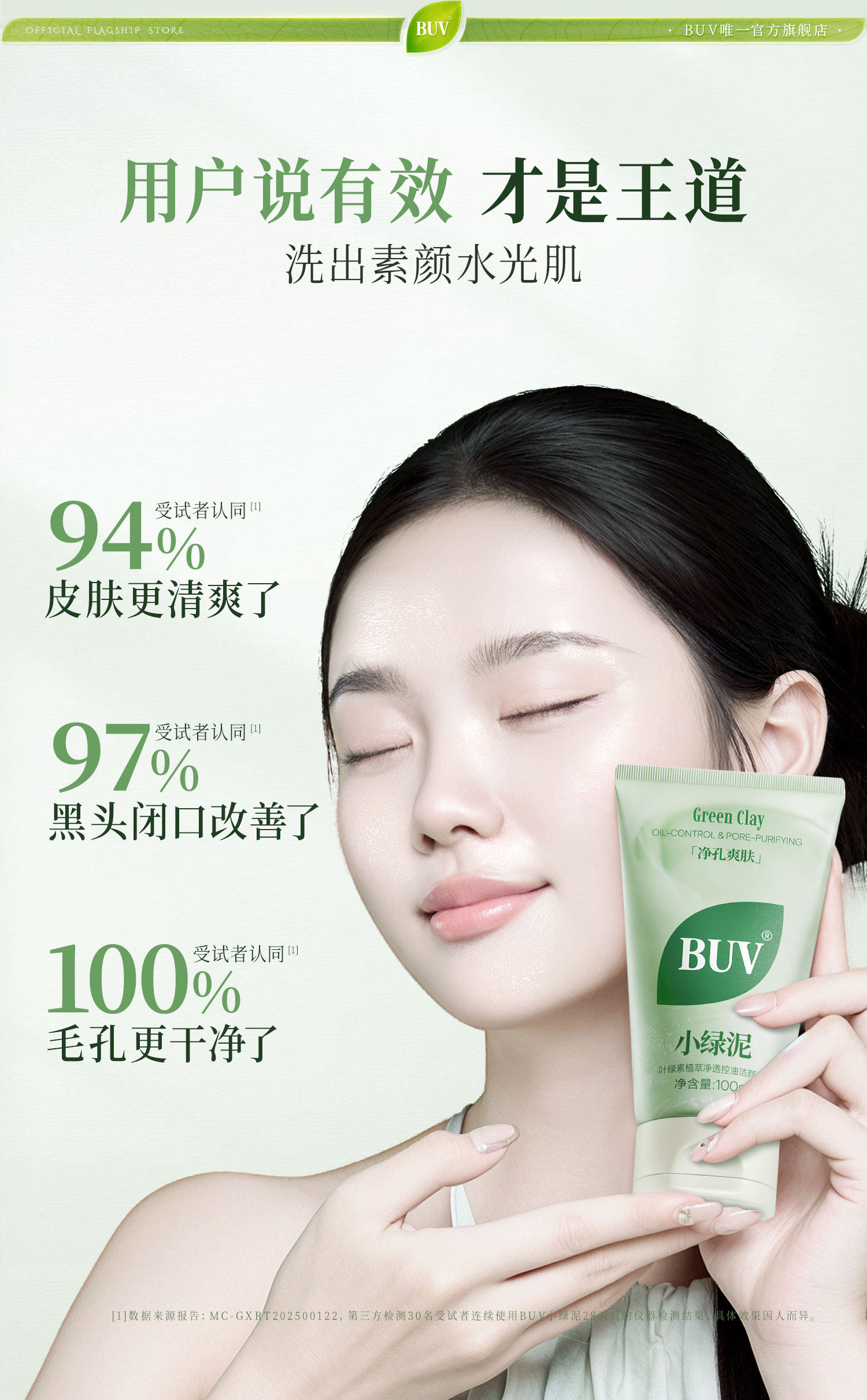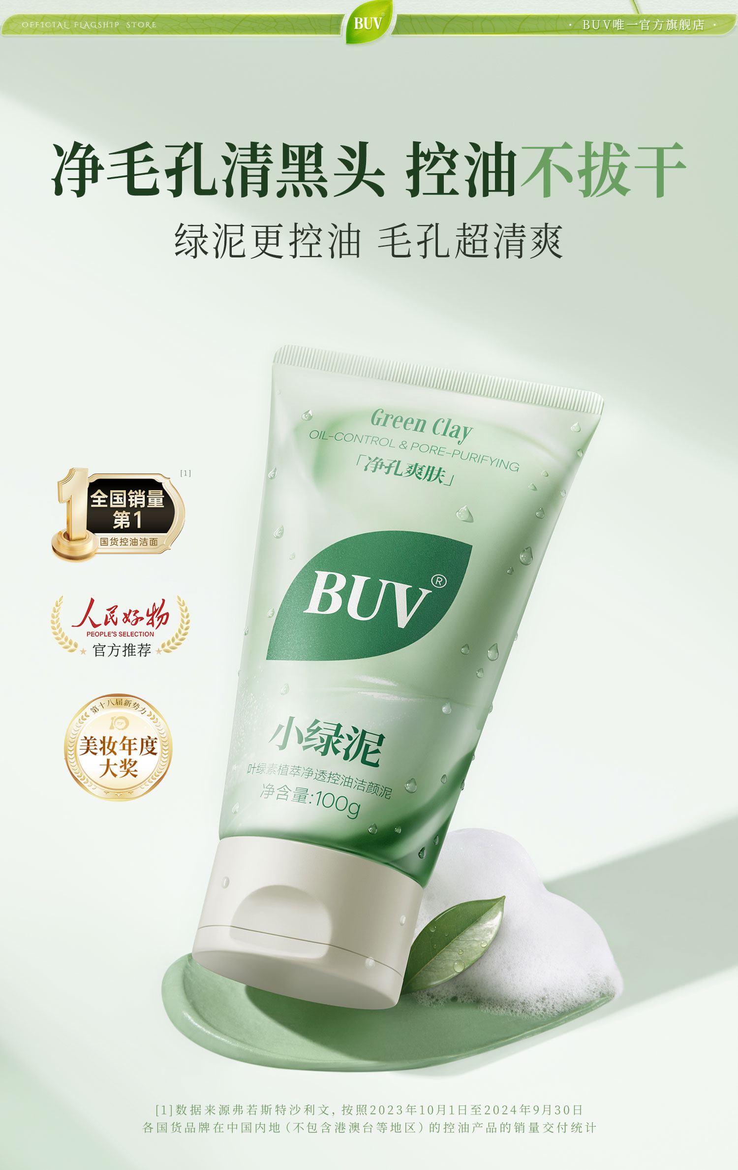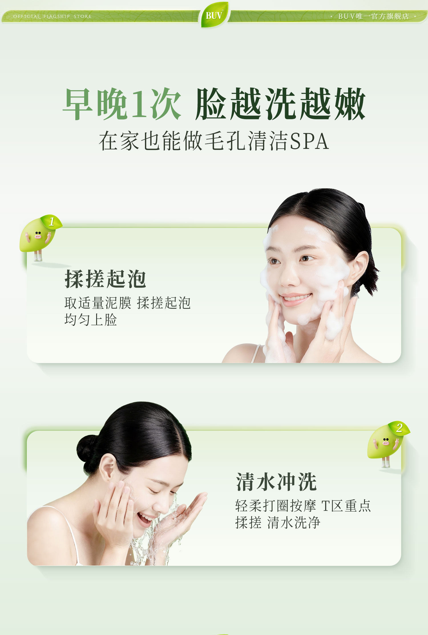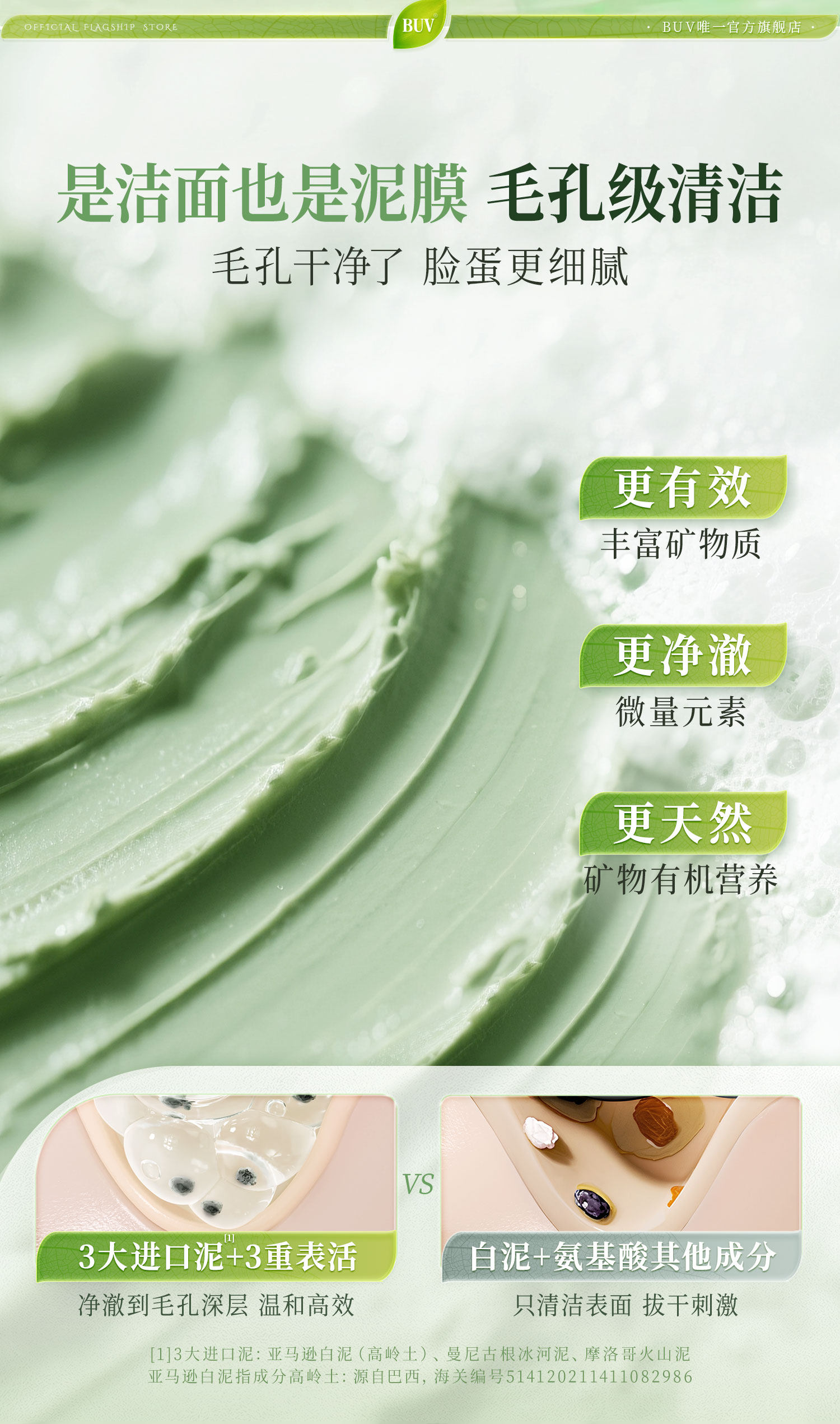 [黄子韬代言] BUV绿泥洗面奶氨基酸洁面乳 温和清洁黑头收缩毛孔控油