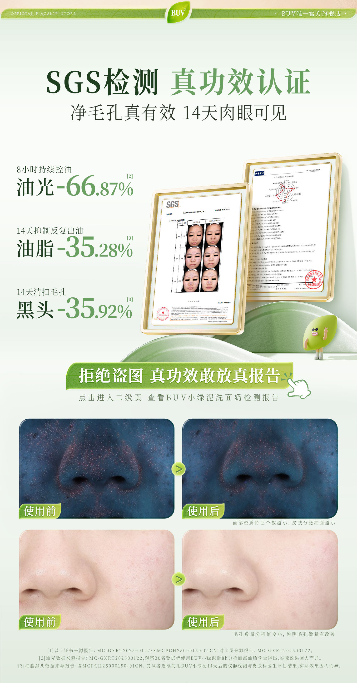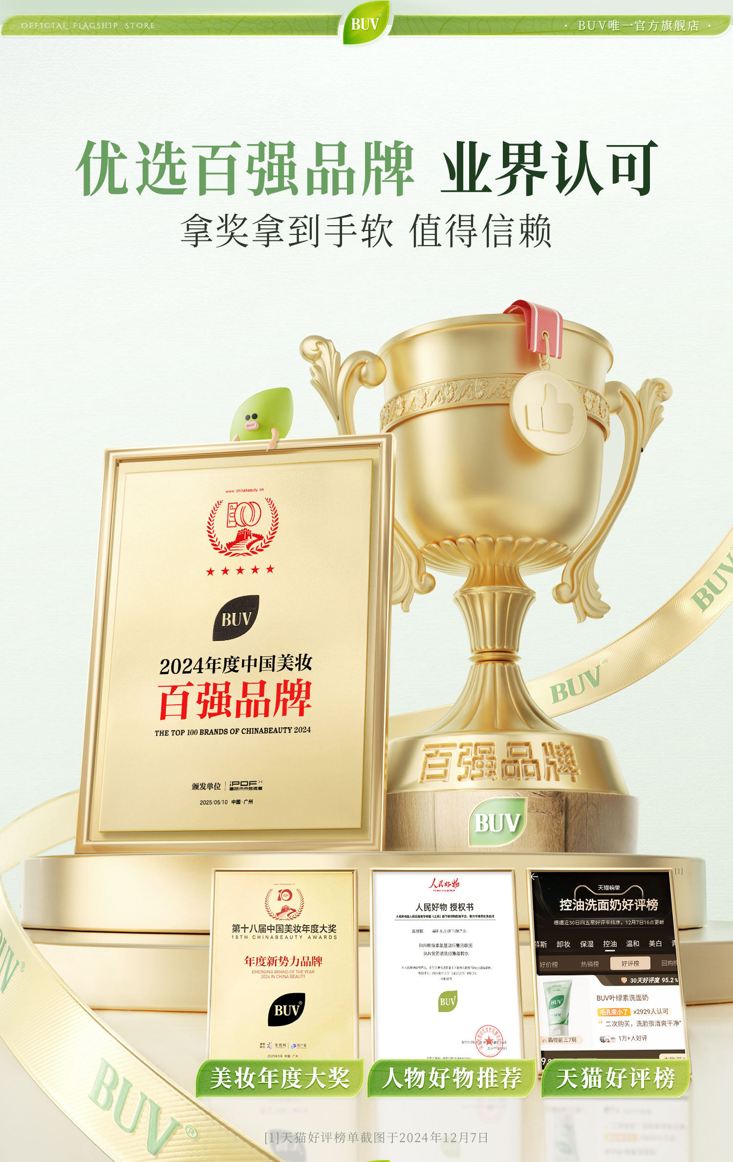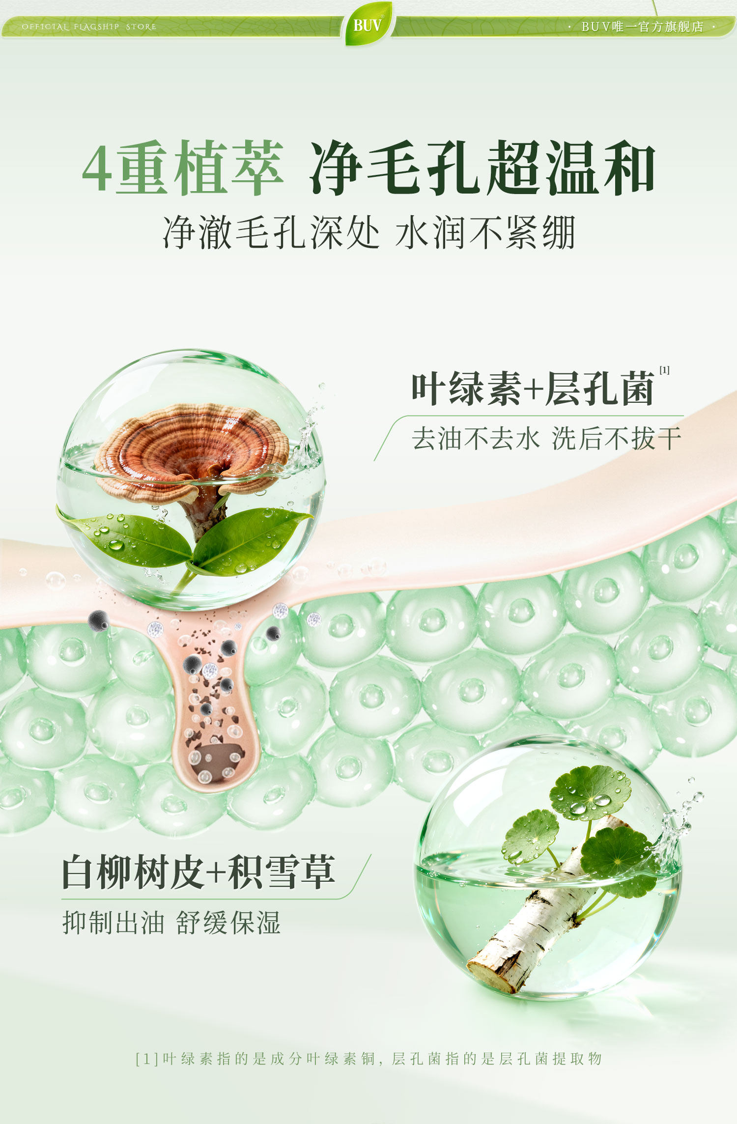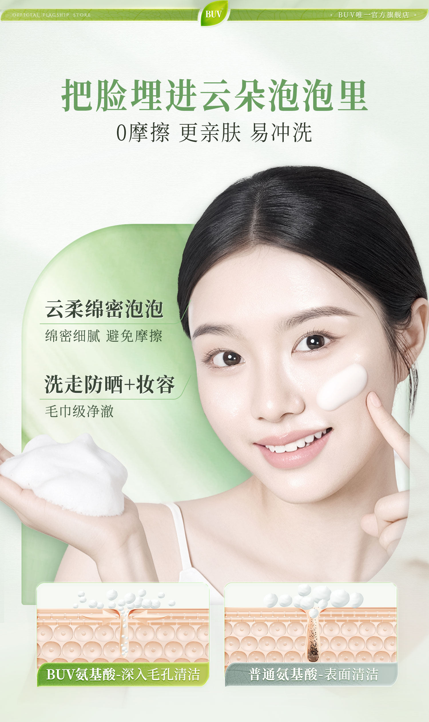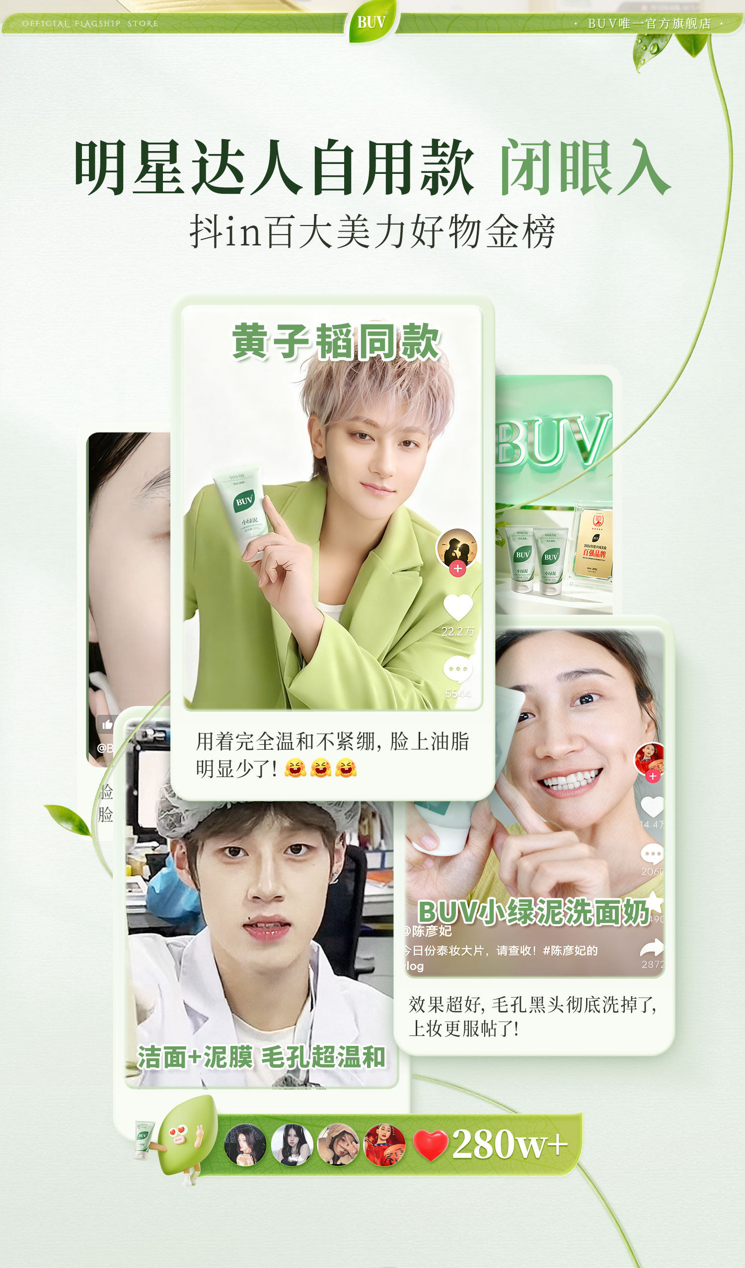 [黄子韬代言] BUV绿泥洗面奶氨基酸洁面乳 温和清洁黑头收缩毛孔控油