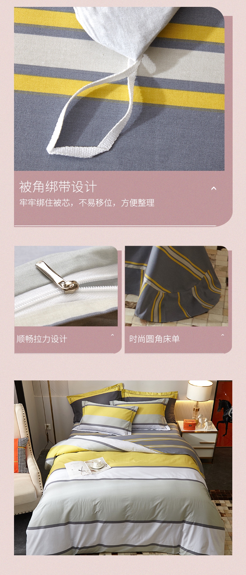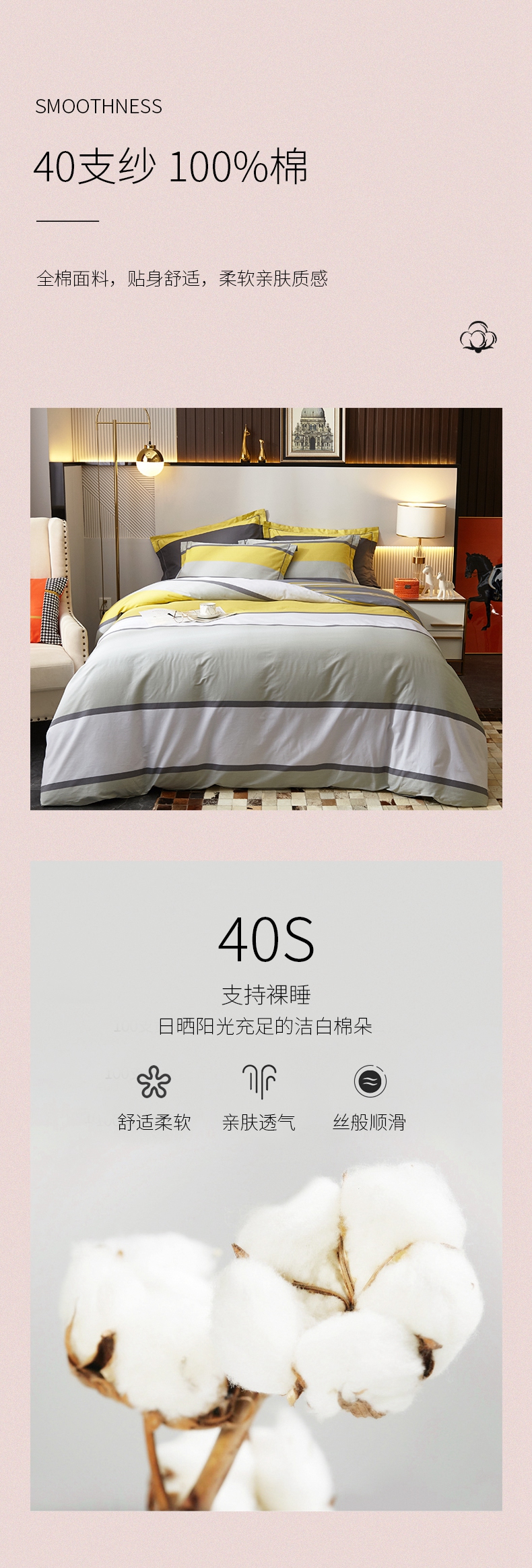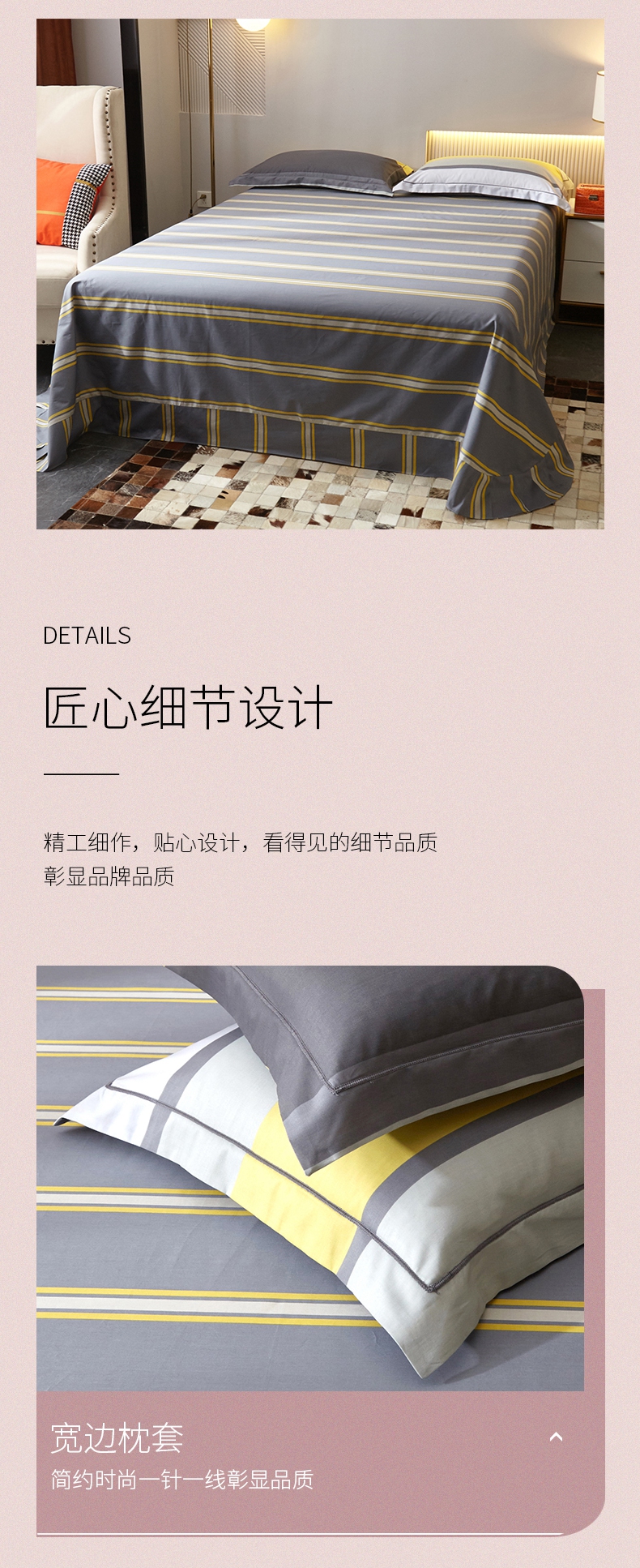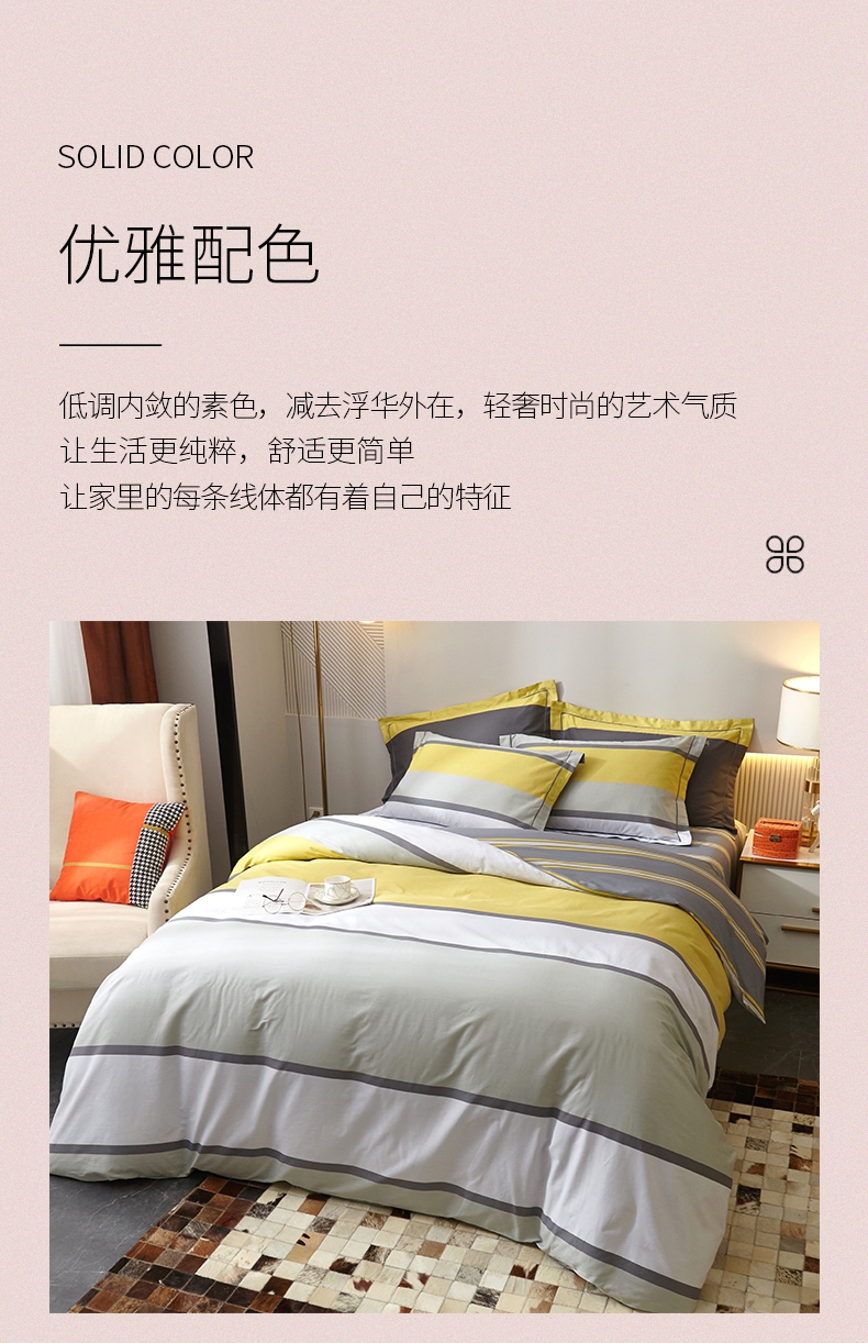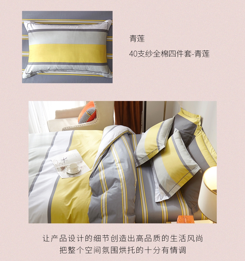 春夏新品条纹系列40支纱全棉四件套 被套床单4件套活性印染工艺-青莲