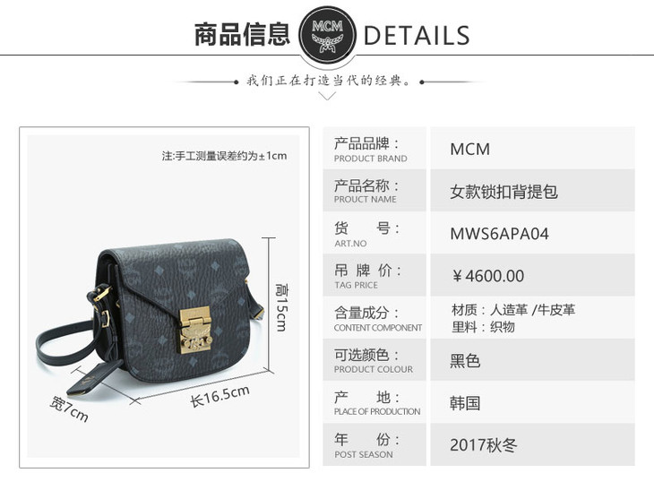 【一般贸易】MCM 经典翻盖款单肩背斜跨包MWS6APA04BK001
