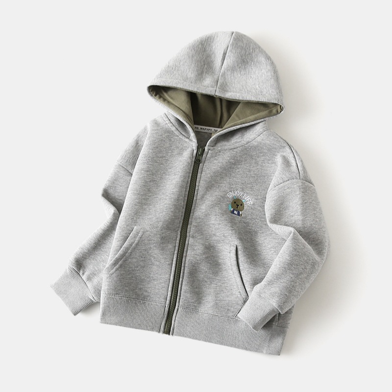 儿童加厚棉质连帽卫衣 韩版休闲拉链卫衣外套