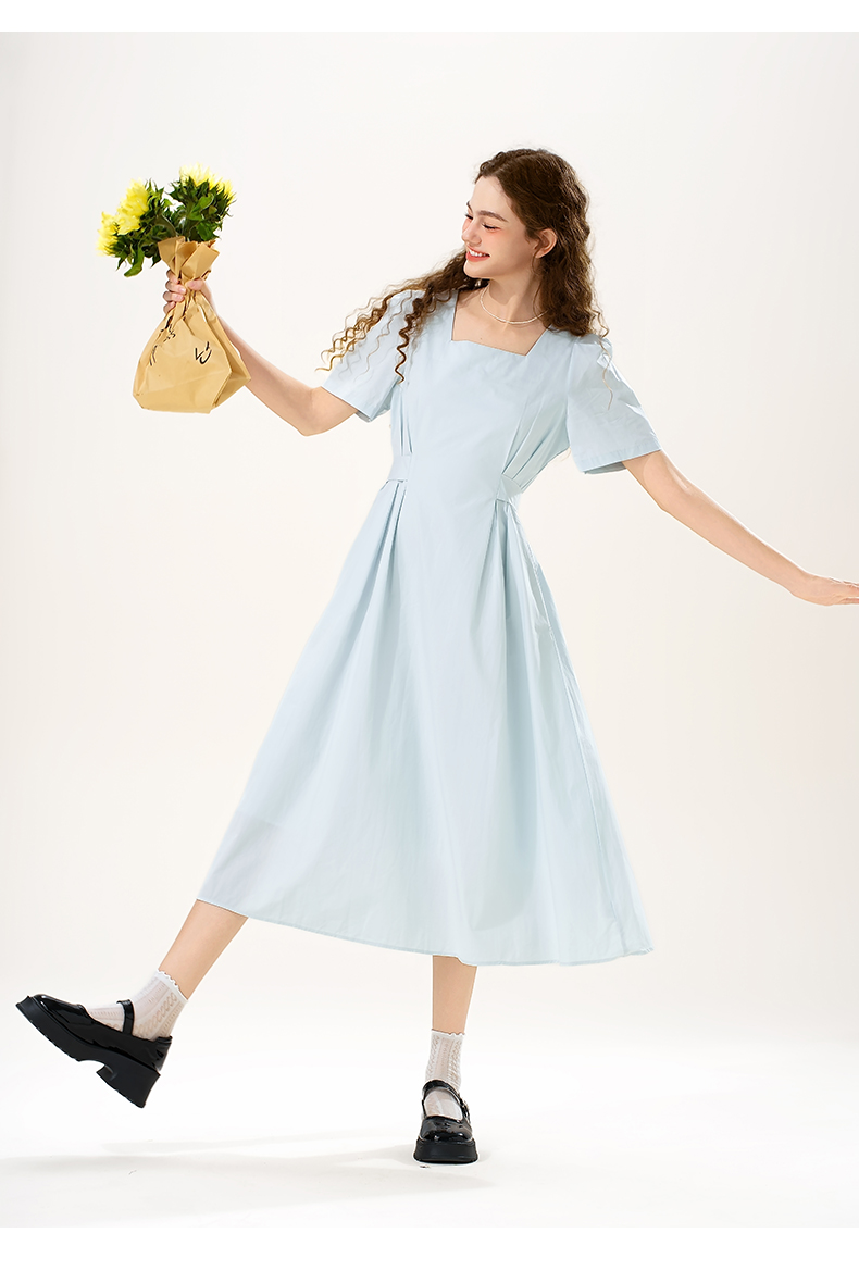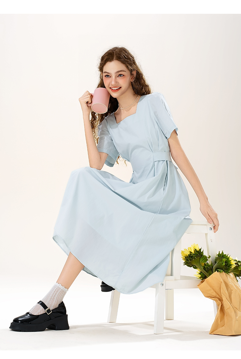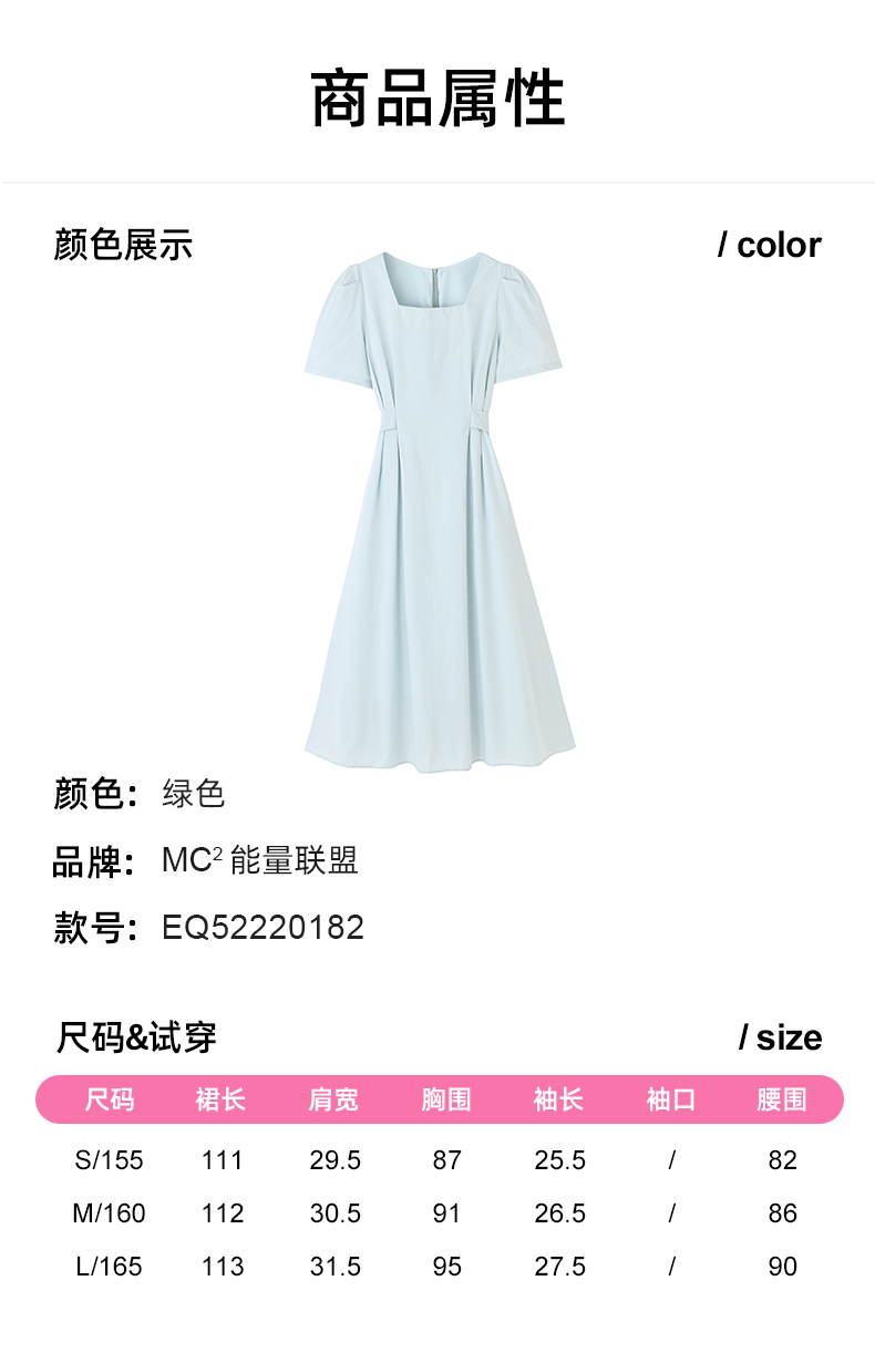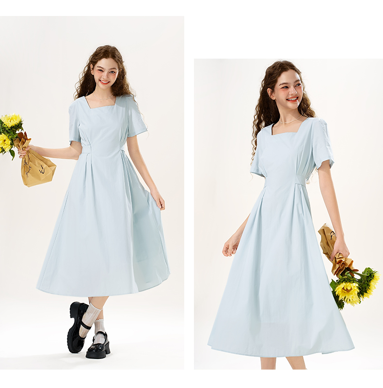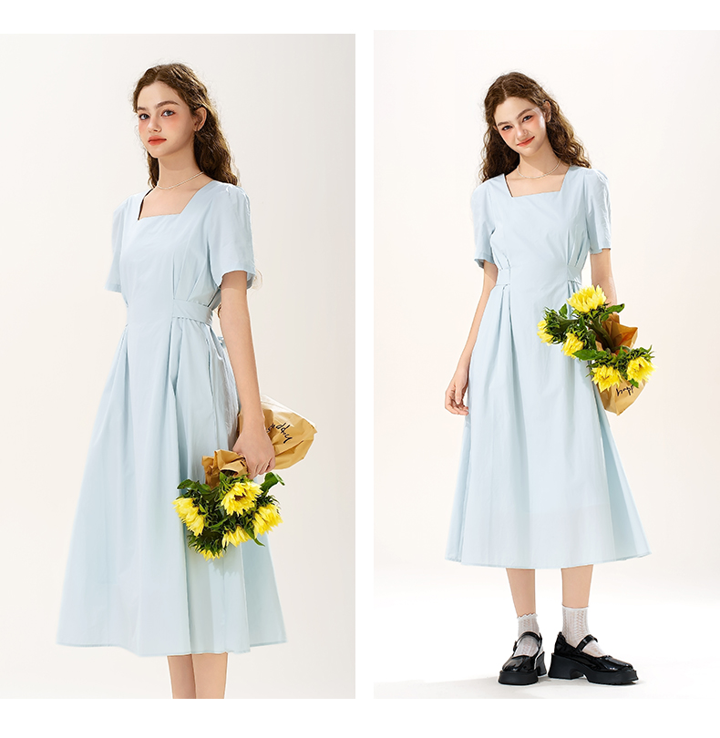 mc2女装方领简约韩系连衣裙夏季新款收腰显瘦时尚流行好看裙子
