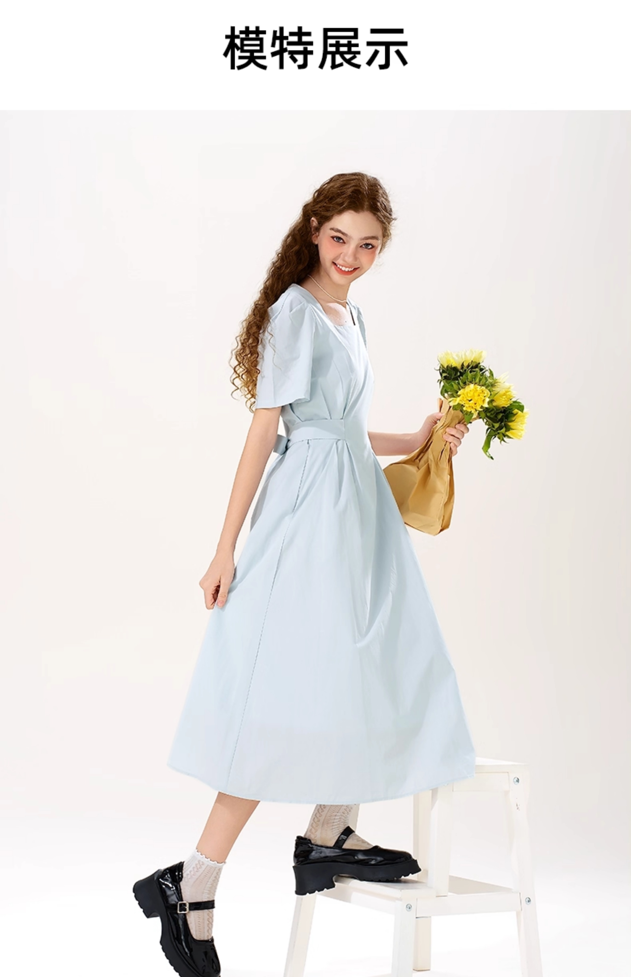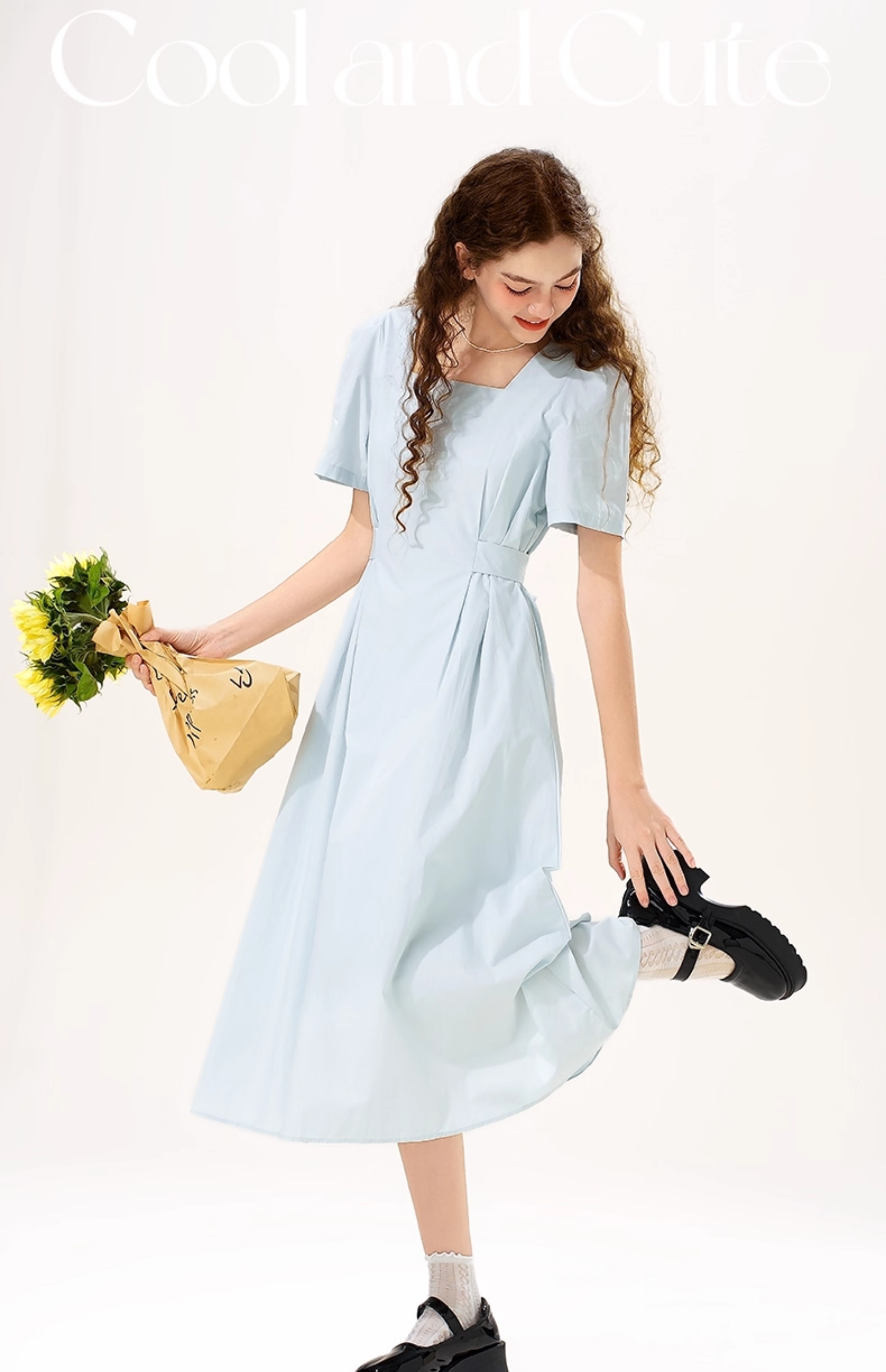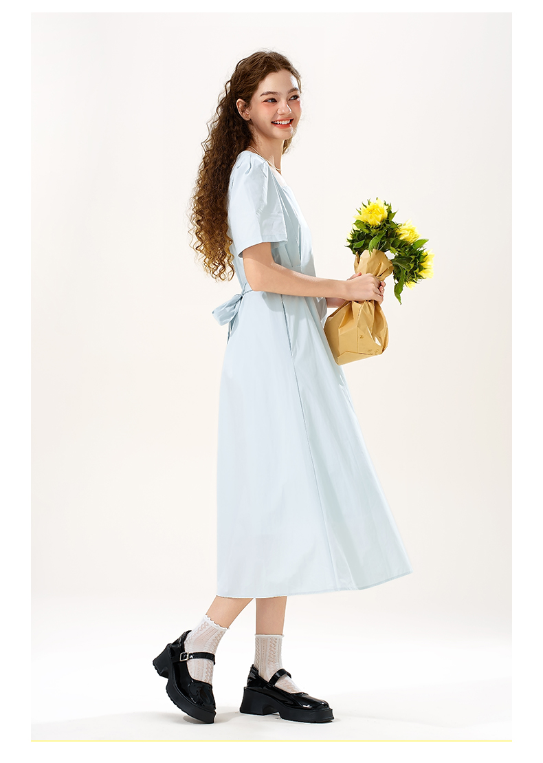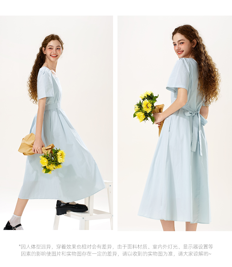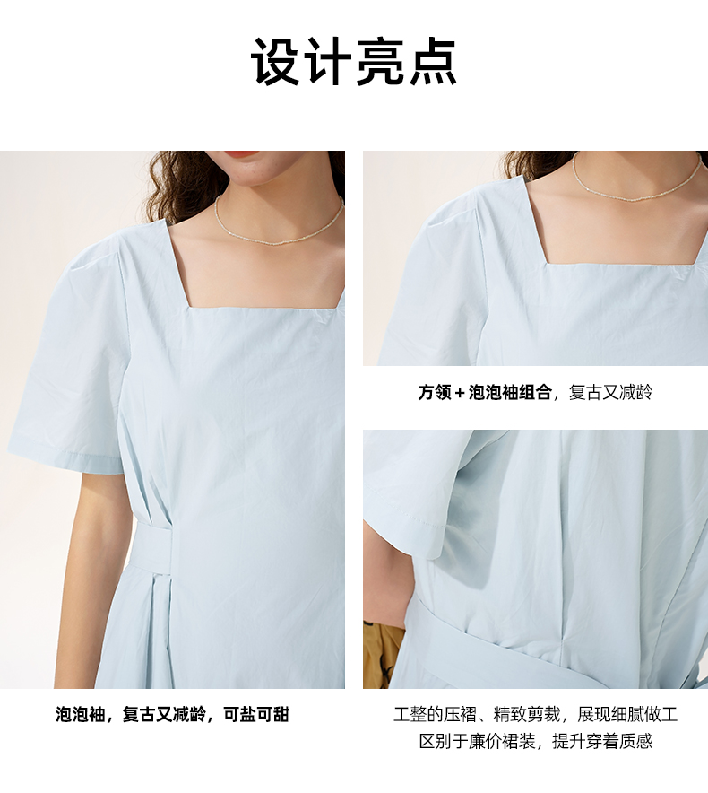mc2女装方领简约韩系连衣裙夏季新款收腰显瘦时尚流行好看裙子