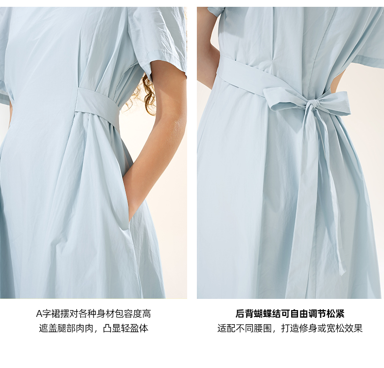 mc2翻领短袖连衣裙女装夏款腰部金属扣腰带收腰显瘦设计感衬衫裙
