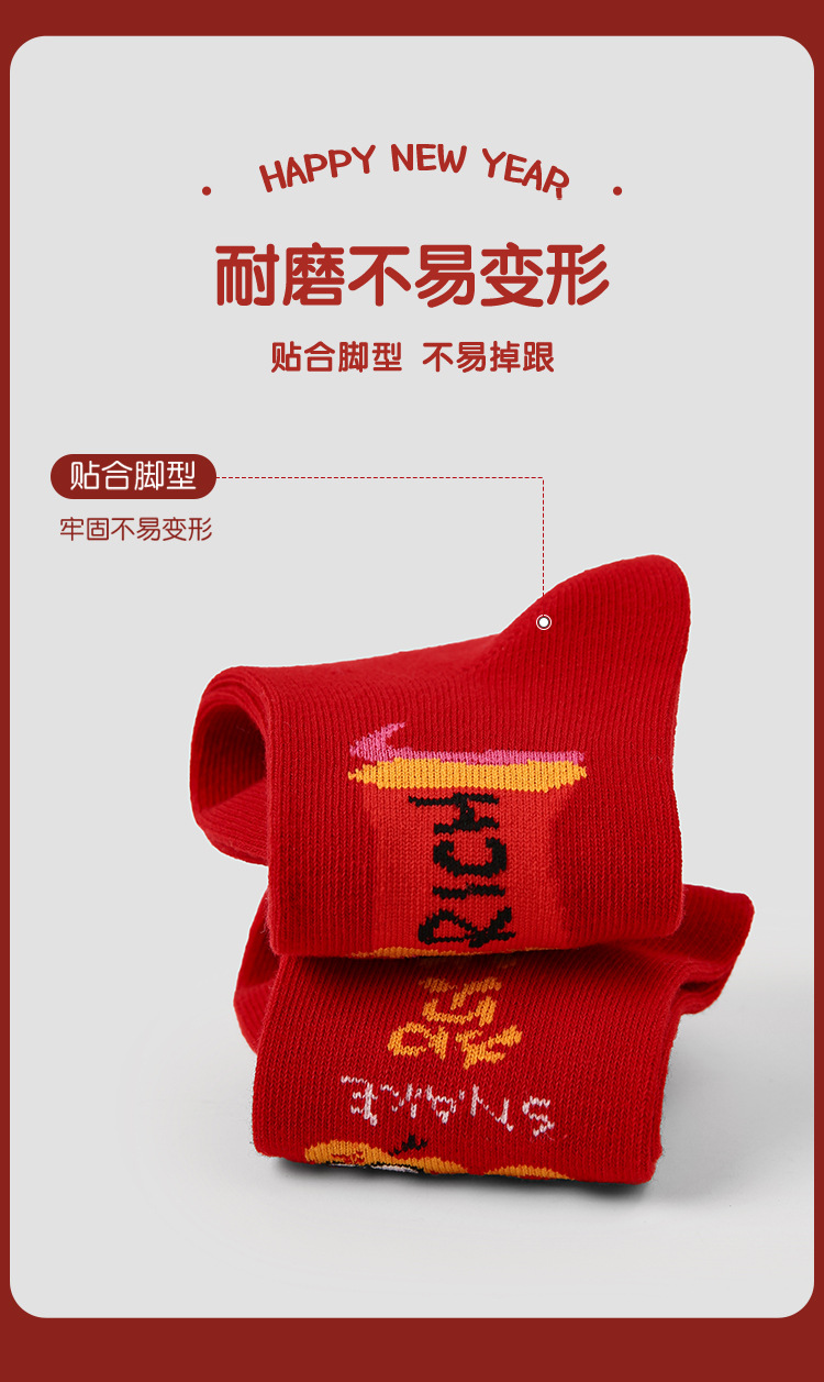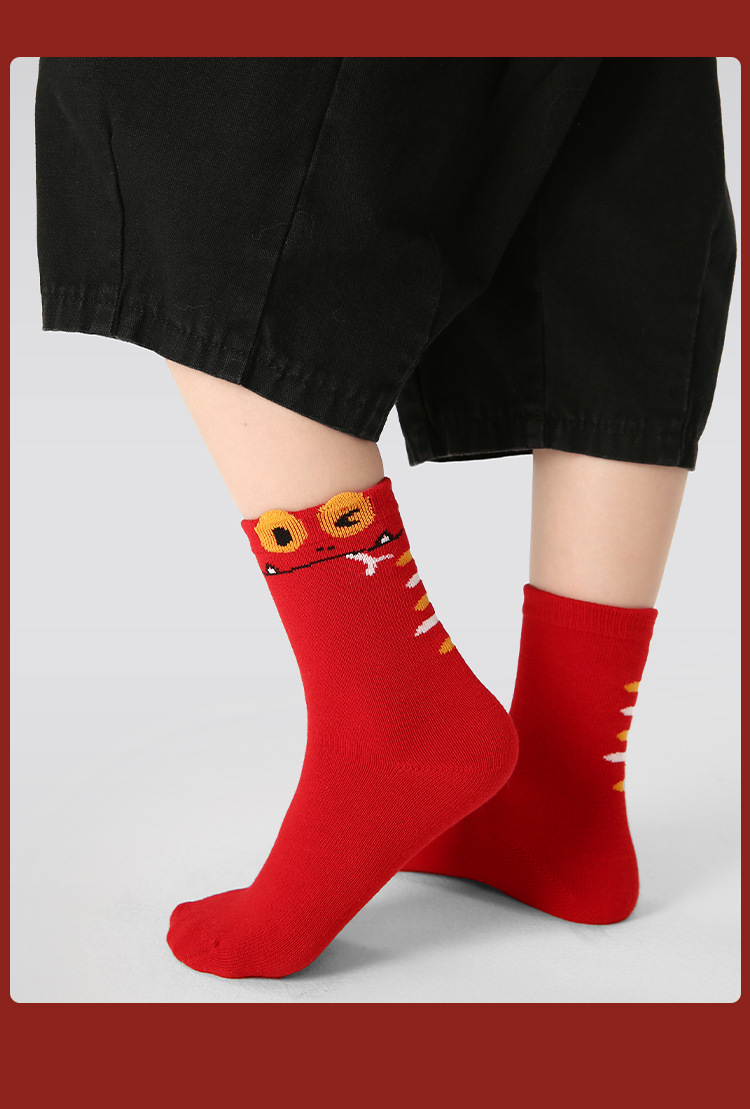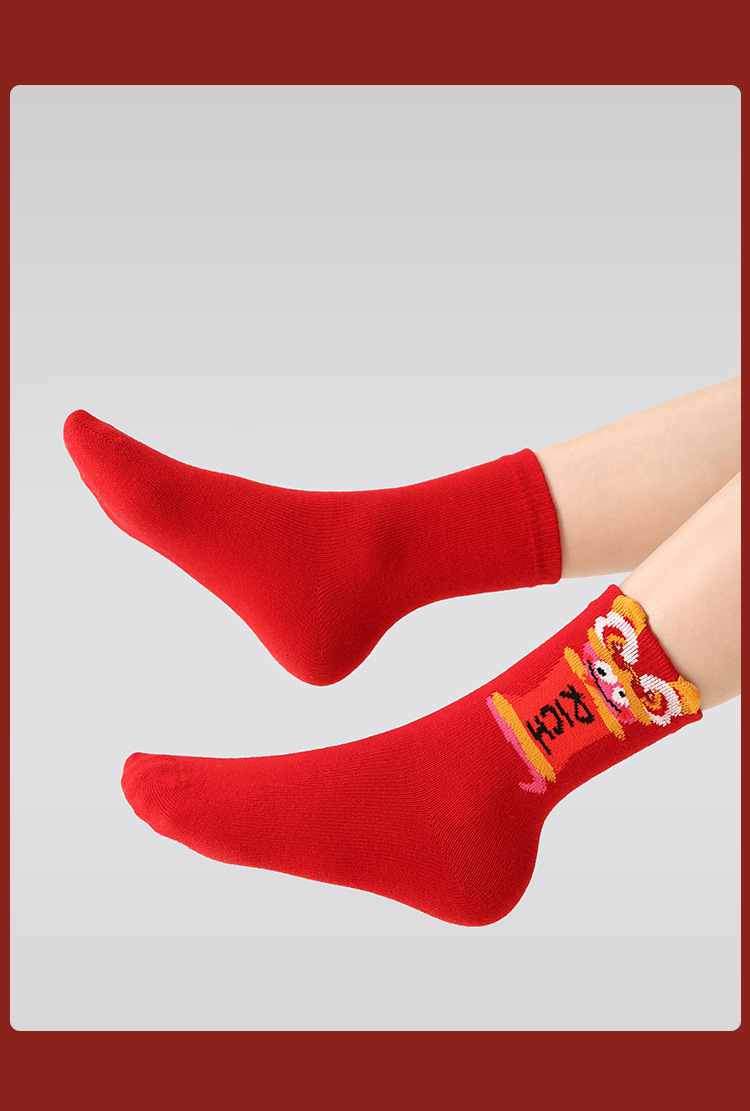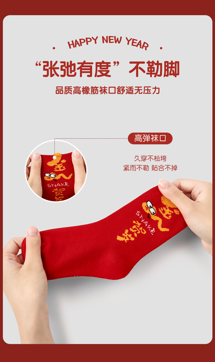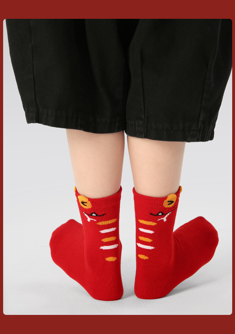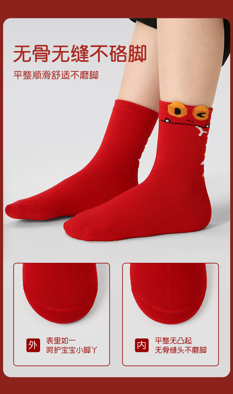 【醒粉福利24.9元5双】蛇年限定款红色新年棉袜 无骨男女童可爱精梳棉卡通袜