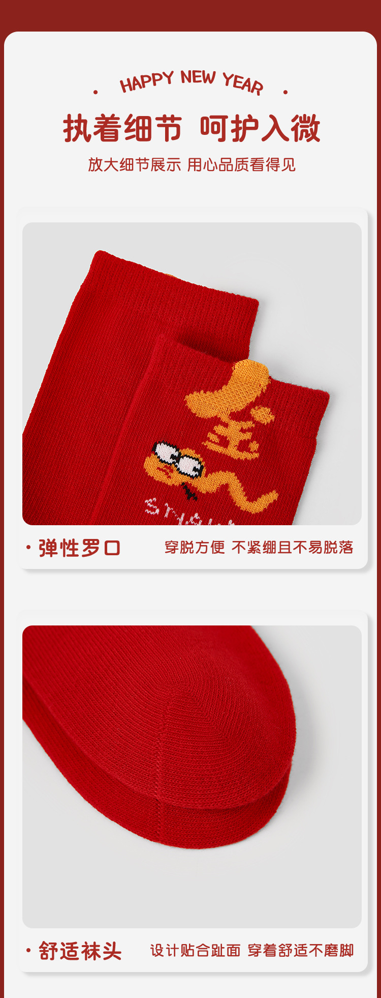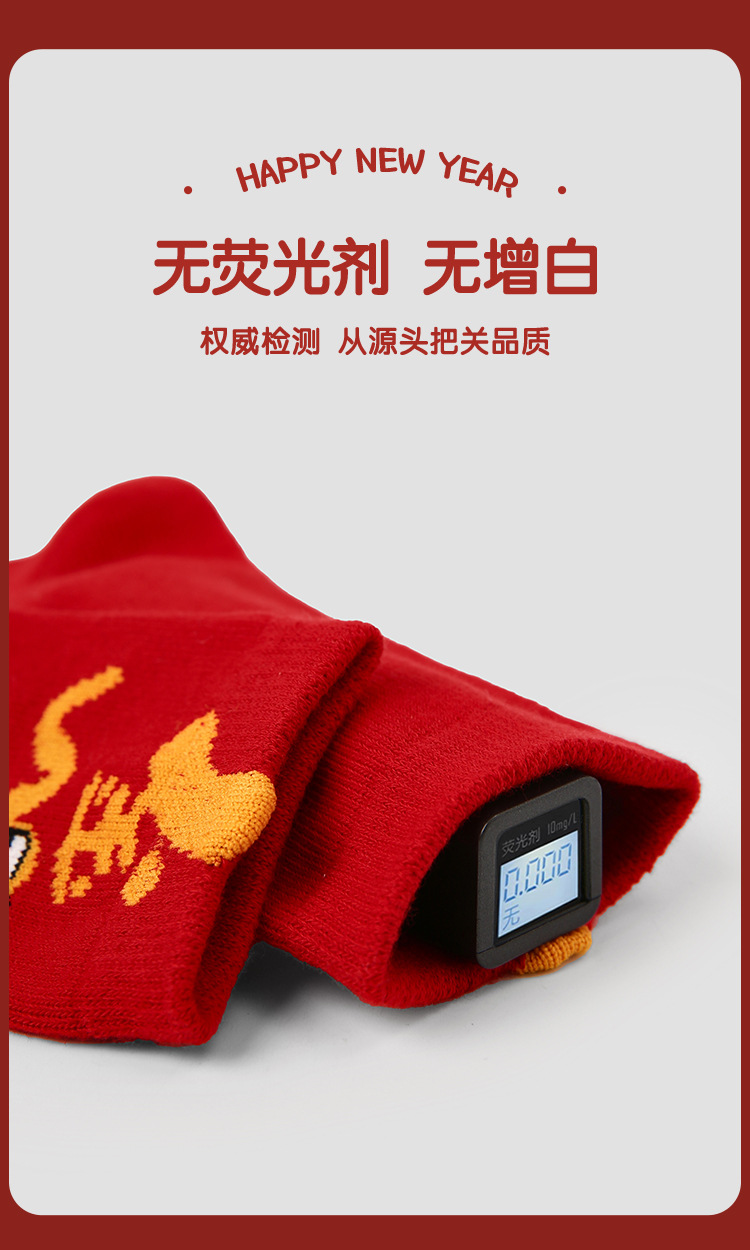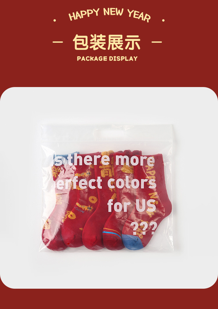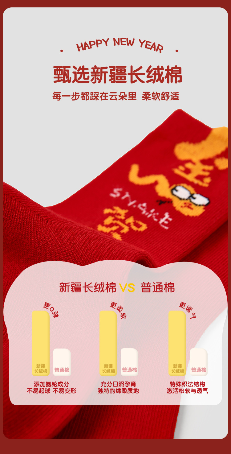 【醒粉福利24.9元5双】蛇年限定款红色新年棉袜 无骨男女童可爱精梳棉卡通袜