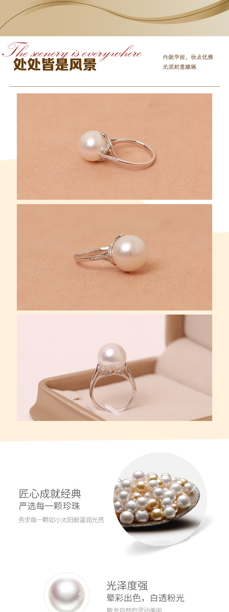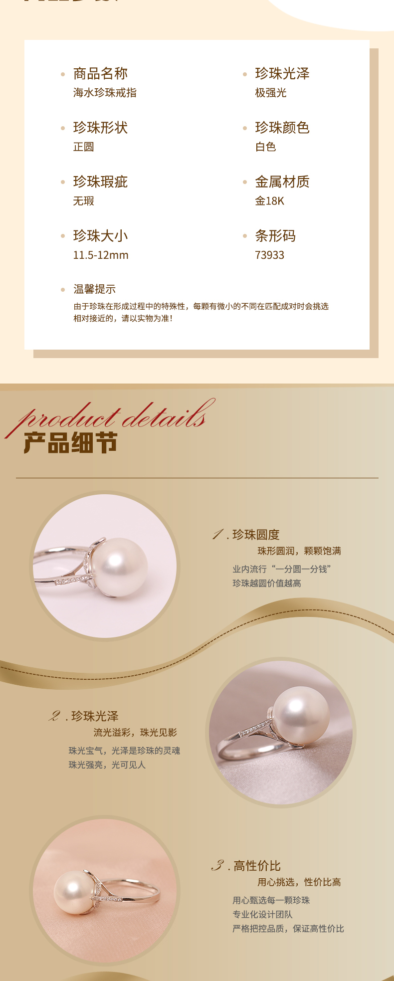 金18K海水珍珠戒指 11.5-12mm白,0.127ct 30粒 73933
