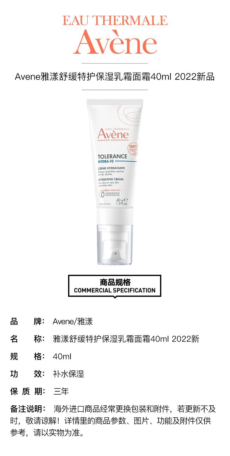 【预售】Avene雅漾舒缓特护保湿乳霜面霜40ml 滋润/清爽型