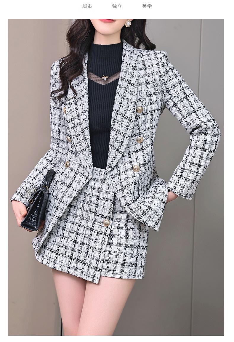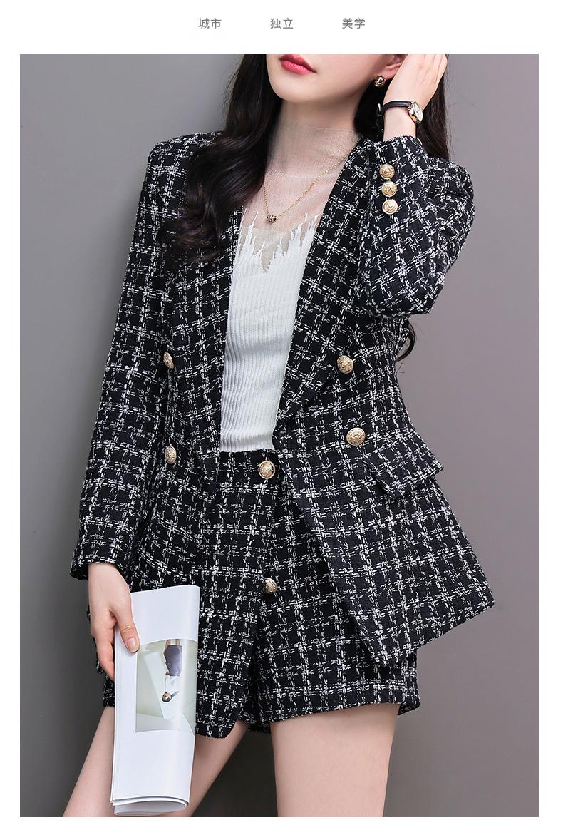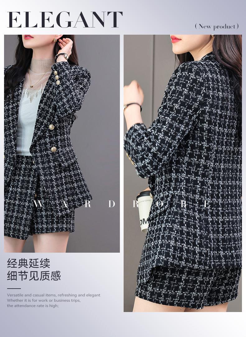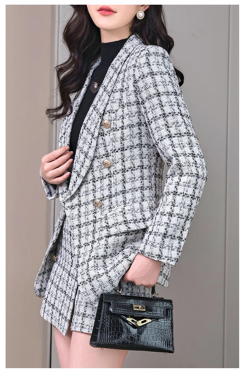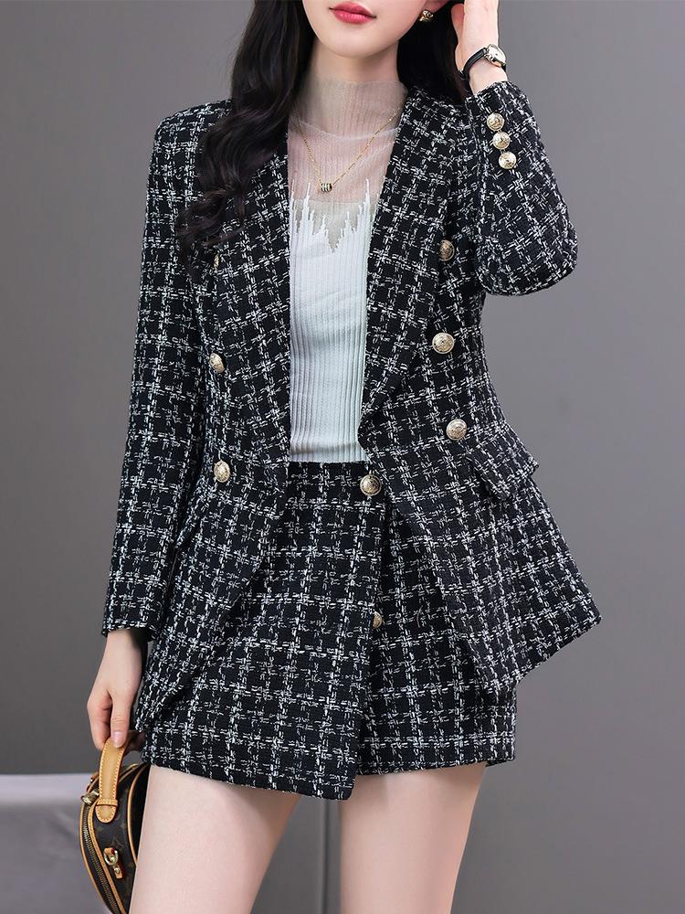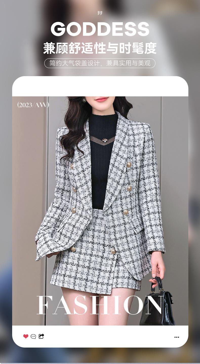 格纹小西服套装女2023秋新款高级感气质名媛小香风两件套通勤外套