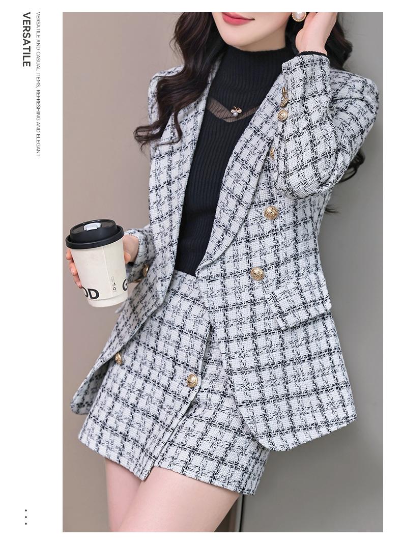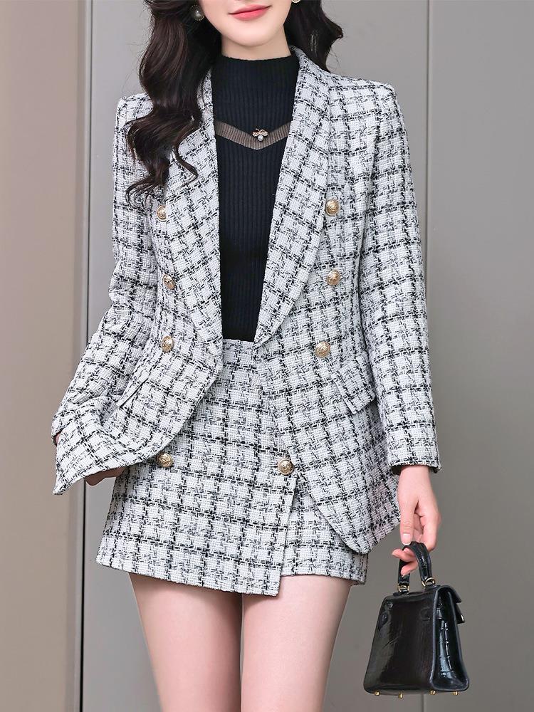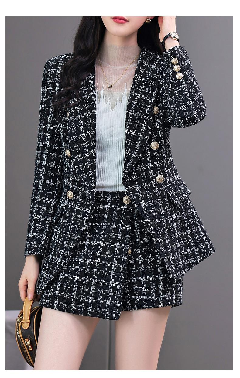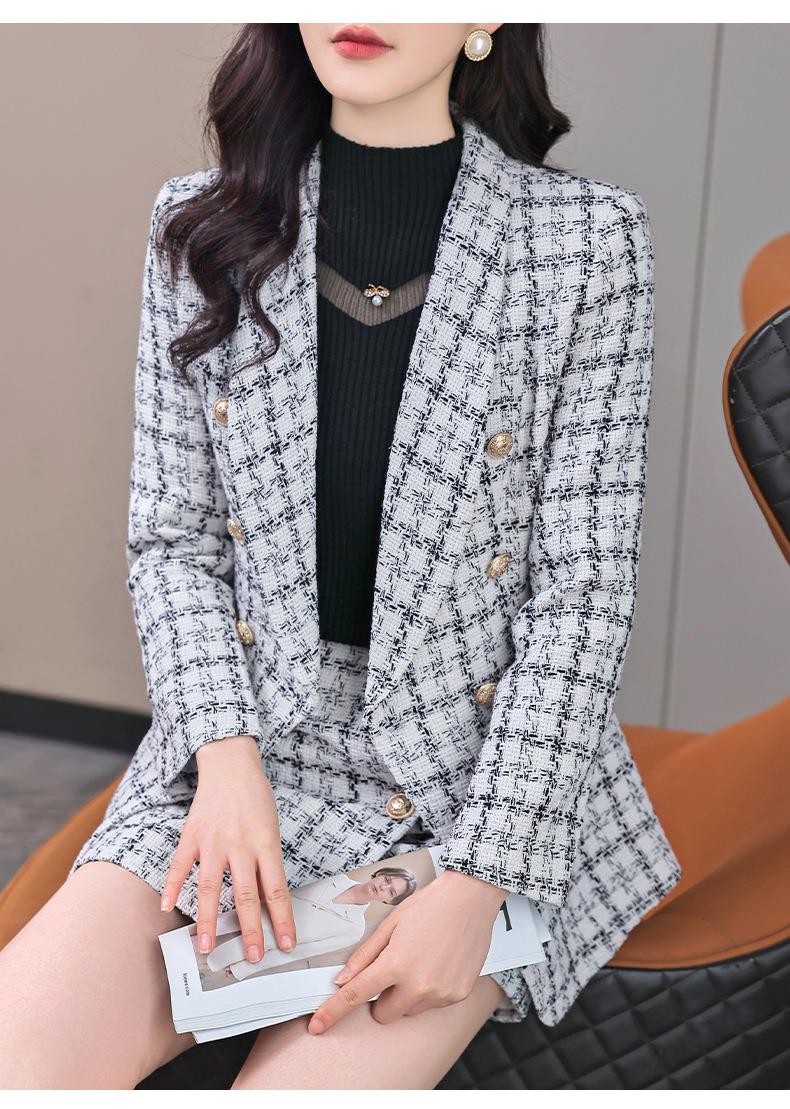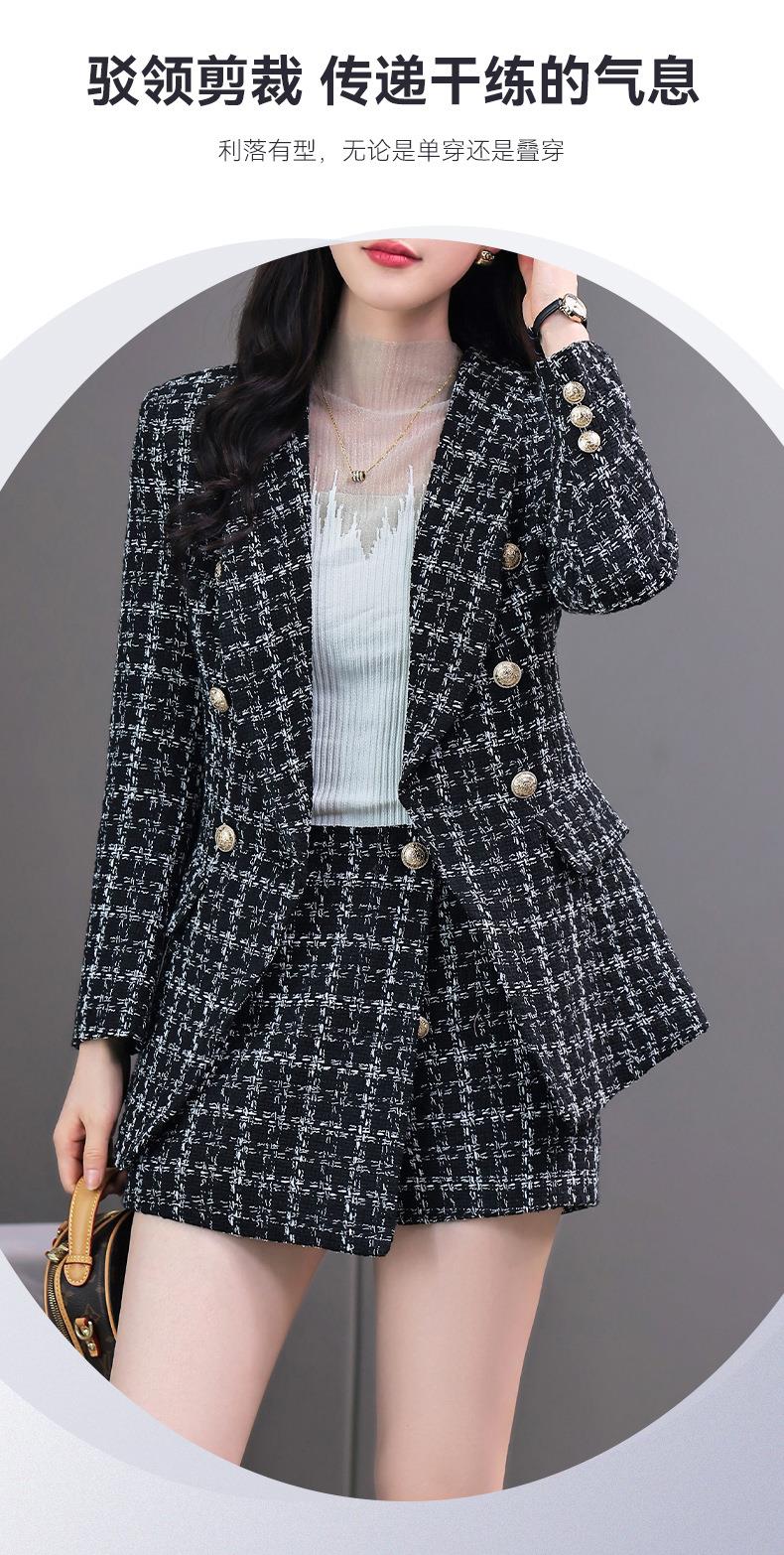 格纹小西服套装女2023秋新款高级感气质名媛小香风两件套通勤外套