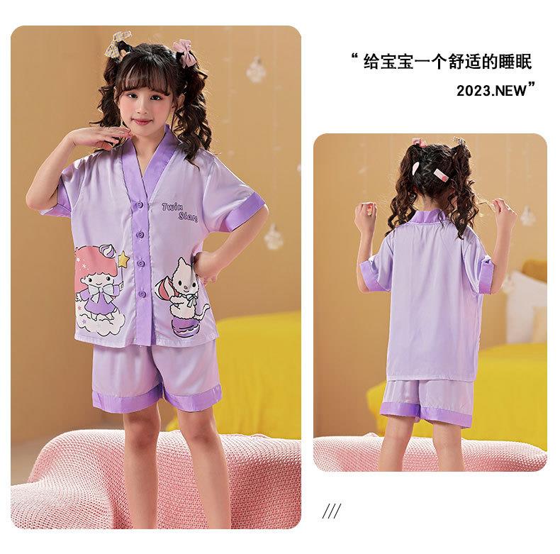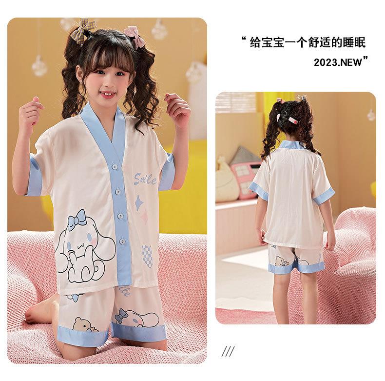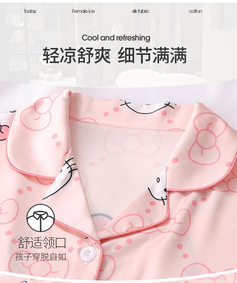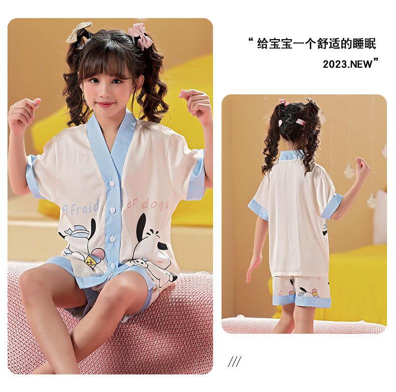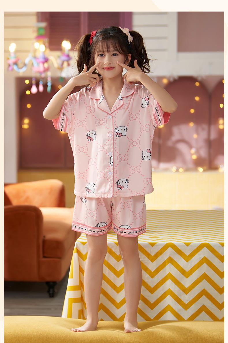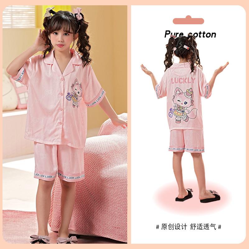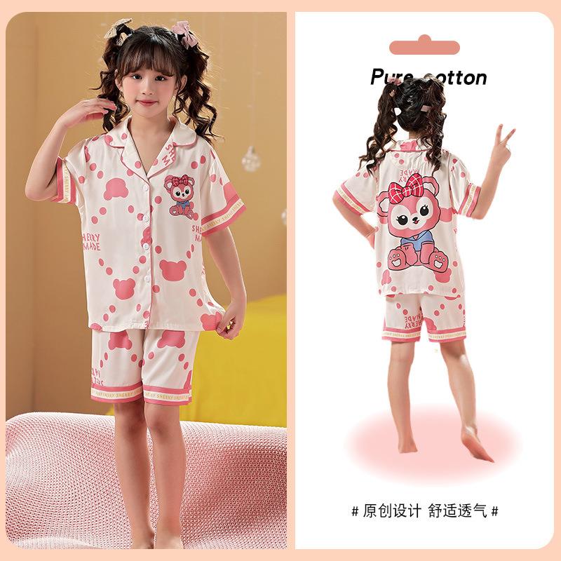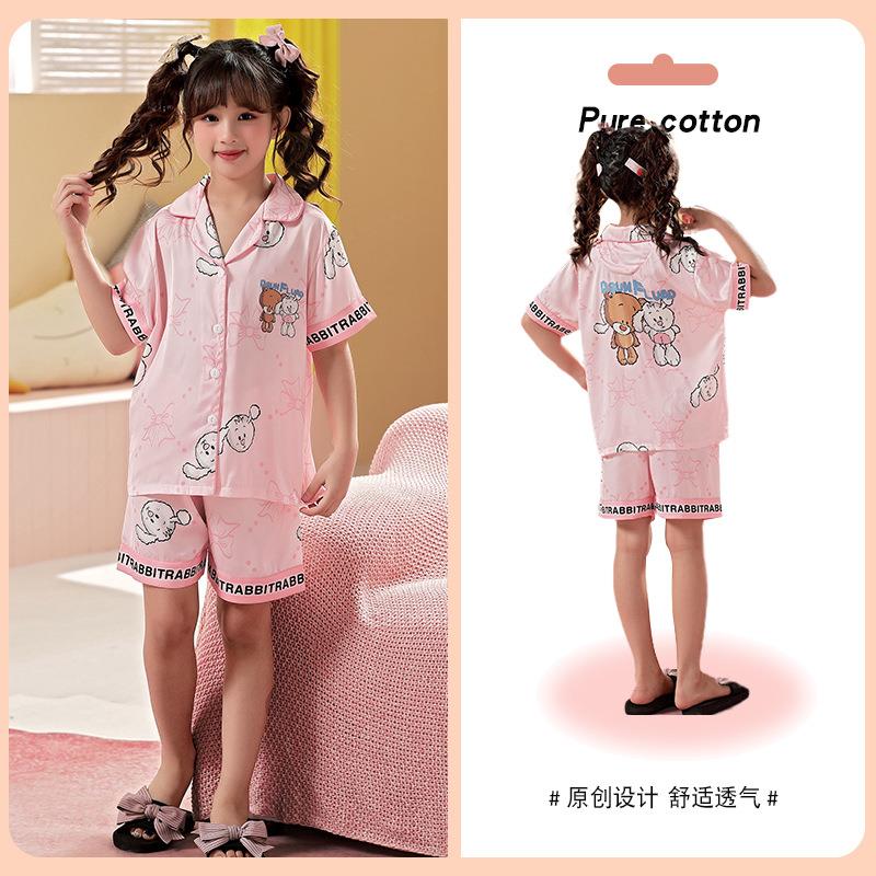 儿童睡衣女童夏季冰丝薄款短袖三件套装长裤小女孩大童洋气家居服
