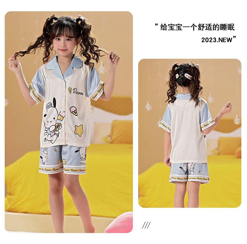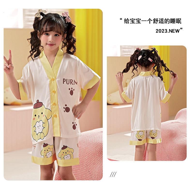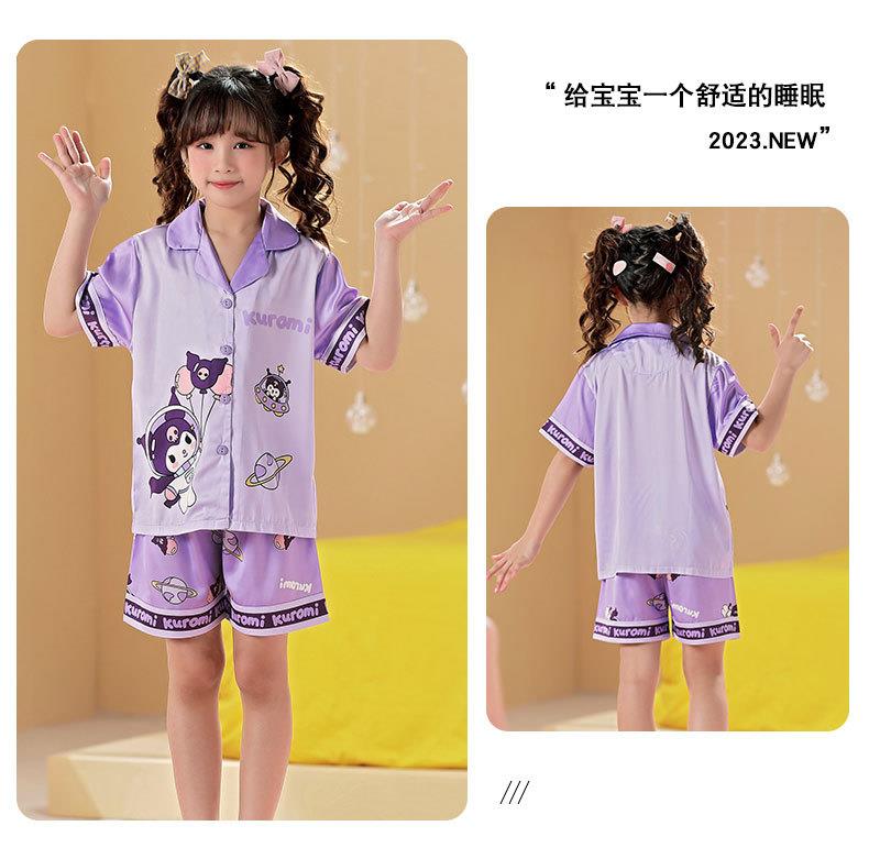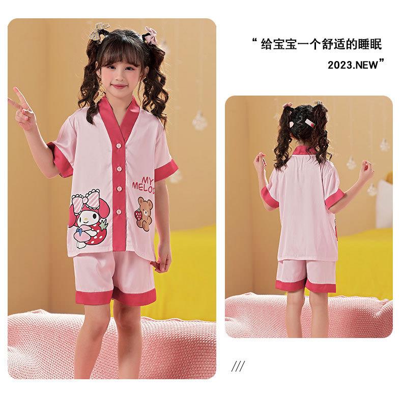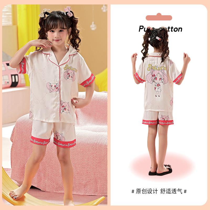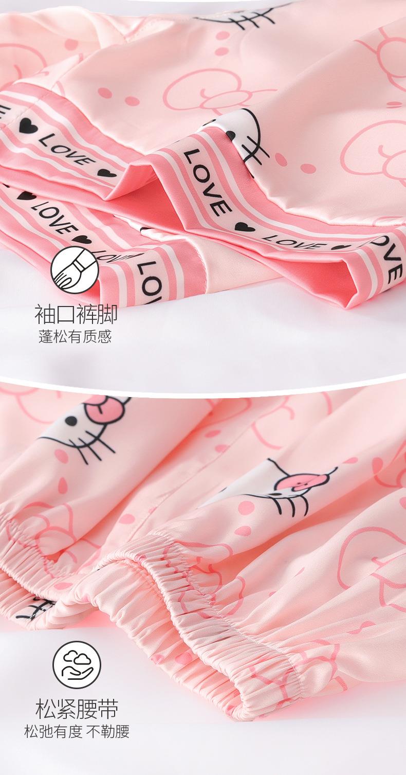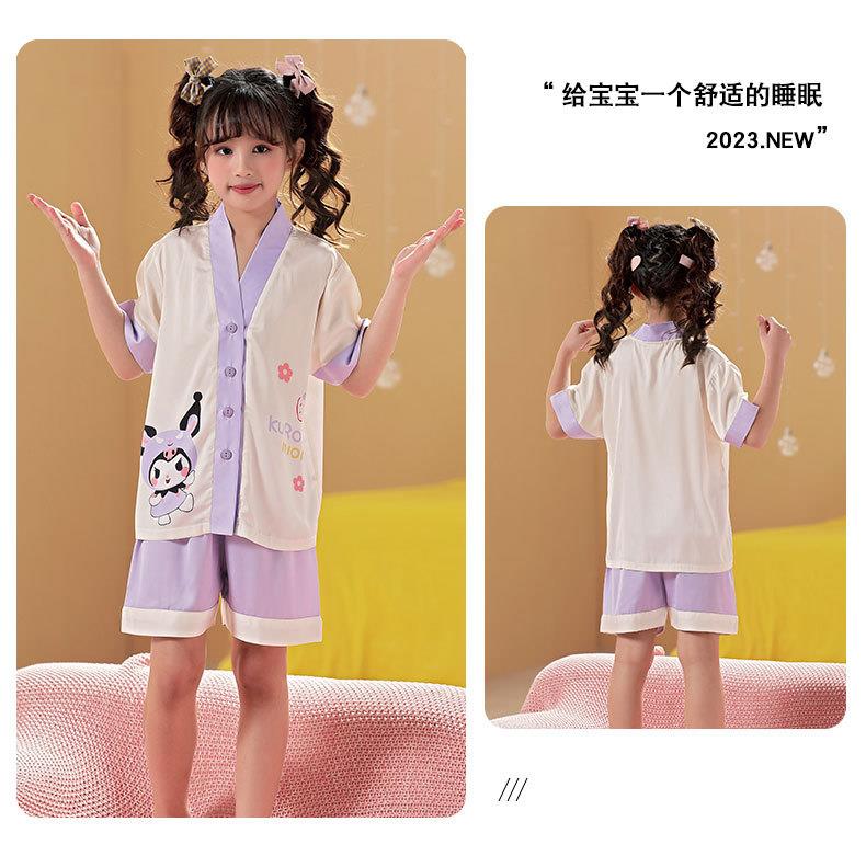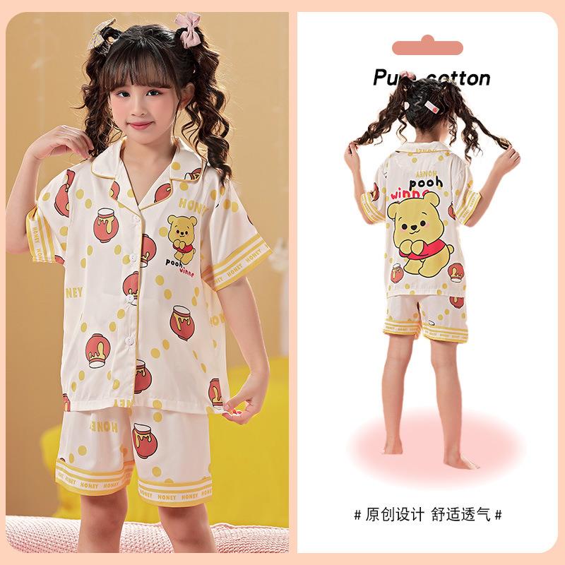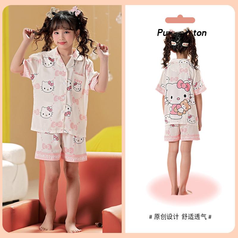 儿童睡衣女童夏季冰丝薄款短袖三件套装长裤小女孩大童洋气家居服