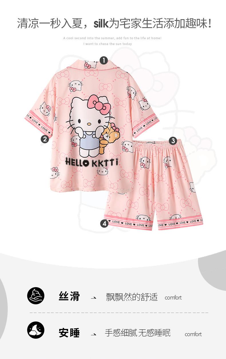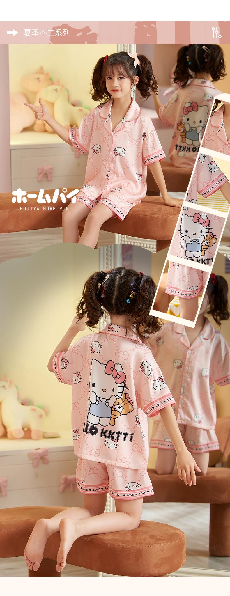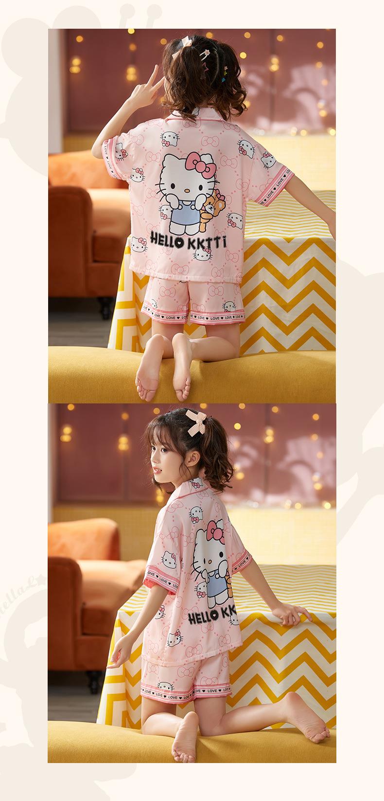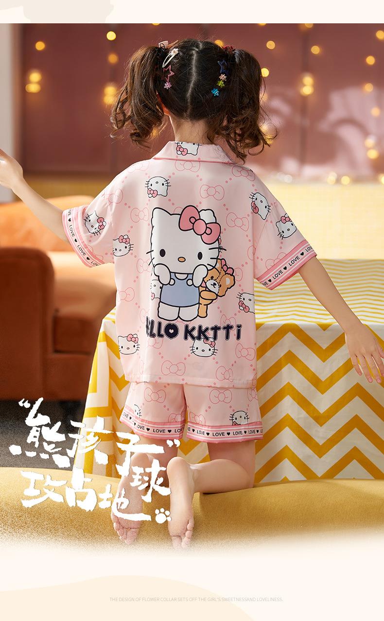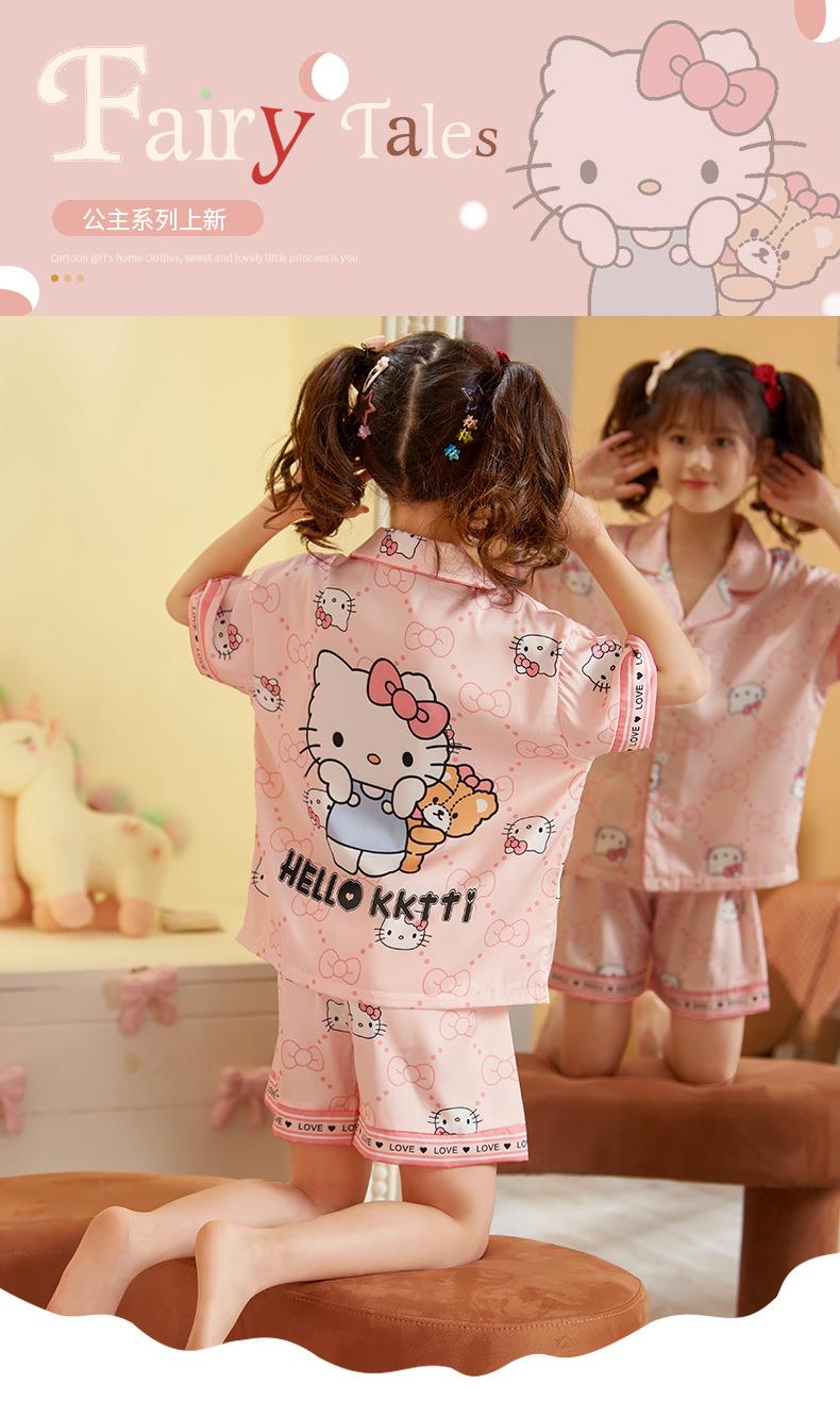 儿童睡衣女童夏季冰丝薄款短袖三件套装长裤小女孩大童洋气家居服