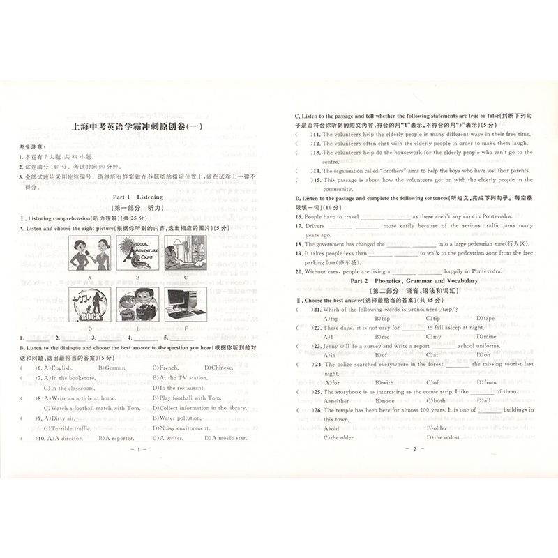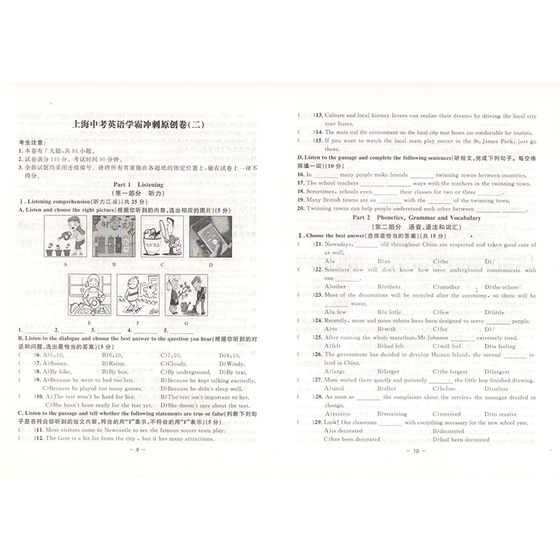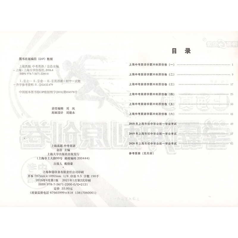 钟书金牌 2021新版 上海真题学霸冲刺原创卷 中考英语 2018-2020上海初中学业考试卷 上海大学出版社