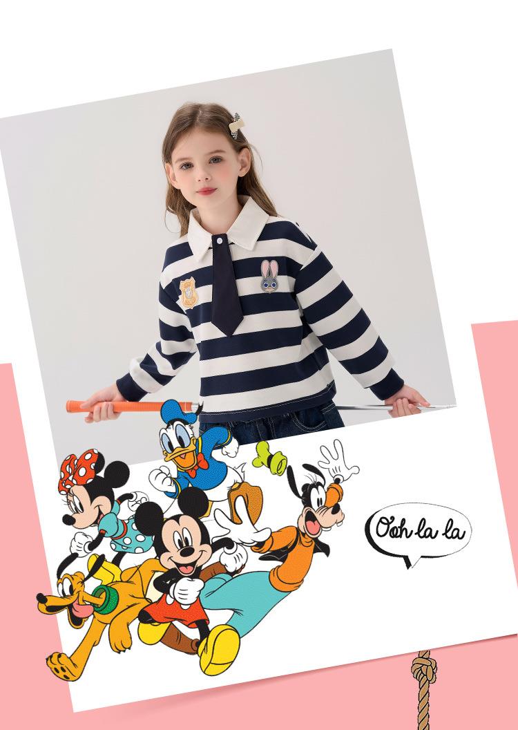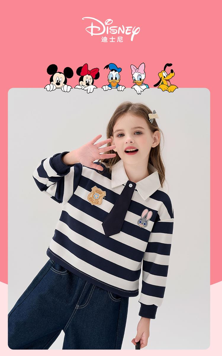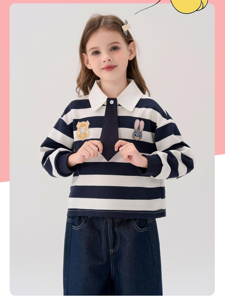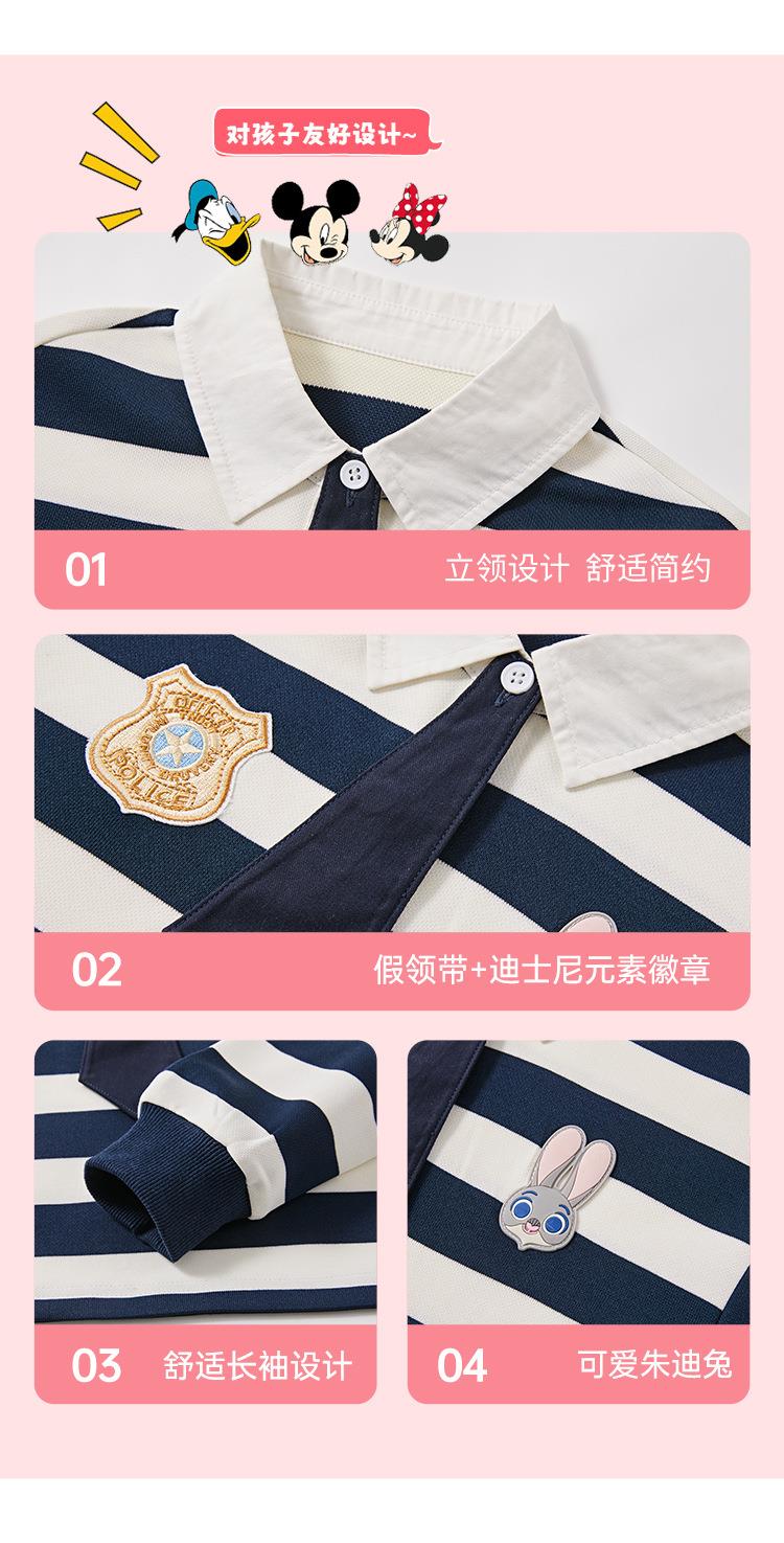 迪士尼朱迪女童polo衫2026春装新品兔子警官儿童衣服条纹长袖女孩