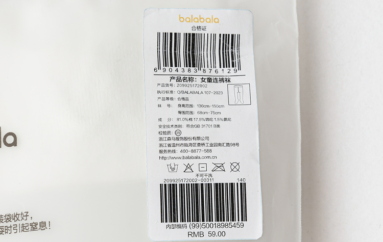 巴拉巴拉儿童连裤袜女孩打底袜学生大童女童舞蹈袜小童宝宝单条装