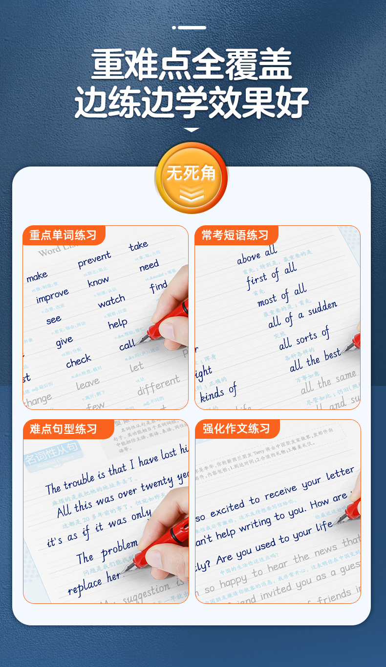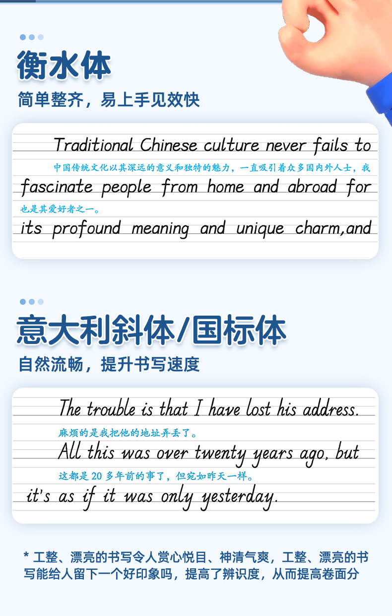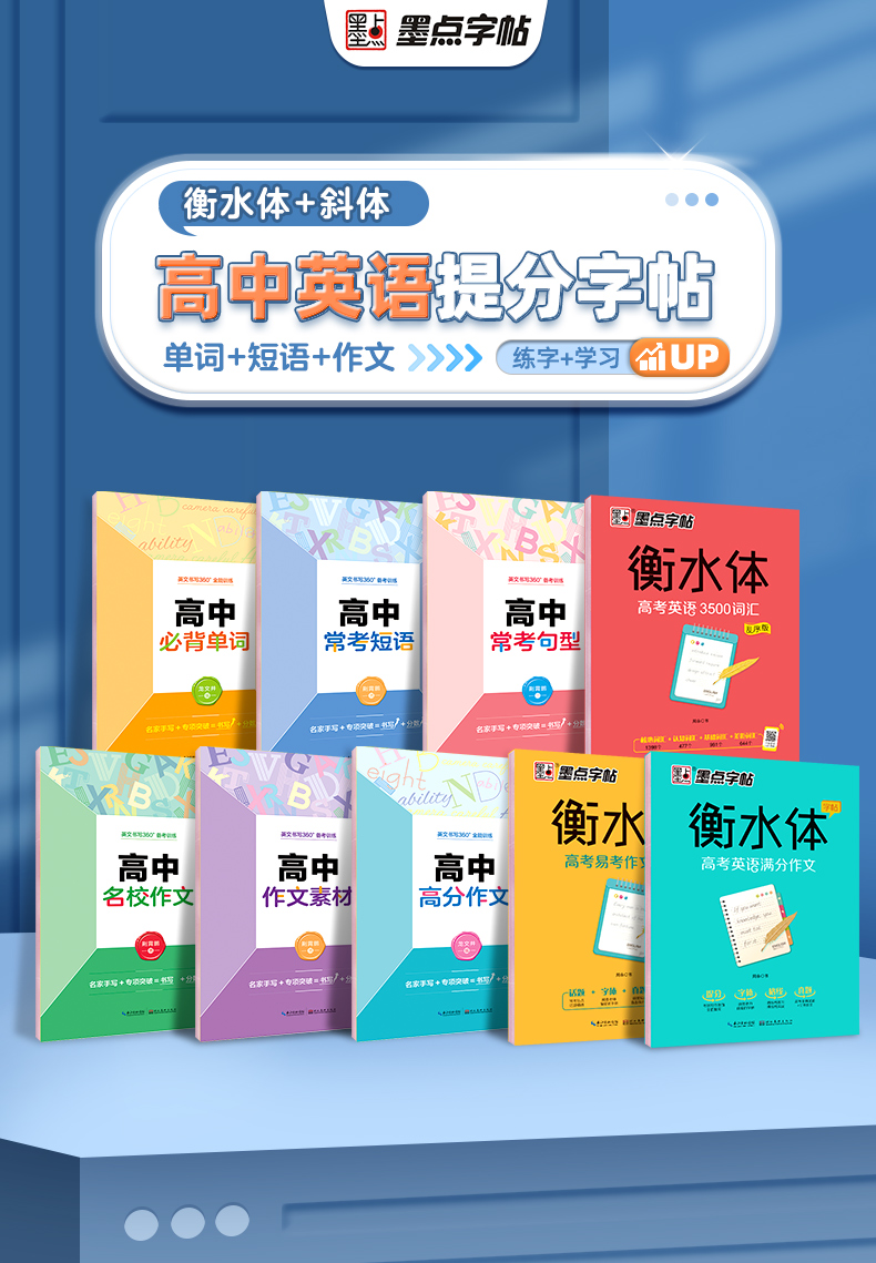 墨点【高中生衡水体英语字帖】英语满分作文意大利斜体国标体高考硬笔书法临摹练字帖练字本高一高二下册上册同步语文衡中体英文练字帖