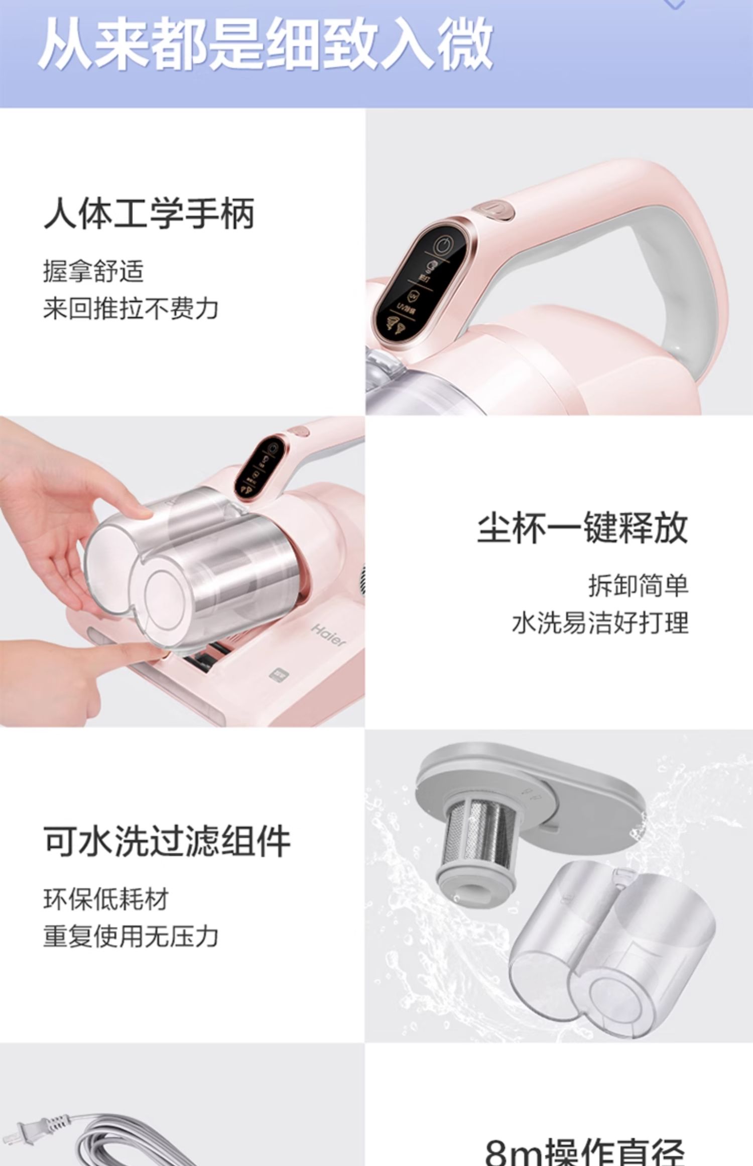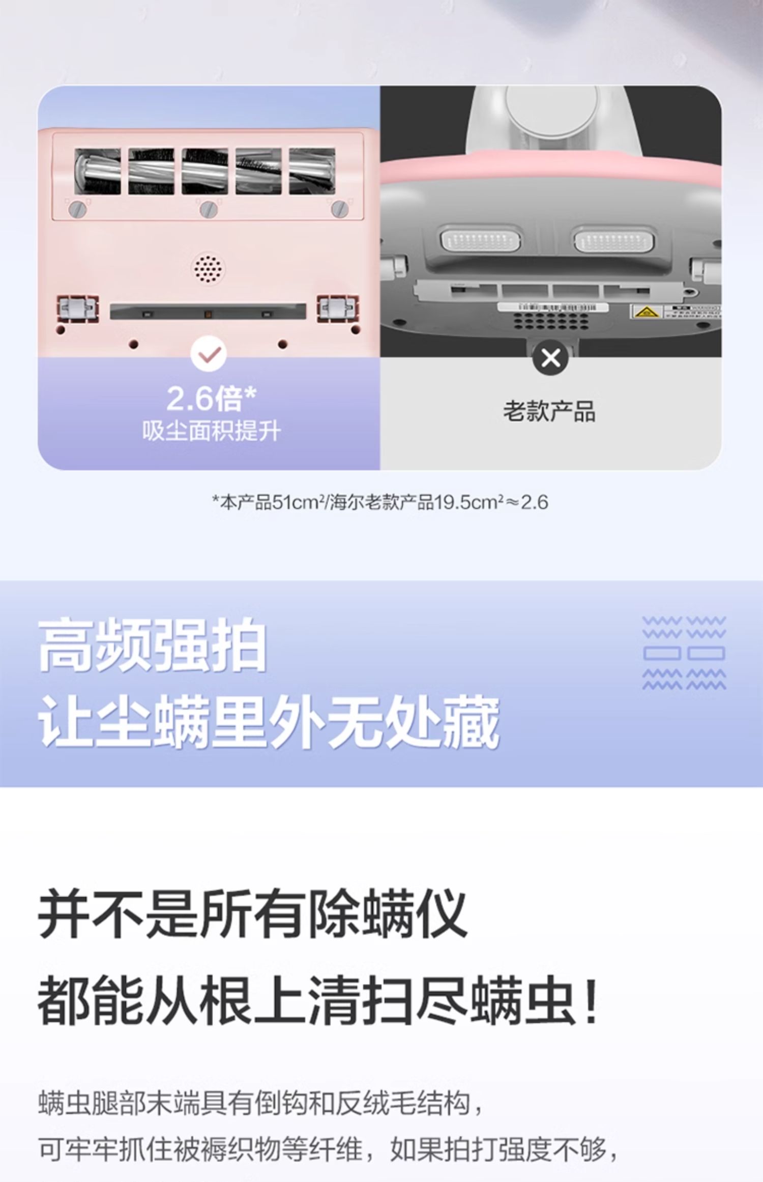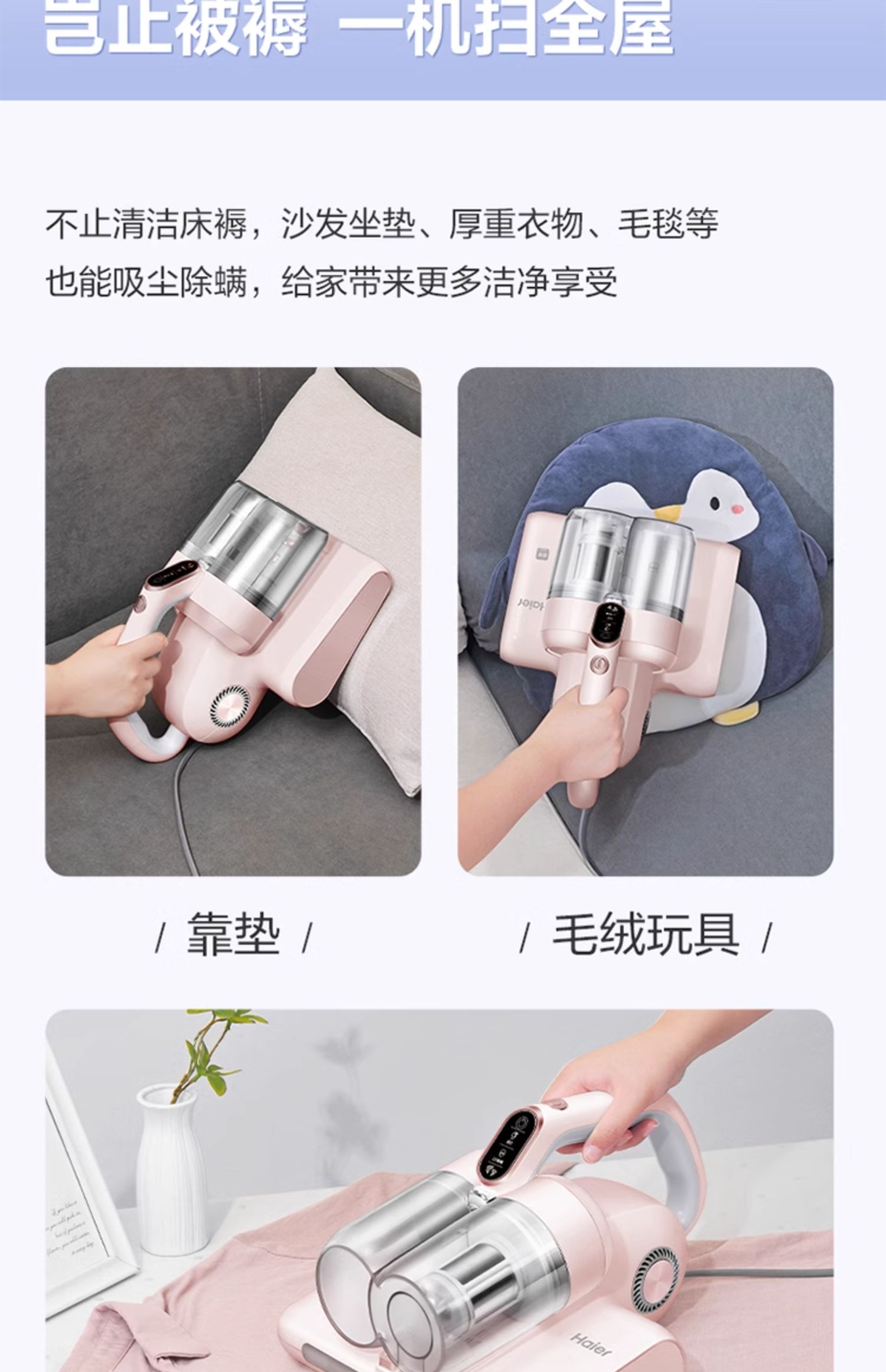 海尔大滚刷除螨仪双杯床上家用紫外线杀菌机除螨神器除螨虫HZ-D8F