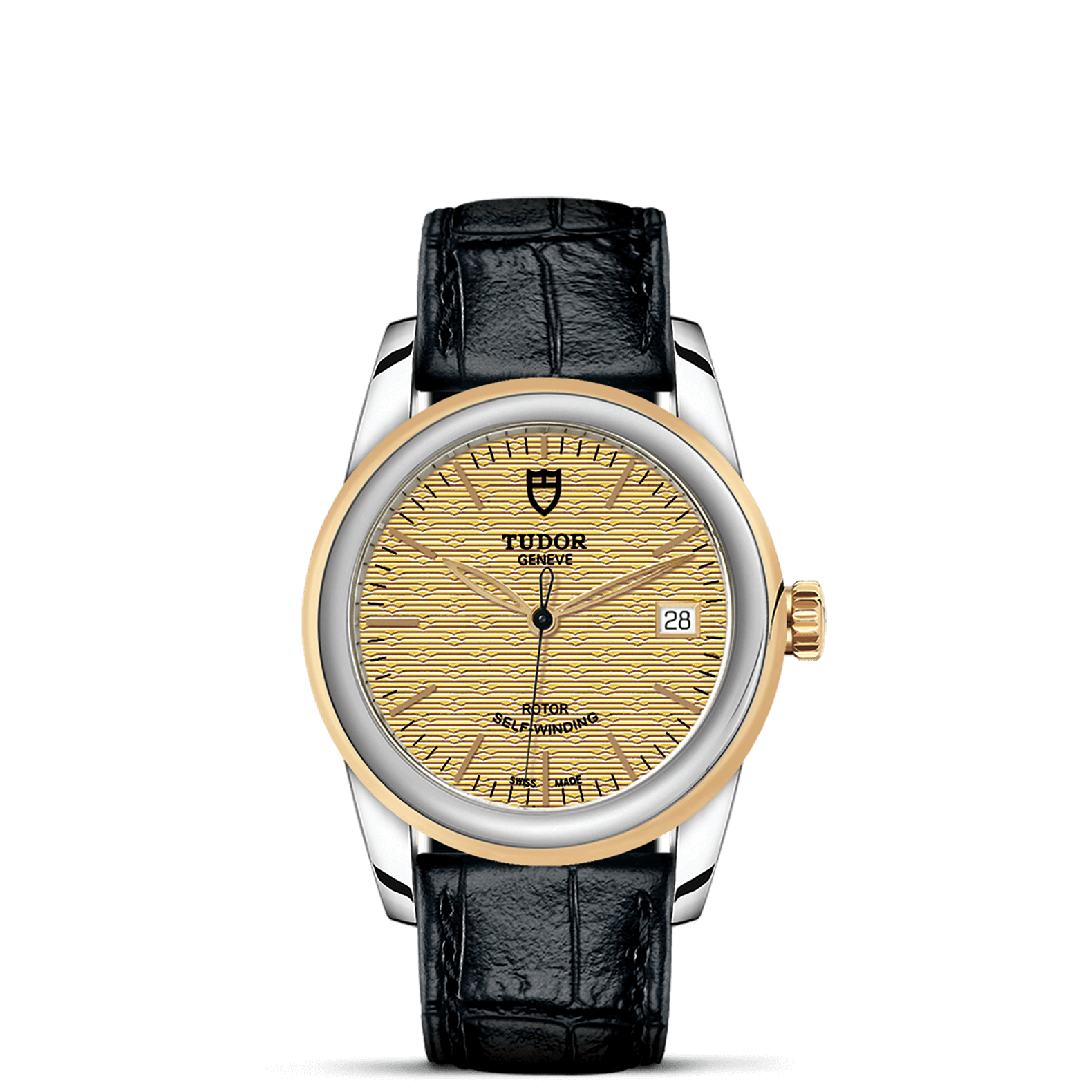 旋入式上链錶冠,饰以帝舵表标志;精钢覆有0.1毫米18K黄金薄层